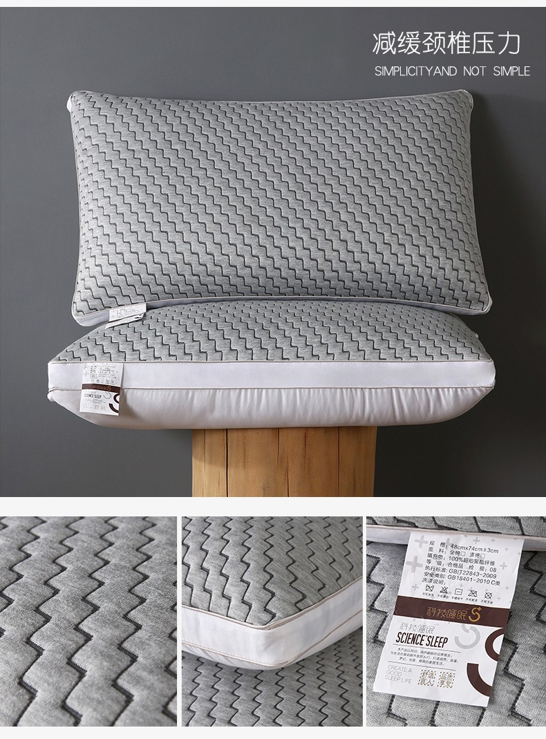 高端轻奢 全棉提花原棉酒店羽丝绒枕头仪征棉简约日式单人枕芯,全棉提花日式软枕