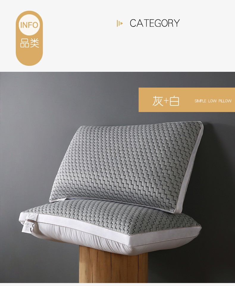 2022新品全棉水洗棉酒店羽丝绒护颈矮枕芯定型单人低枕头,全棉定型低枕-儒雅灰条,全棉定型低枕-摩卡咖色