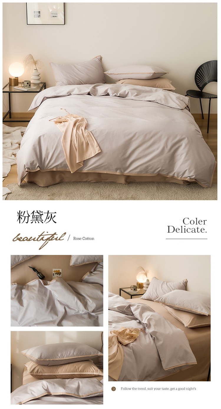 当前位置: 91家纺网 > 商品网购 > 床品套件 > 四件套 > 长绒棉四件套 > 2022早春窄边工艺款四件套 粉黛灰