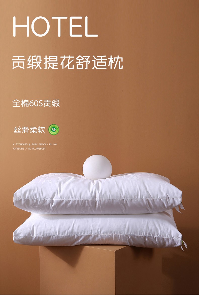 轻奢全棉60S贡缎星级酒店仪征棉羽丝绒枕头成人舒适单人枕芯,全棉60S贡缎酒店枕-低枕(1100克),全棉60S贡缎酒店枕-中枕(1200克),全棉60S贡缎酒店枕-高枕(1300克)