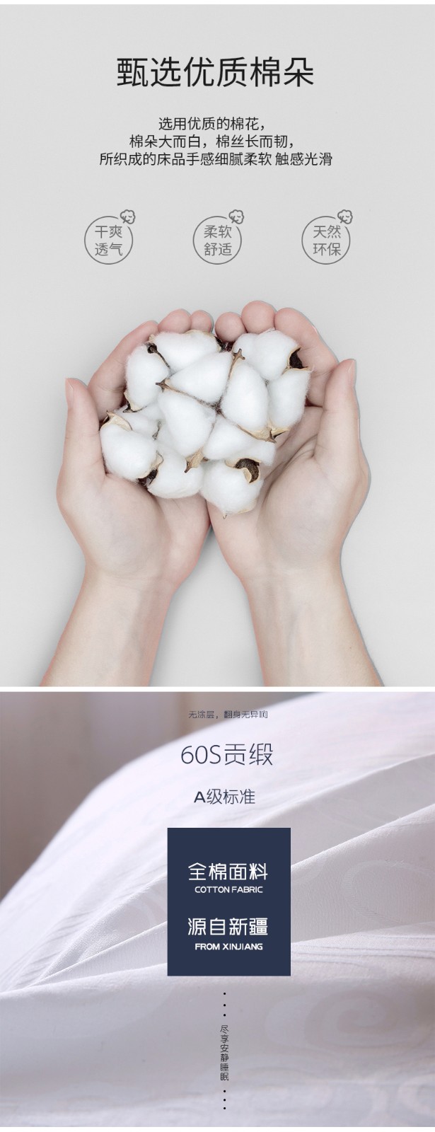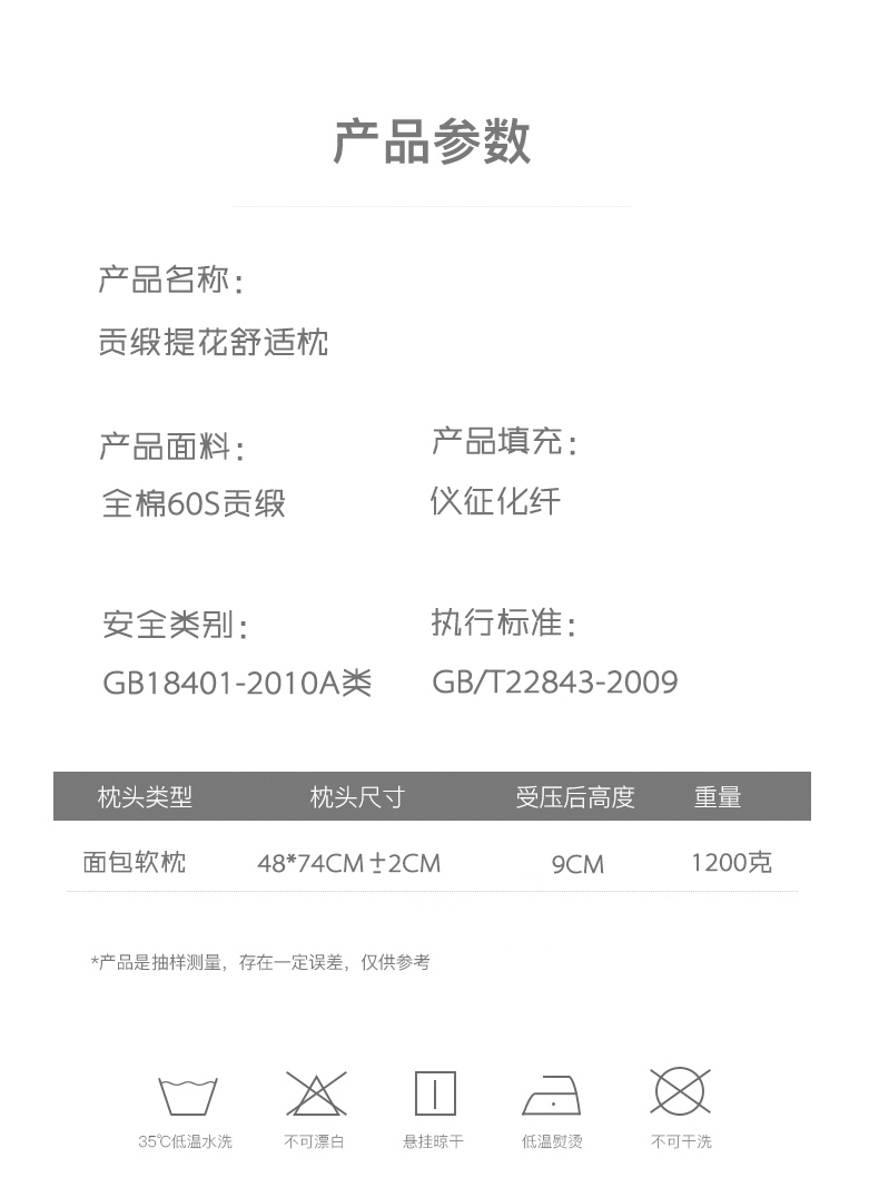 商品名称:2022新款全棉60S贡缎提花酒店仪征棉枕头护颈单人面包枕芯