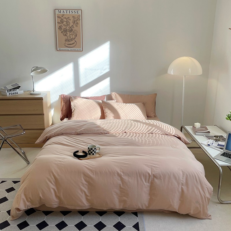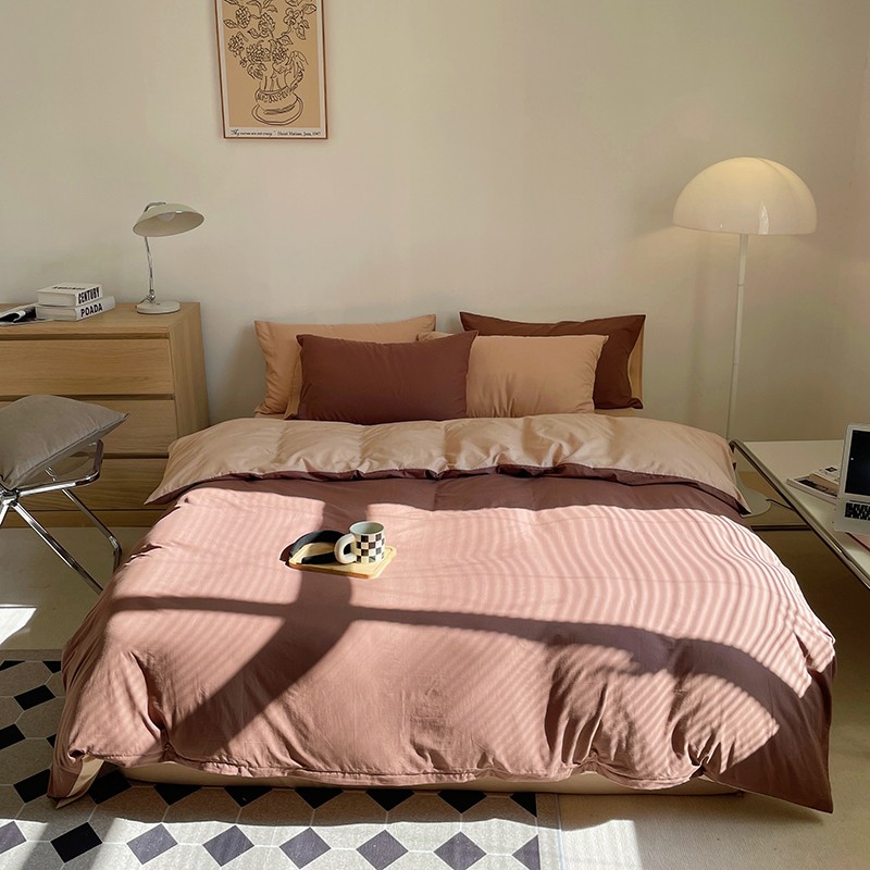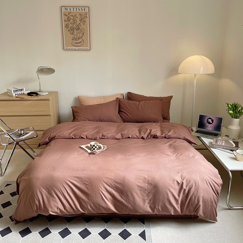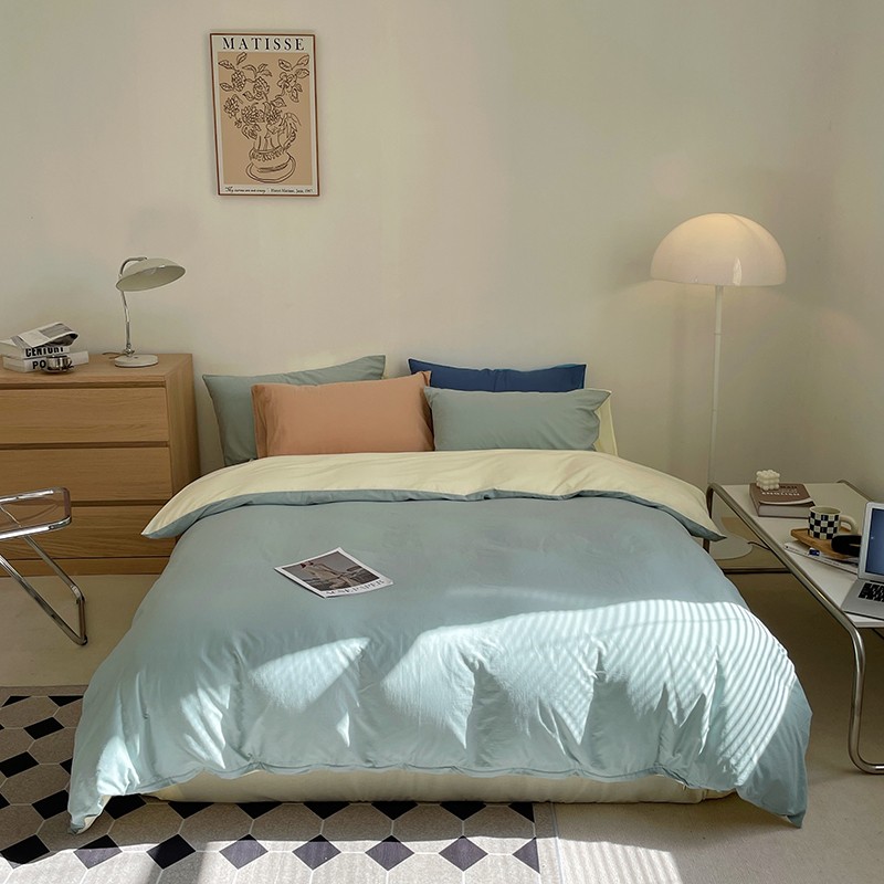 (总)窝米 2022春季新品素色双拼水洗棉系列四件套