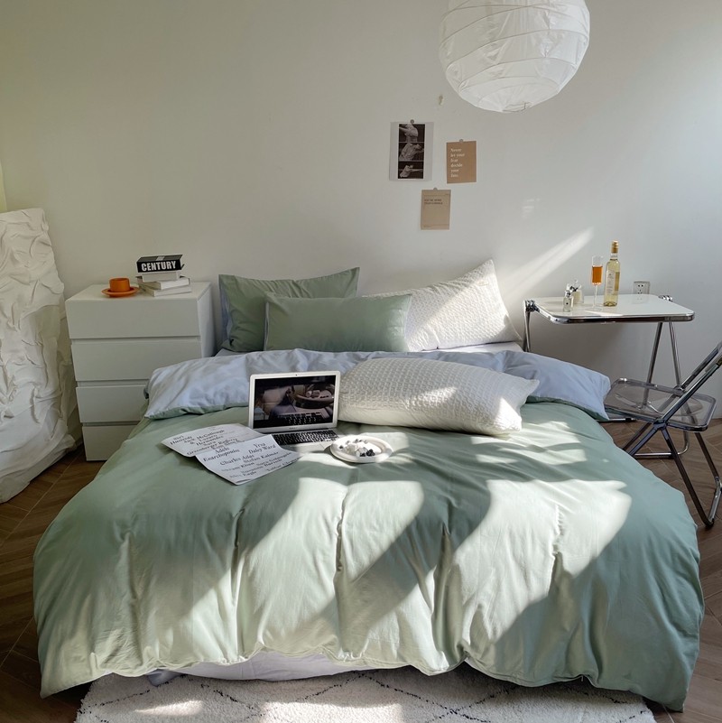 (总)窝米 2022夏季新品素色双拼水洗棉四件套,艾青双拼,冰莓粉双拼,绿云双拼,抹茶绿双拼,少女粉双拼,神仙紫双拼,雾霾蓝双拼,芝士双拼