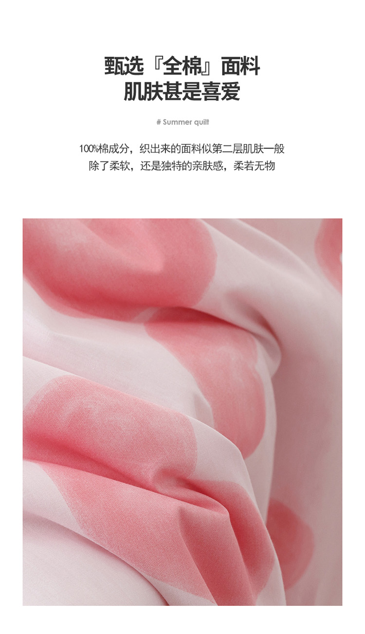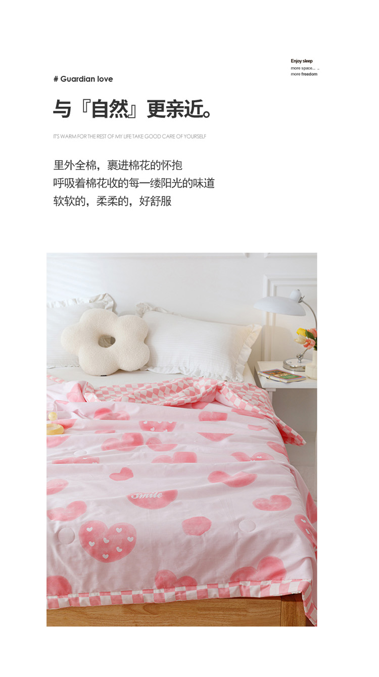 商品名称:兄弟坊 2022新款正宗全棉新疆棉印花夏被 粉色爱心