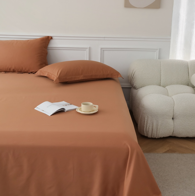 蕊姿超柔水洗超柔水洗新款50s双股新疆长绒棉单床单焦糖橙