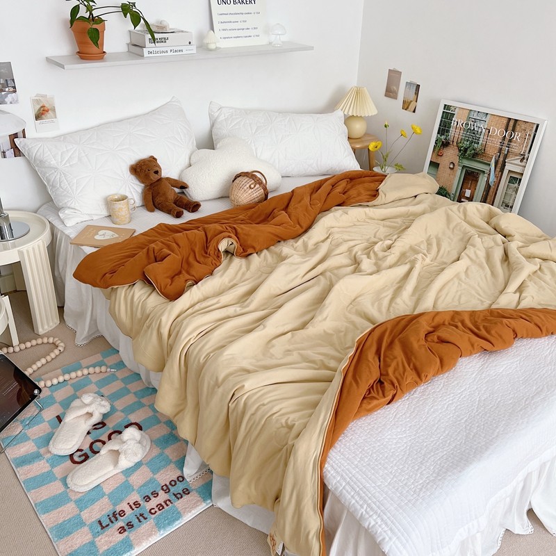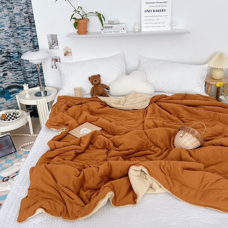星期八 2022新款马卡龙针织棉大豆夏被 深咖浅咖