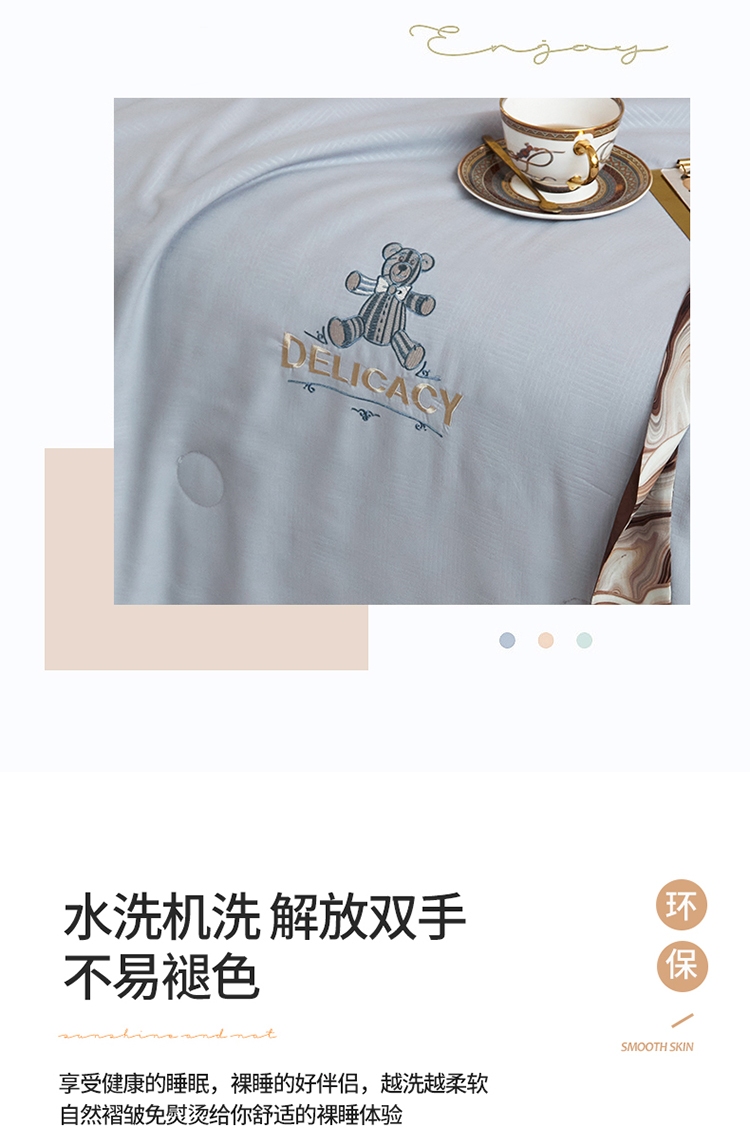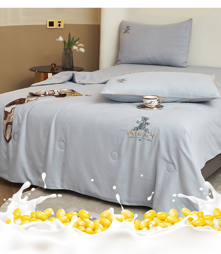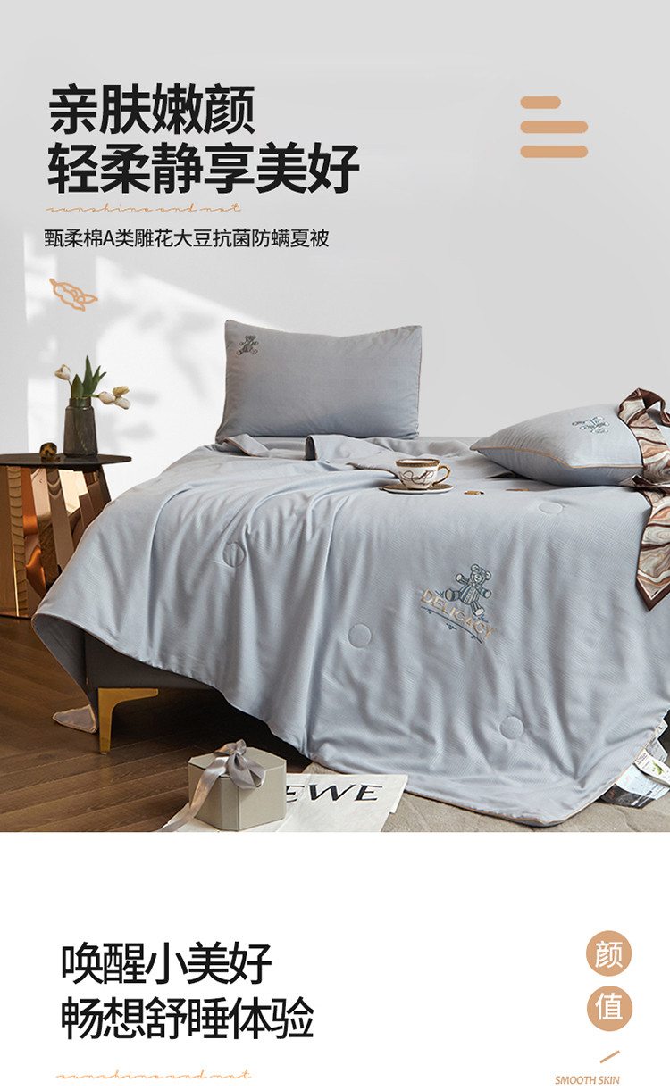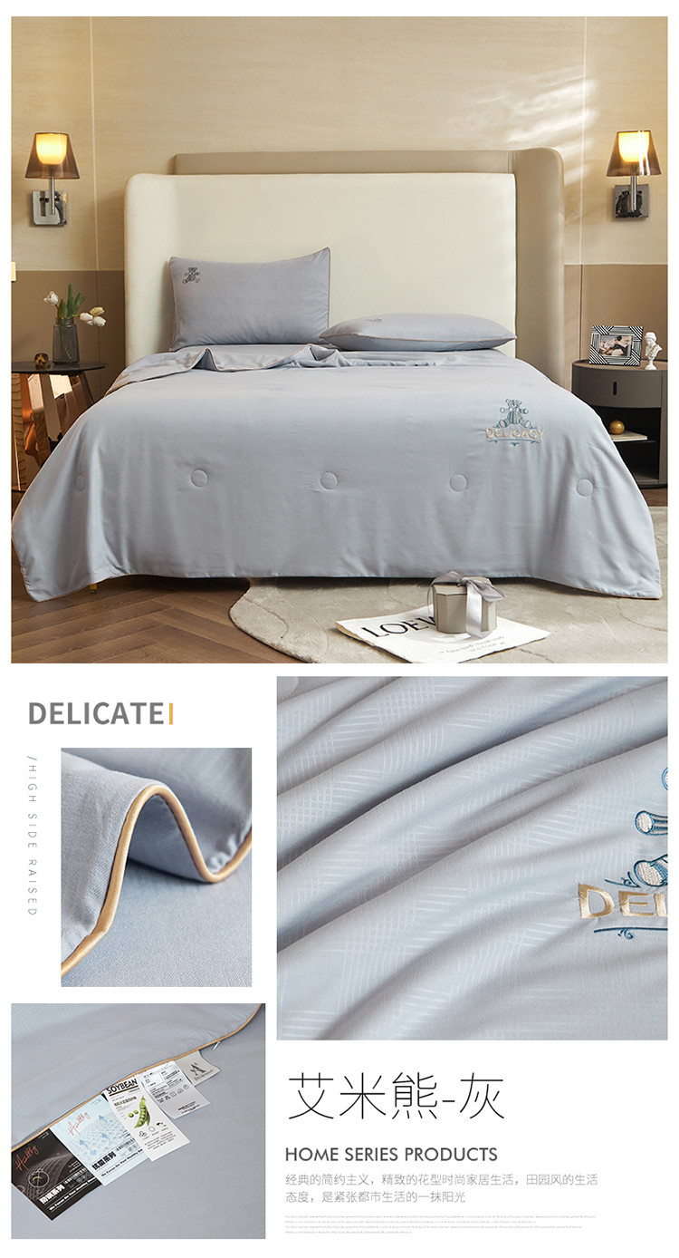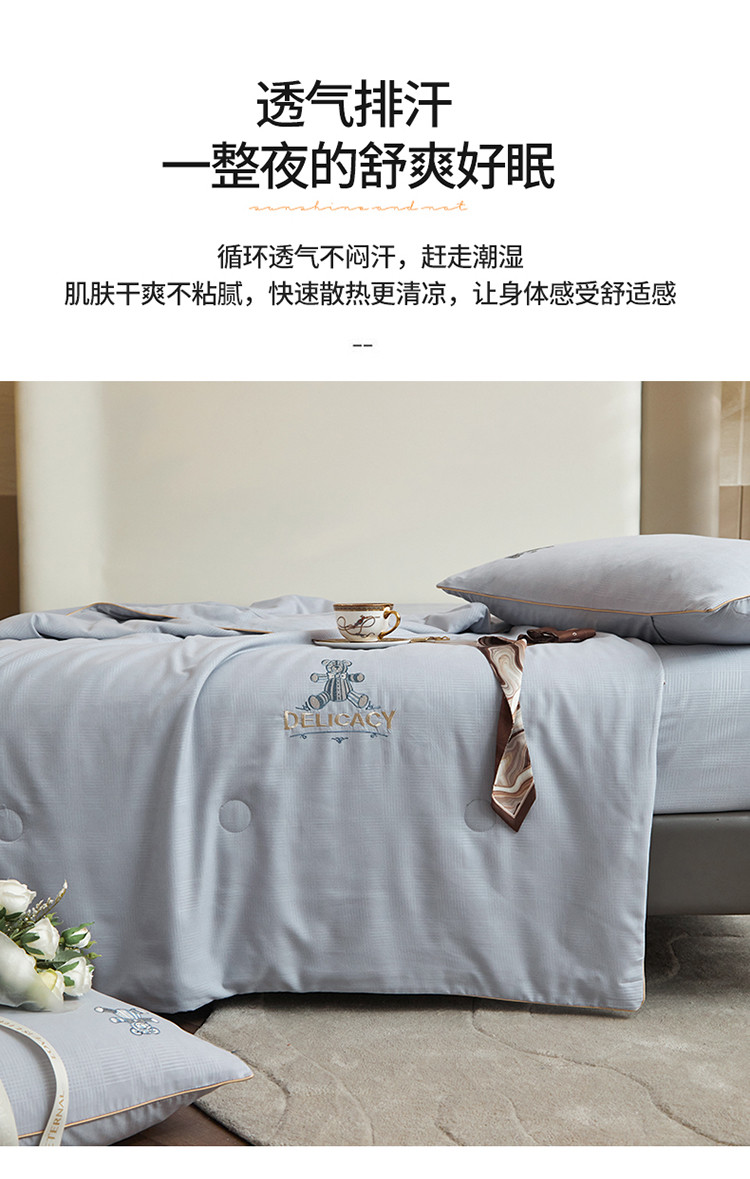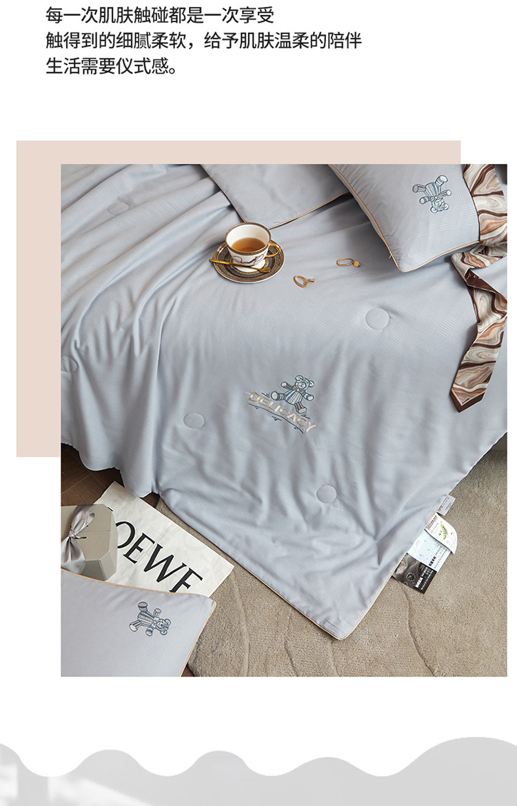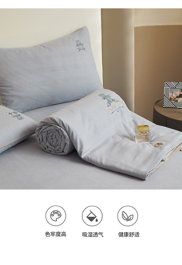 当前位置: 91家纺网 > 商品网购 > 床品套件 > 四件套 > 夏被四件套 > 头等舱 2022新款甄柔棉A类雕花大豆抗菌防螨夏被艾米熊-灰