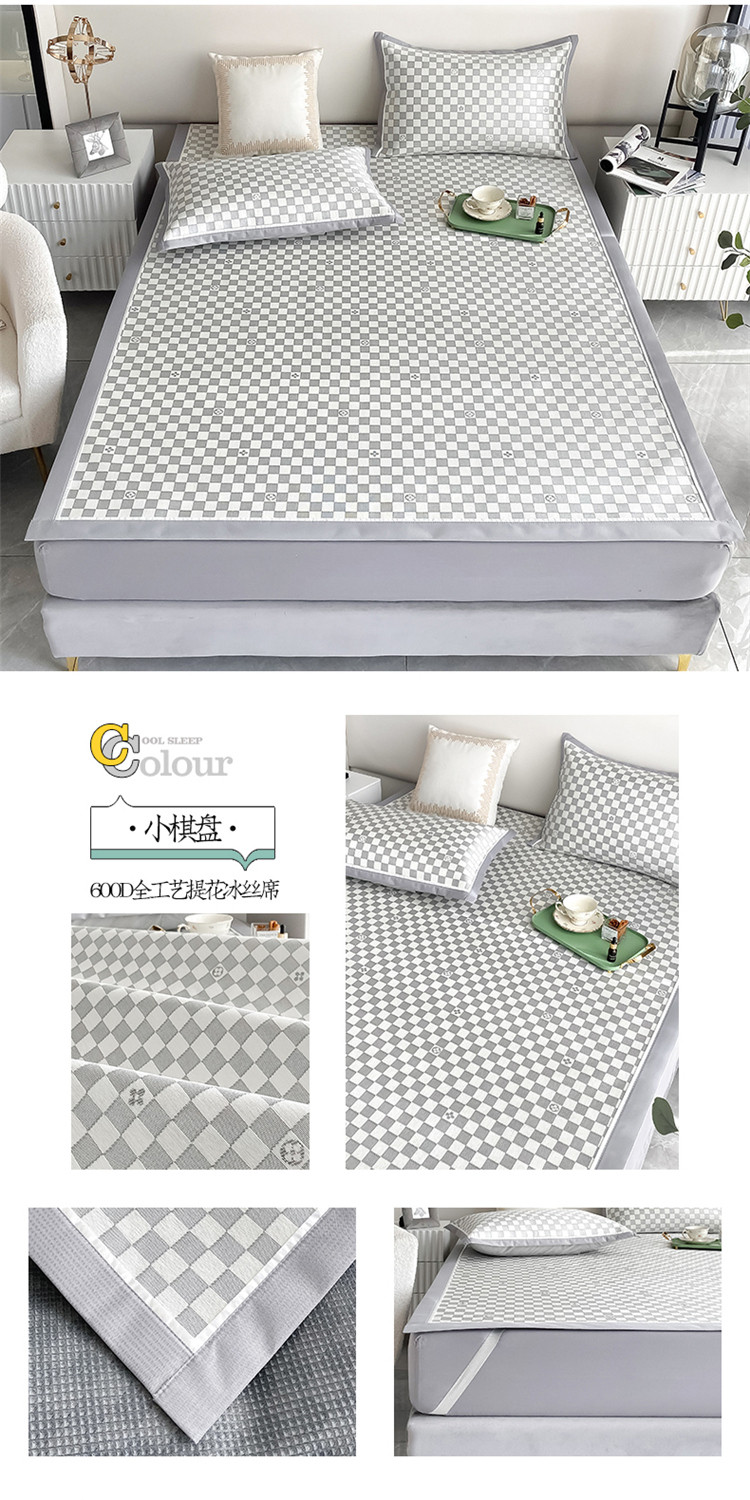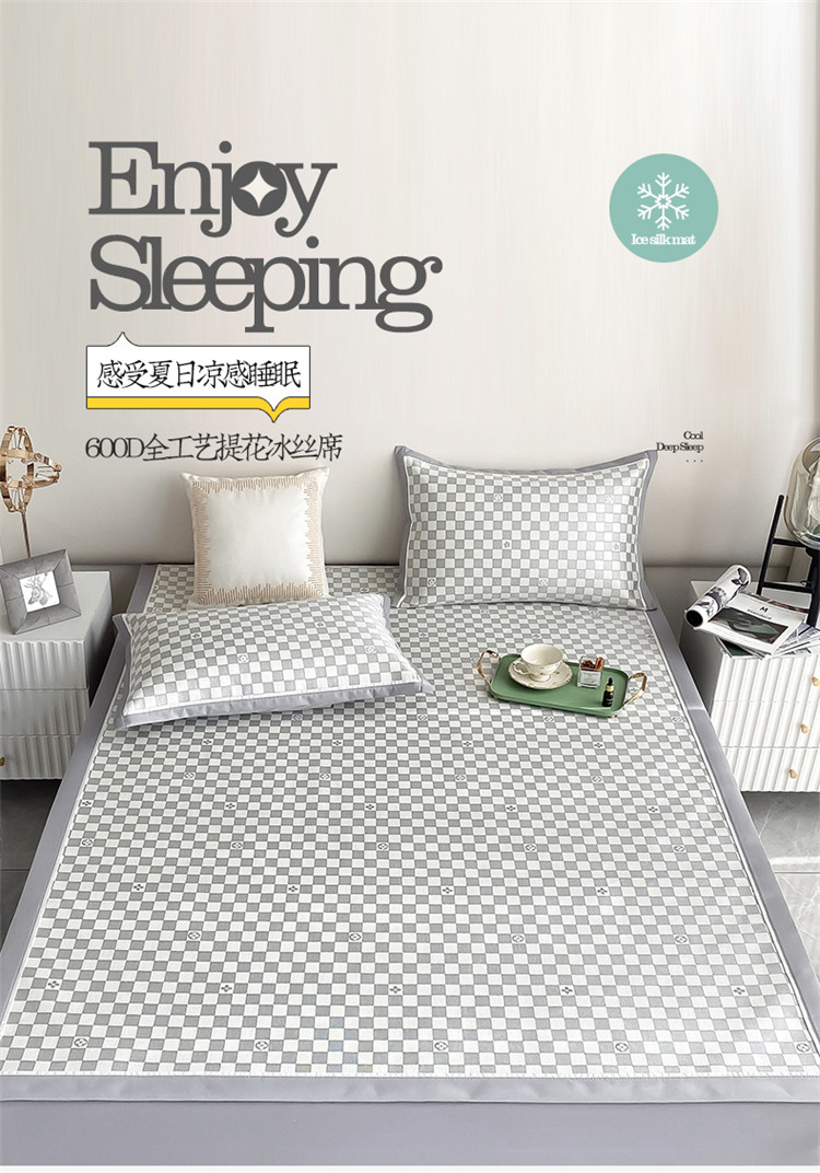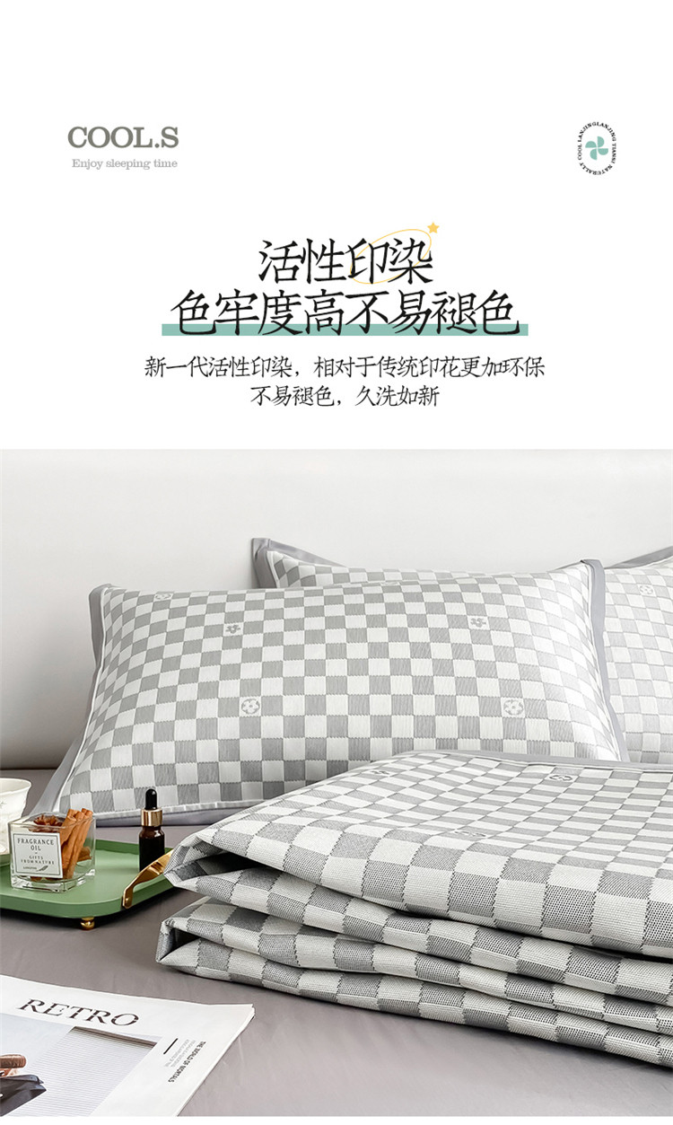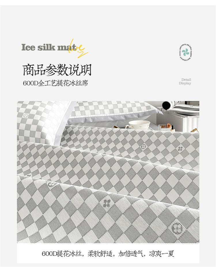 商品名称:懒猫家纺 2022新款600D全工艺提花冰丝席 小棋盘