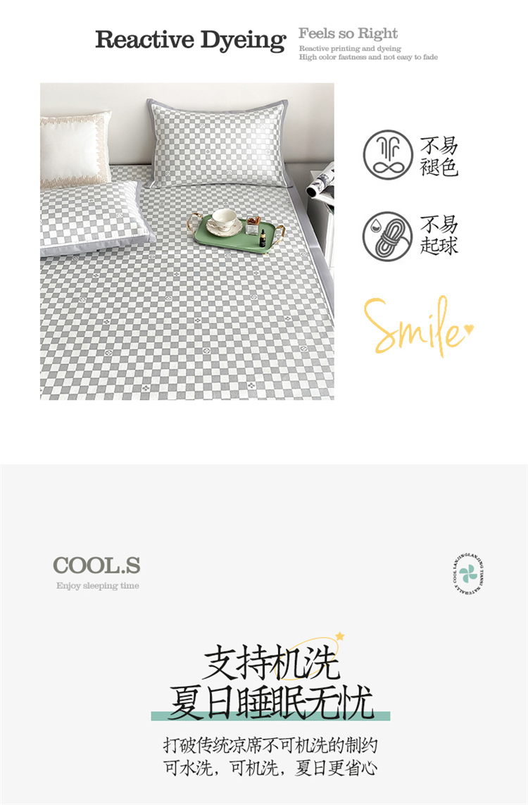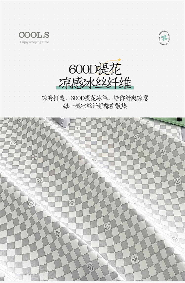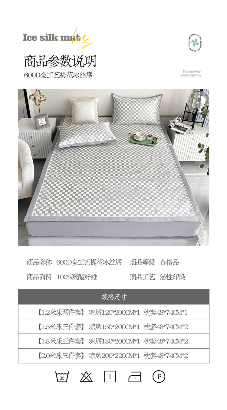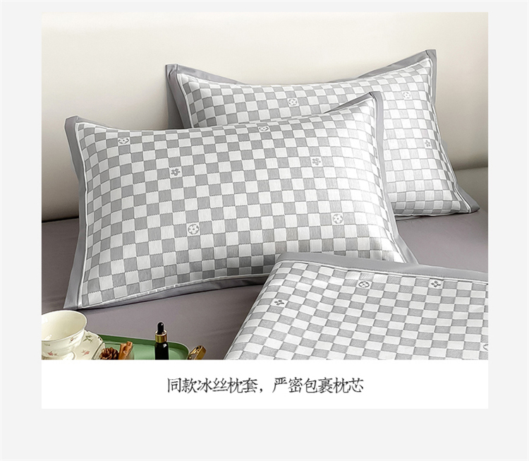 商品名称:懒猫家纺 2022新款600D全工艺提花冰丝席 小棋盘