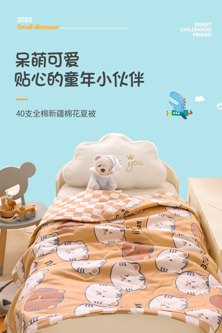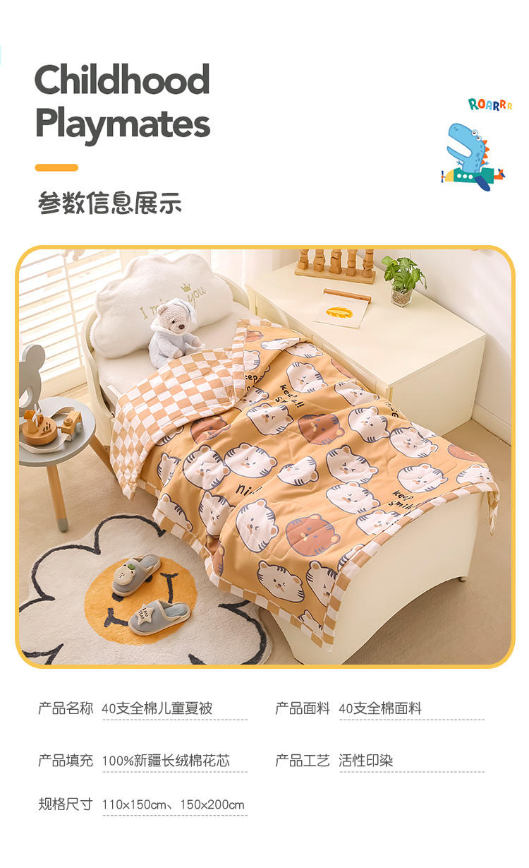商品名称:芭伯妮2025新款40支全棉新疆棉花幼儿园儿童夏被虎头虎脑