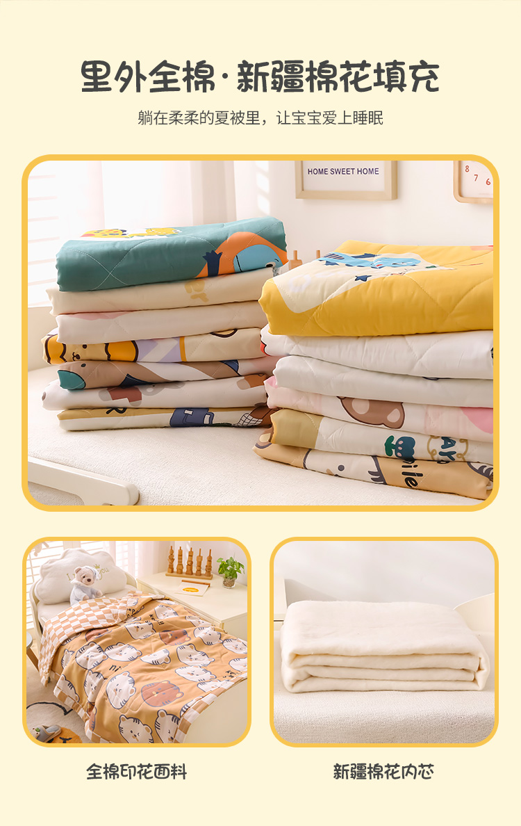 (总)芭伯妮 2025新款40支全棉新疆棉花幼儿园儿童夏被,白桃公主,虎头虎脑,嘉年华,开学季,恐龙家族-黄,恐龙家族-绿,奶油兔,小兔叽,幸福宝贝,宝宝巴士-蓝,宝宝巴士-米,动漫恐龙-米,欢乐萌熊,里德熊,彩虹喵,蜡笔画,汽车乐园