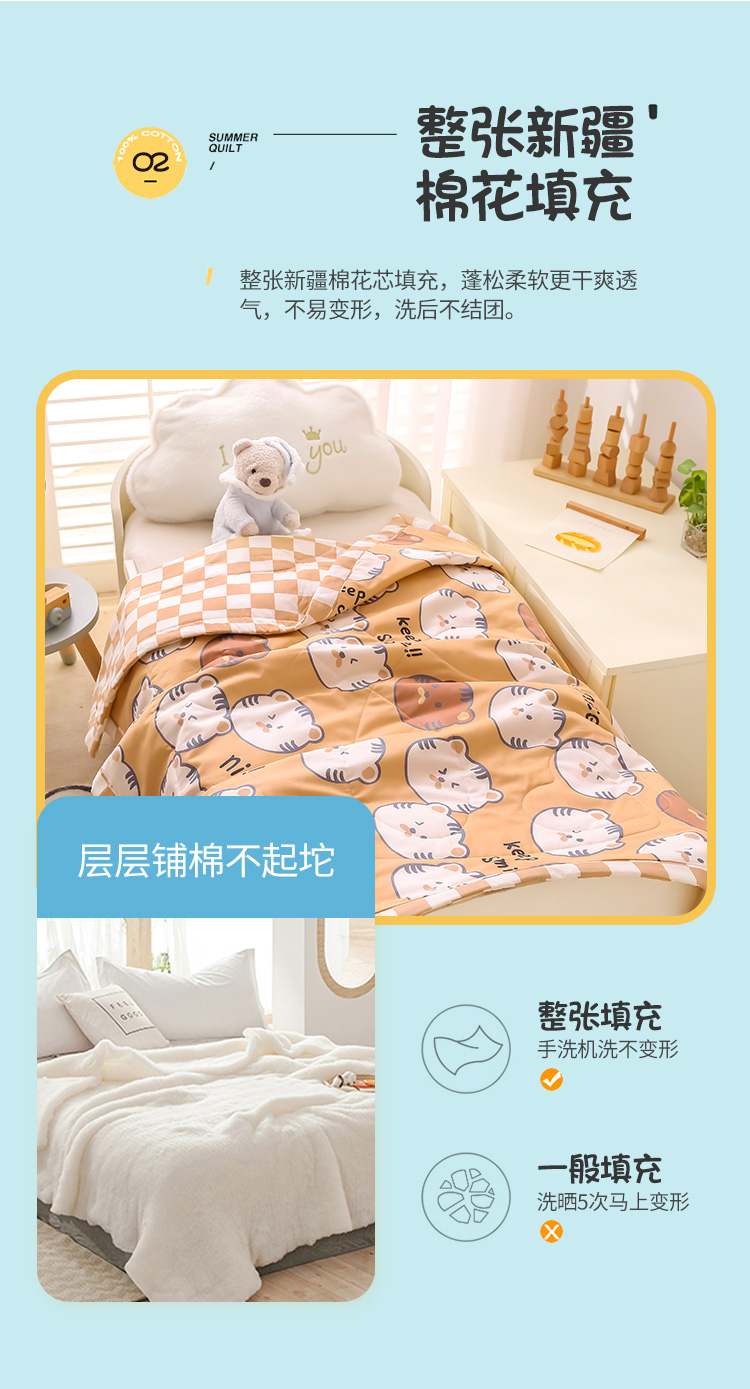 芭伯妮2025新款40支全棉新疆棉花幼儿园儿童夏被虎头虎脑