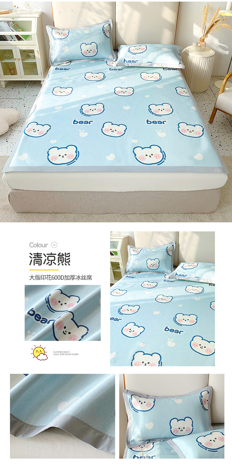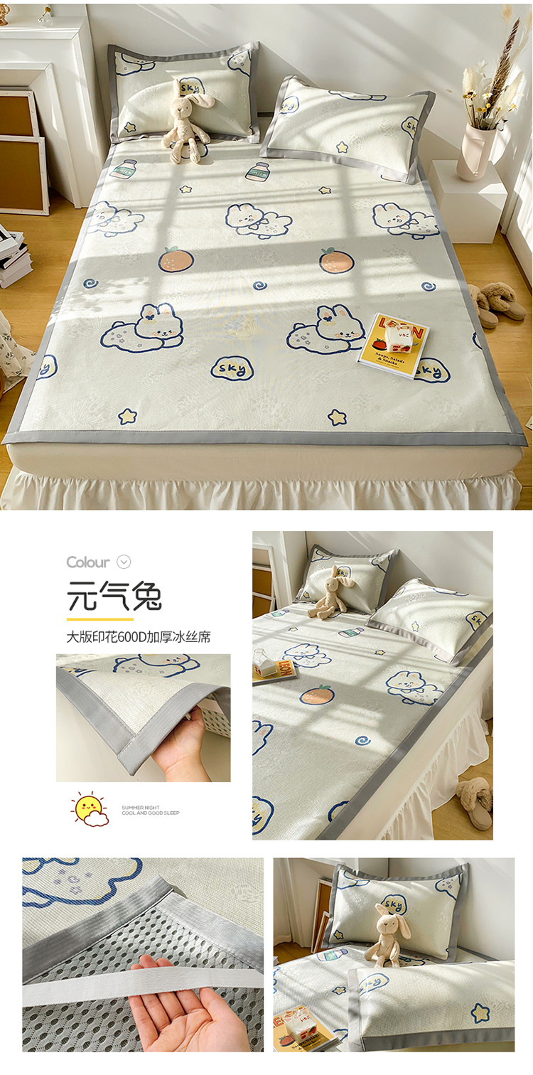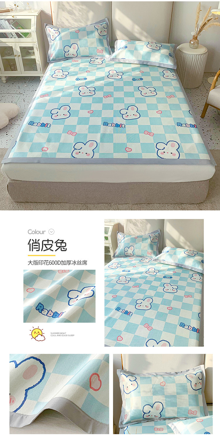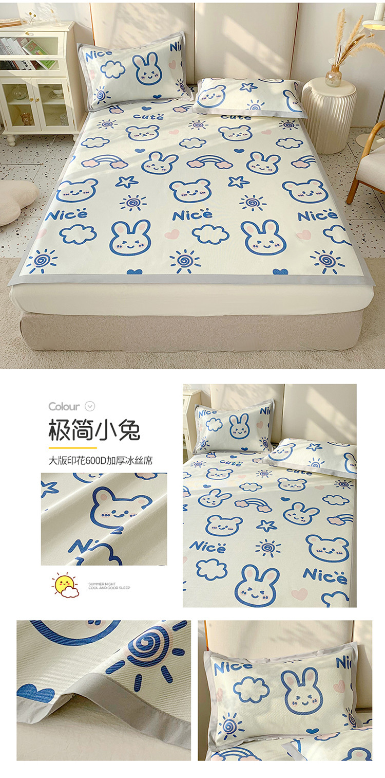(总)懒猫家纺 2022新款学生宿舍冰丝数码印花凉席,尔雅,粉小兔,花韵,萝卜兔,清晨,手绘爱心,探索星球,甜心,小鲸鱼,小熊仔,元气兔