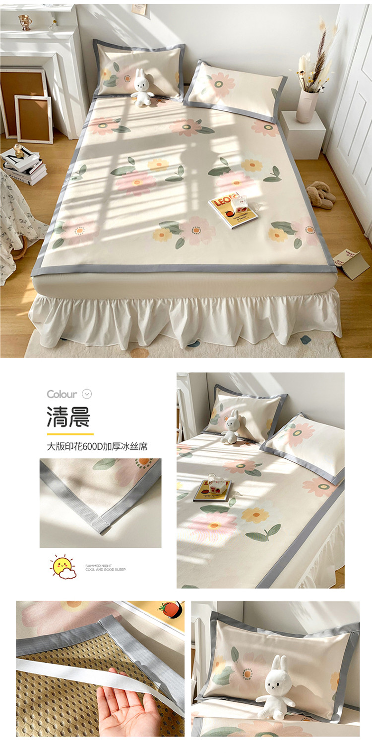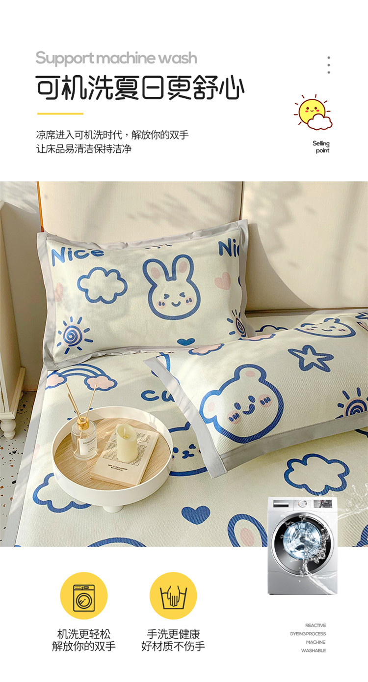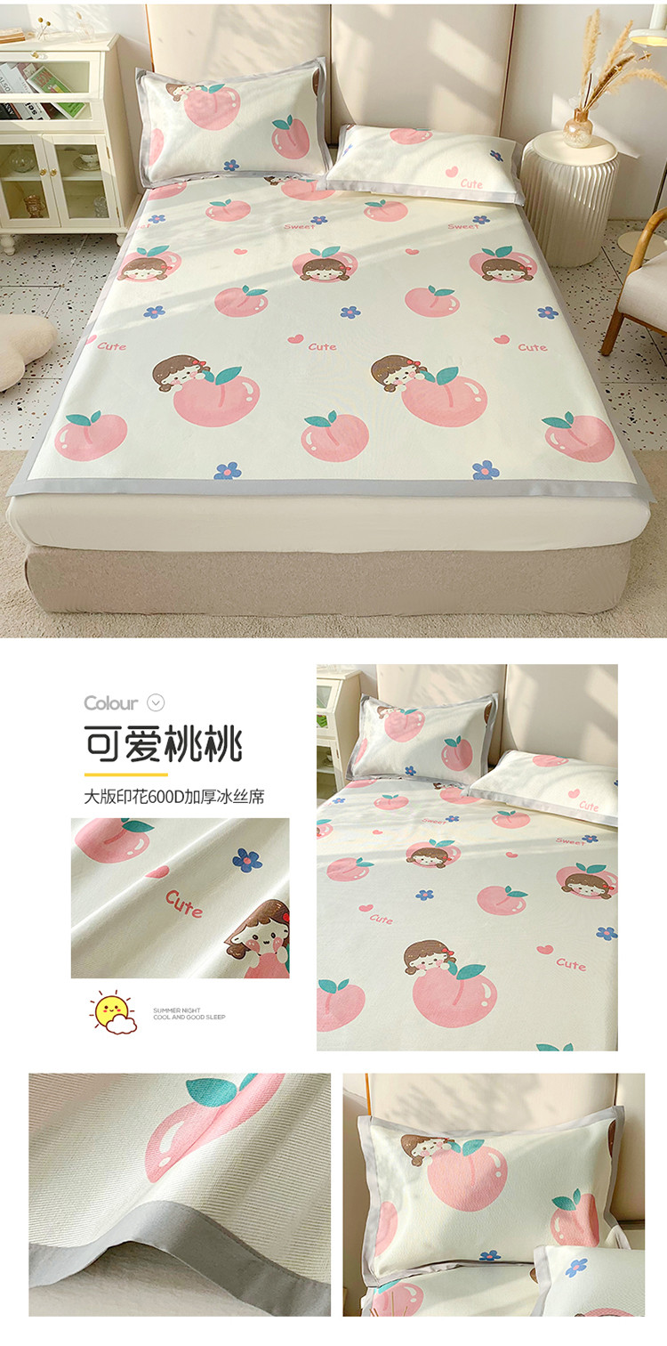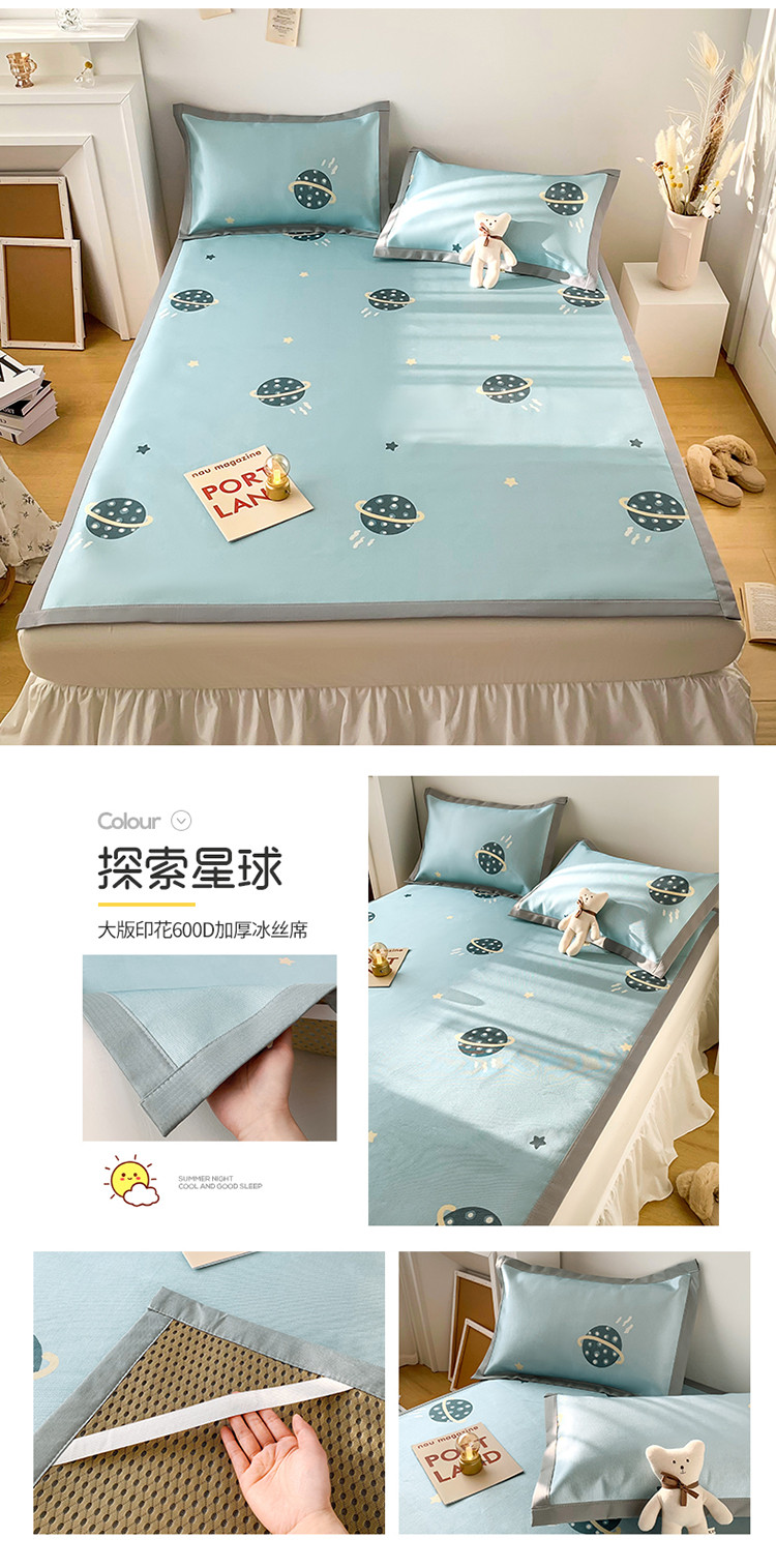 (总)懒猫家纺 2022新款学生宿舍冰丝数码印花凉席,尔雅,粉小兔,花韵,萝卜兔,清晨,手绘爱心,探索星球,甜心,小鲸鱼,小熊仔,元气兔