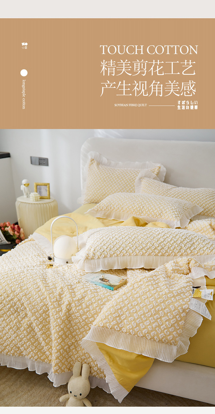 凡客 2022新款大豆剪花奈斯夏被四件套 柠檬黄
