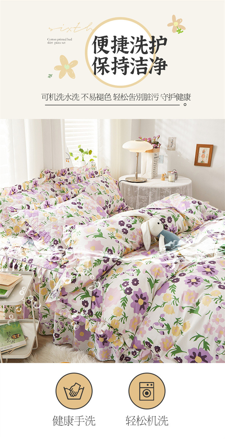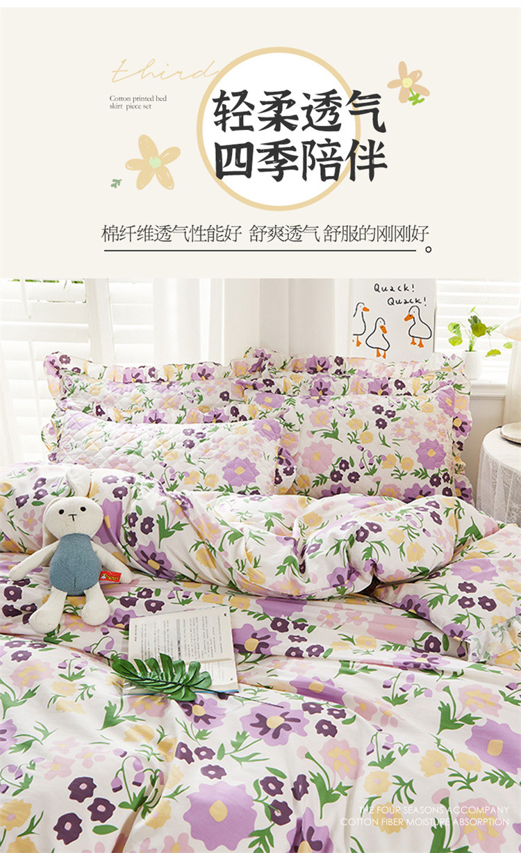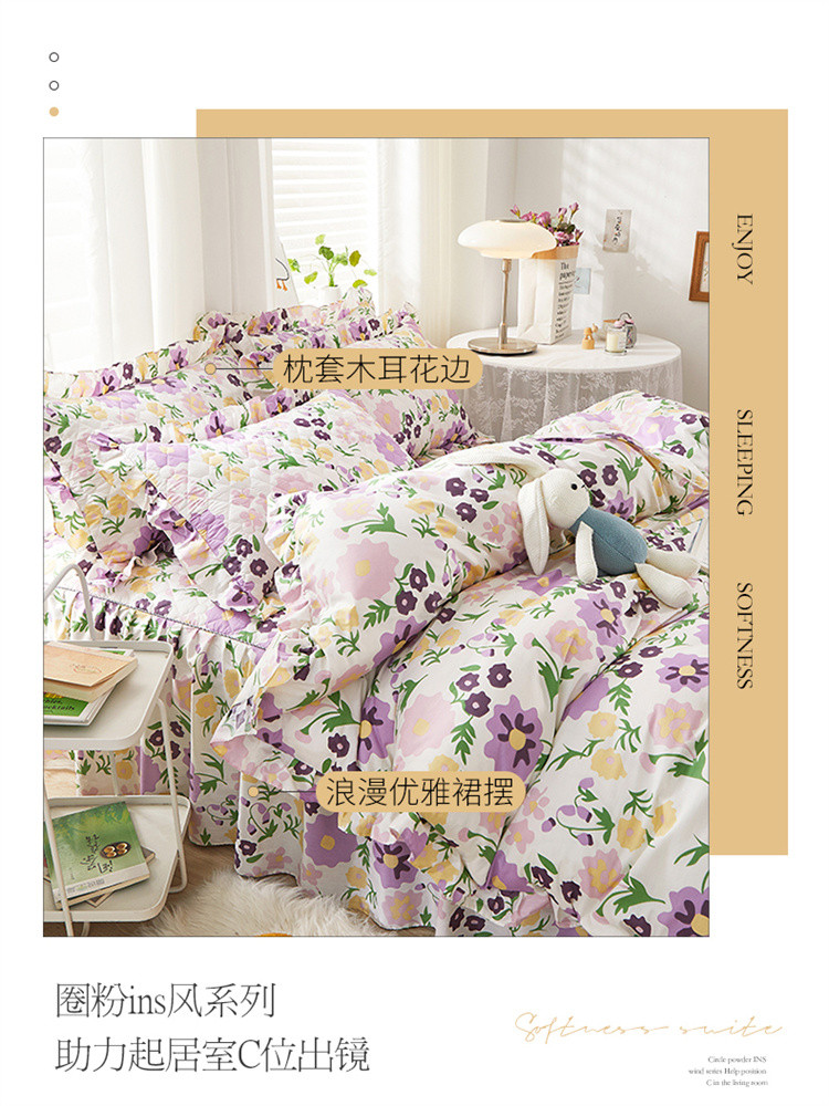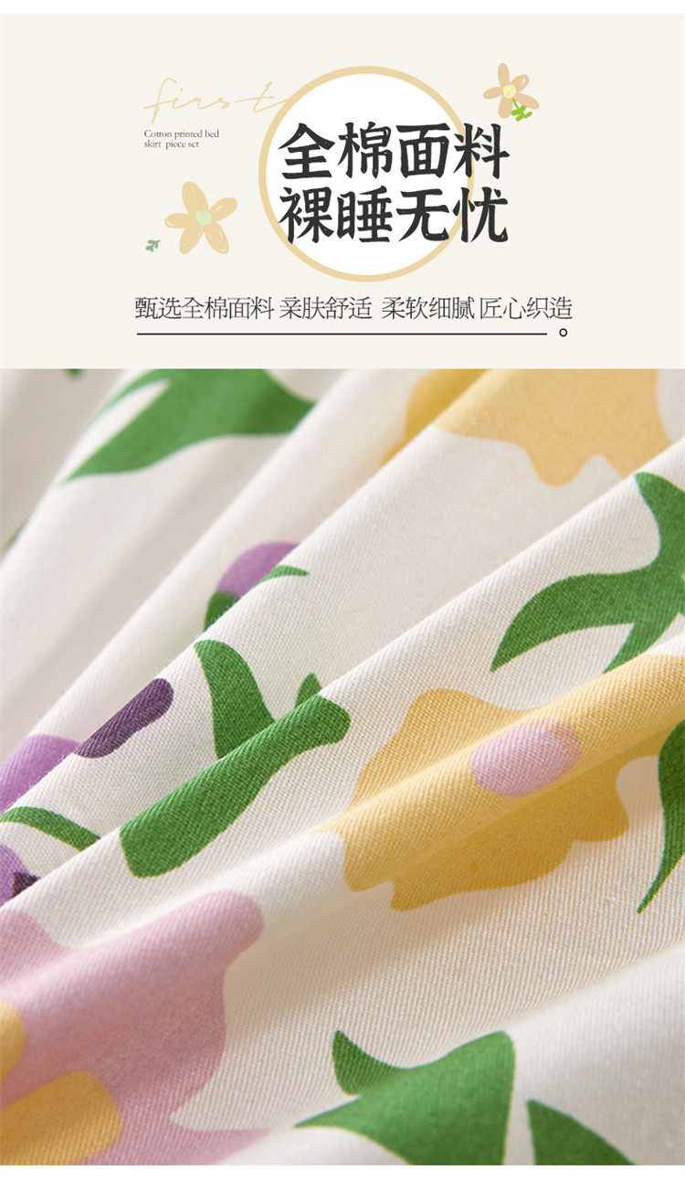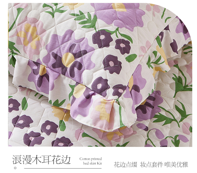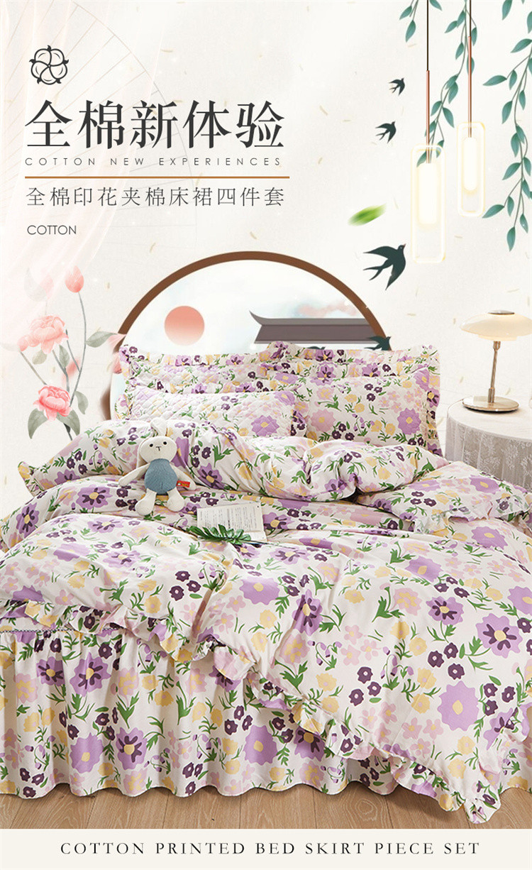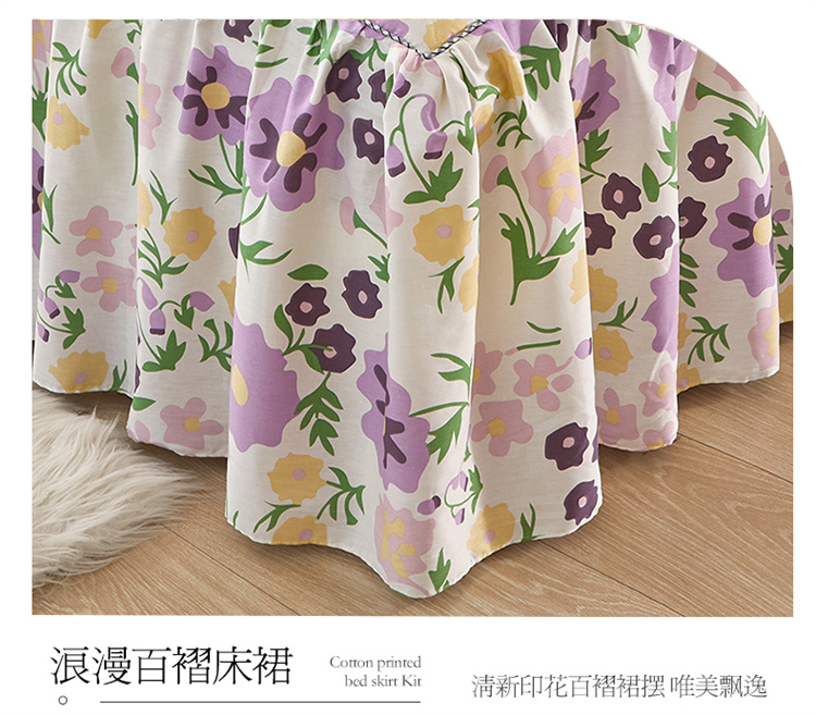 当前位置: 91家纺网 > 商品网购 > 床品套件 > 四件套 > 全棉普通四件套 > 十个点 2022新款全棉夹棉印花床裙四件套 花海之恋