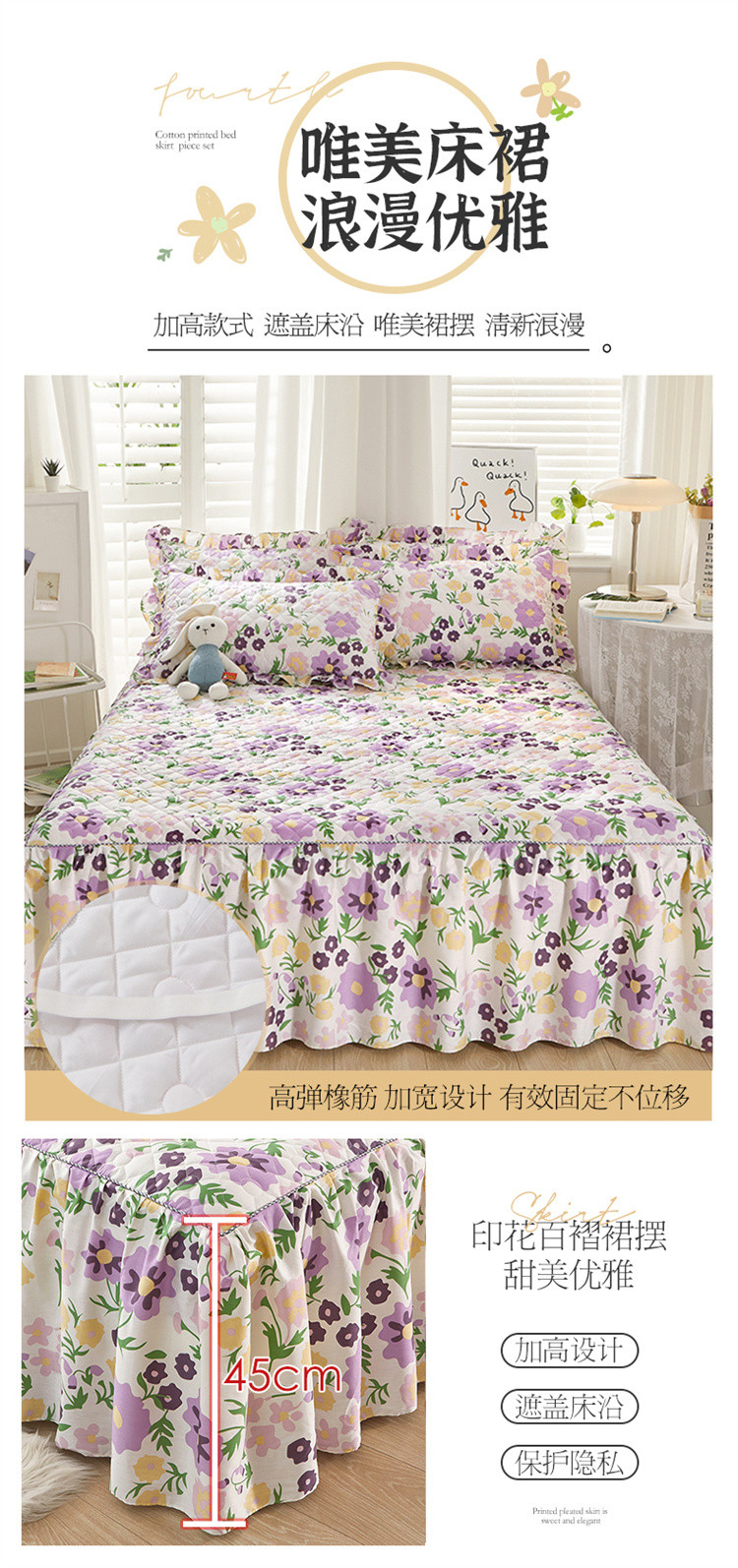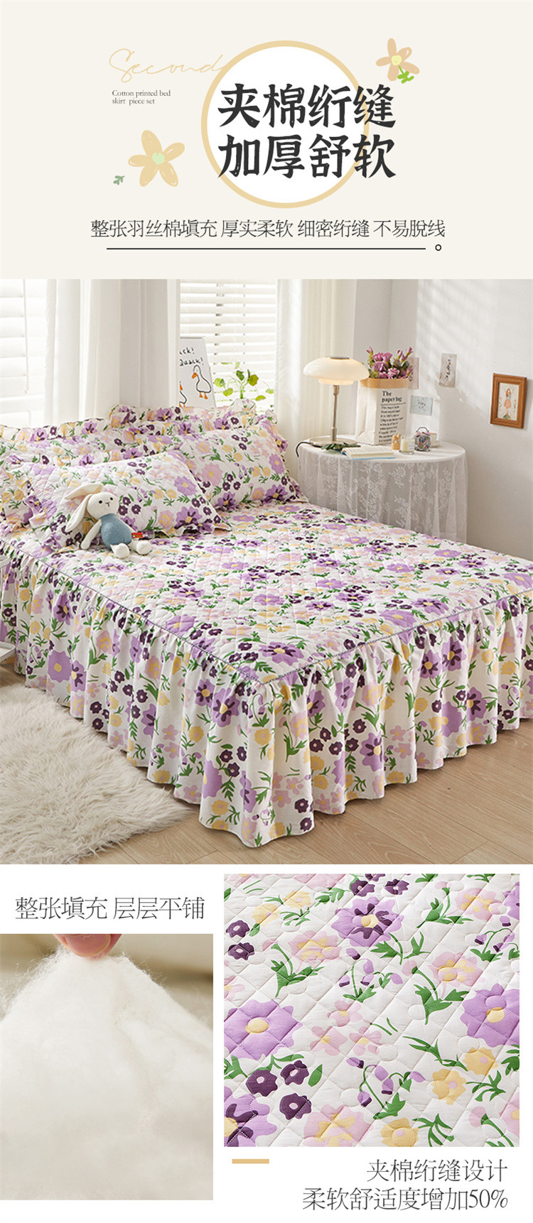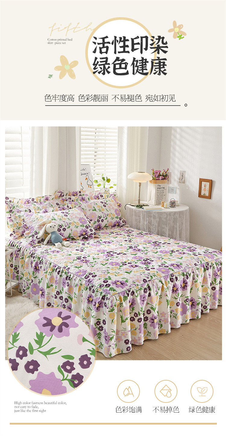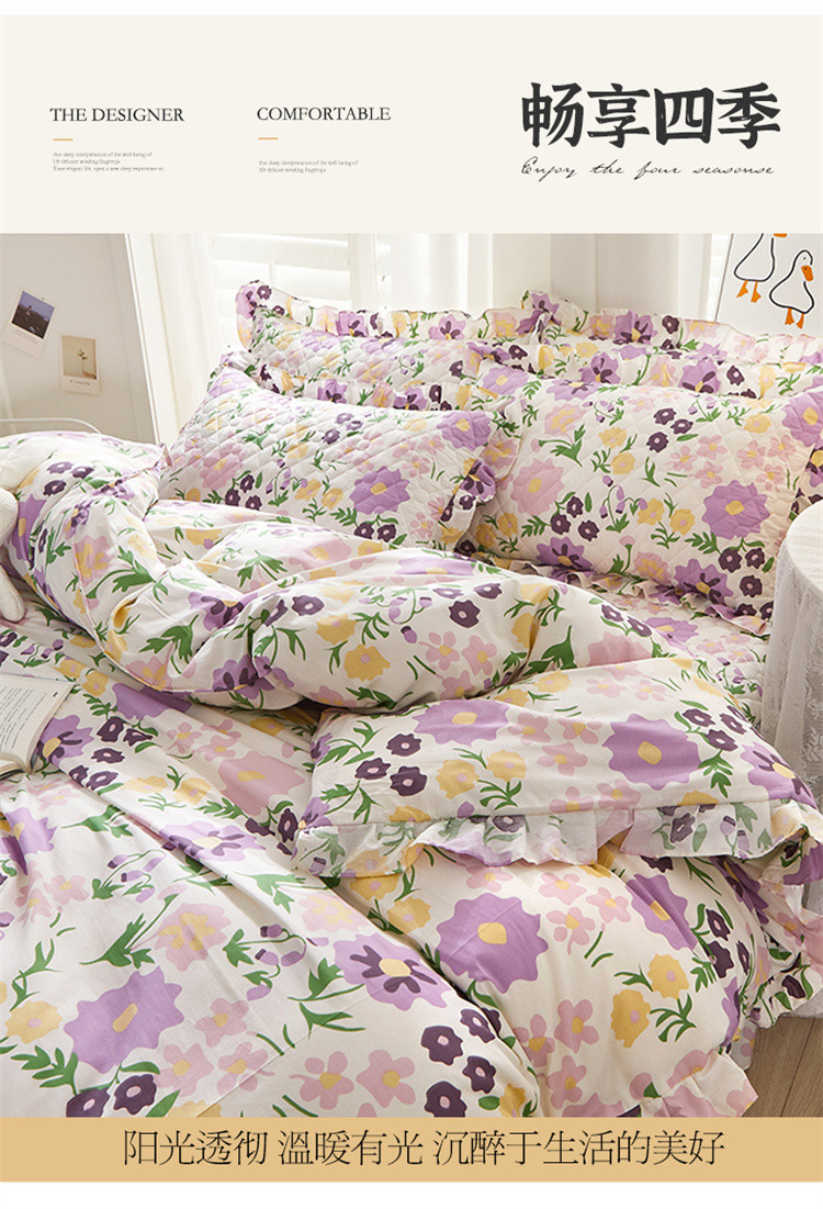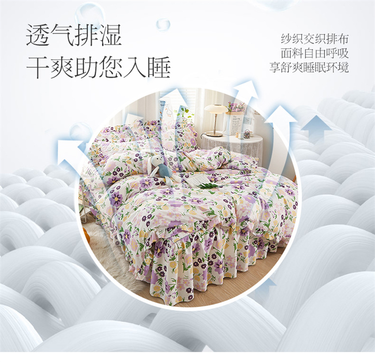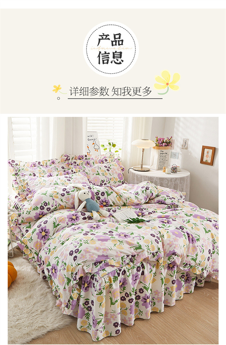 当前位置: 91家纺网 > 商品网购 > 床品套件 > 四件套 > 全棉普通四件套 > 十个点 2022新款全棉夹棉印花床裙四件套 花海之恋