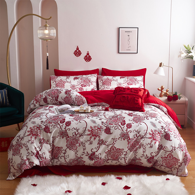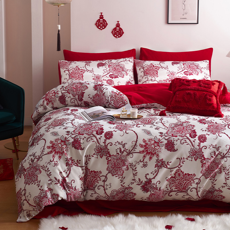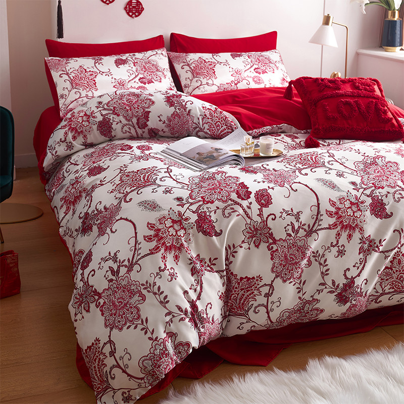 用心 2022新款数码印花婚庆四件套,云喜