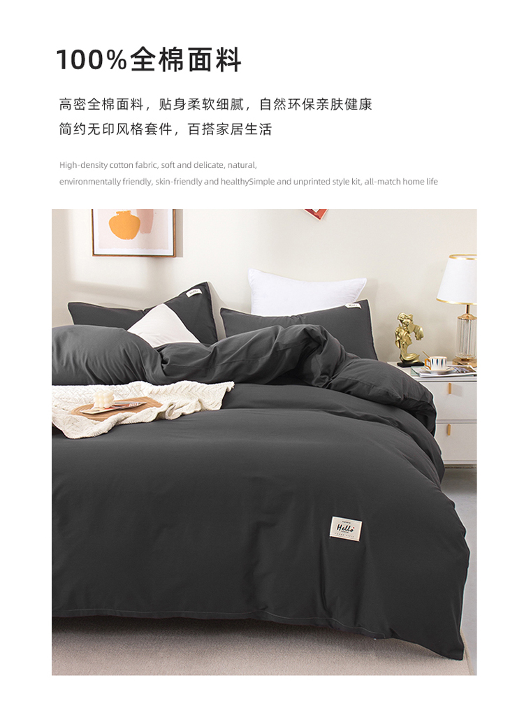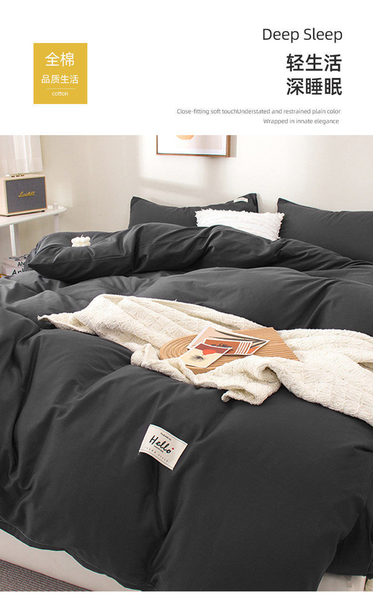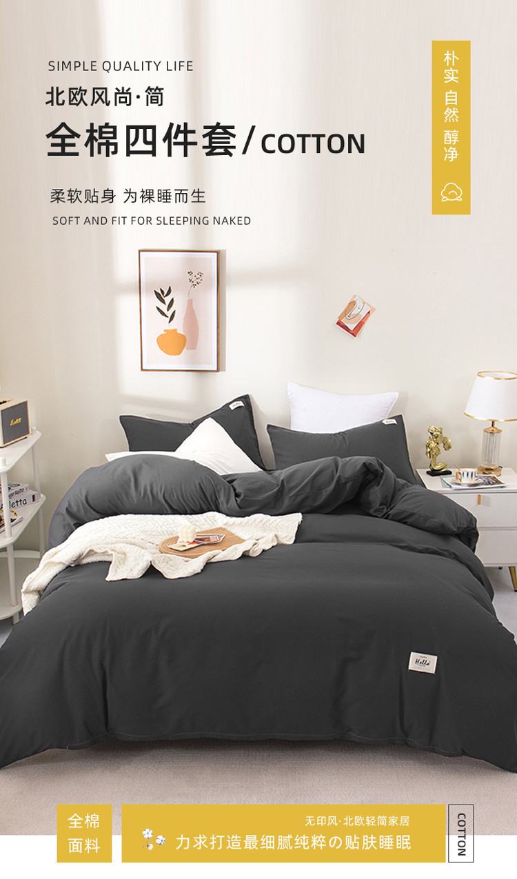 当前位置: 91家纺网 > 商品网购 > 床品套件 > 四件套 > 全棉普通四件套 > 柠萌2022新款全棉40支纯棉纯色双拼系列四件套 萌黑灰