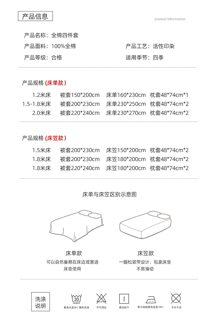 1.5m床笠款四件套 | ¥125.00 |