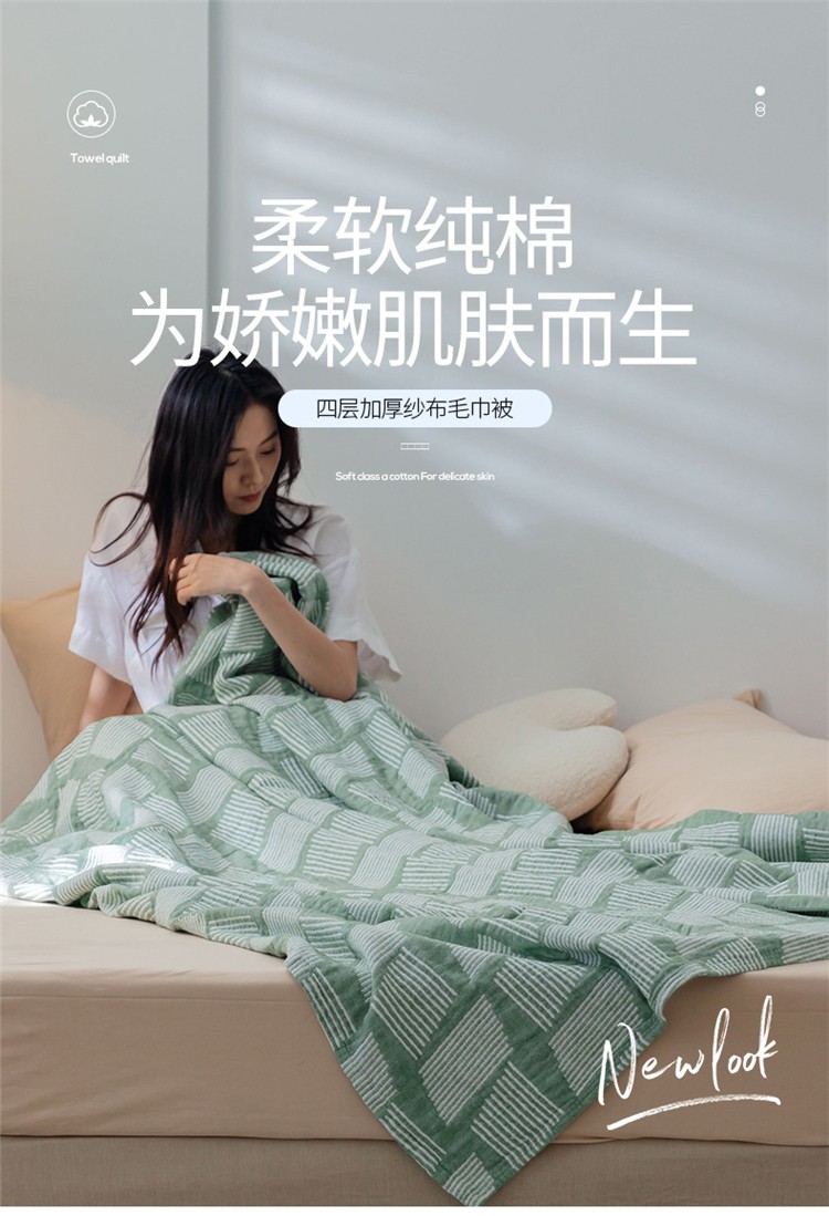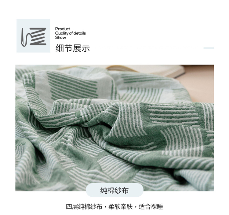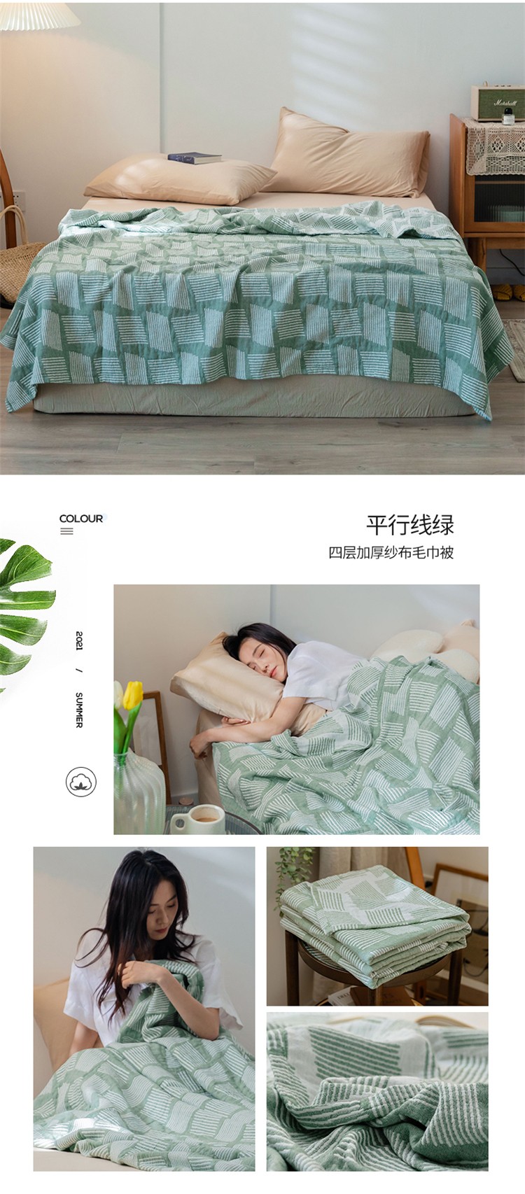 商品名称:雯雨 2022新款四层加厚纱布毛巾被 平行线绿