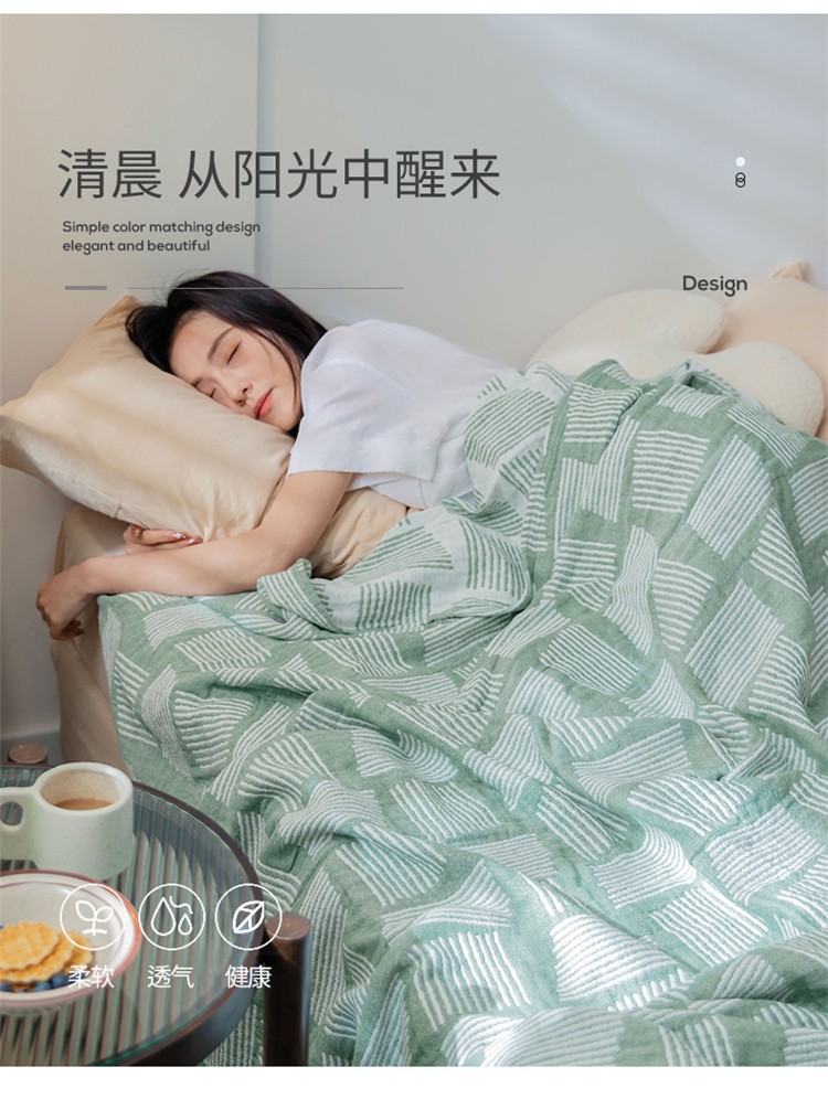 雯雨 2022新款四层加厚纱布毛巾被 平行线绿