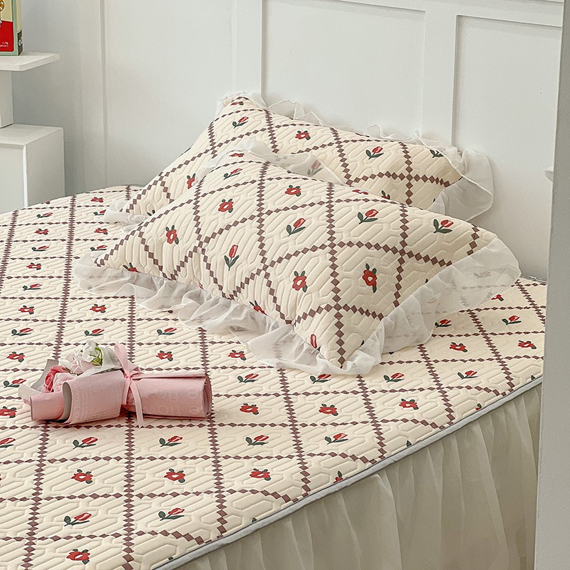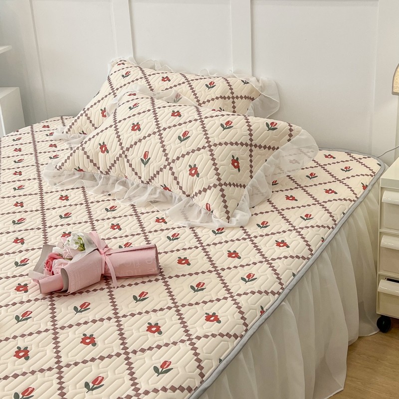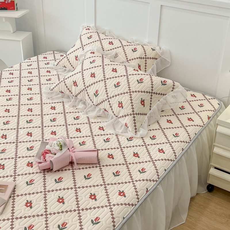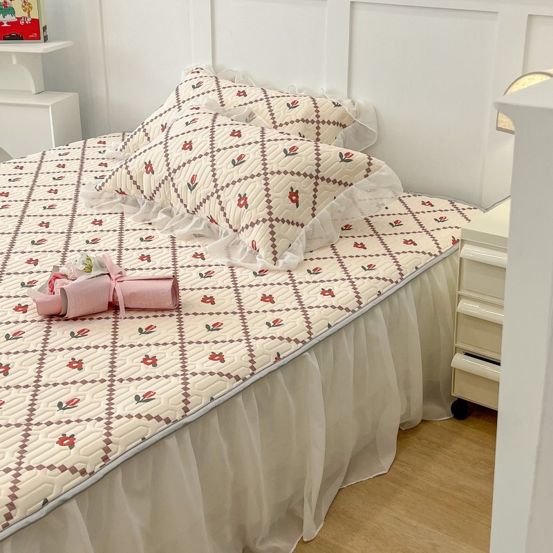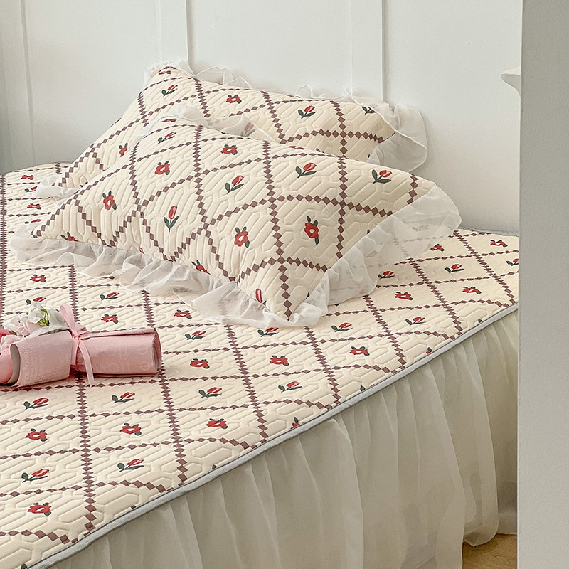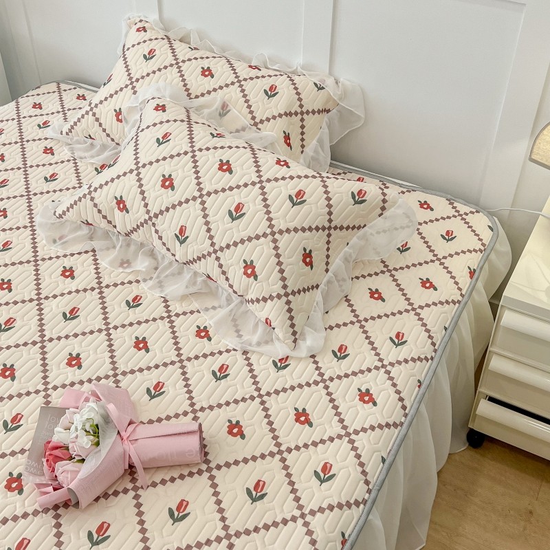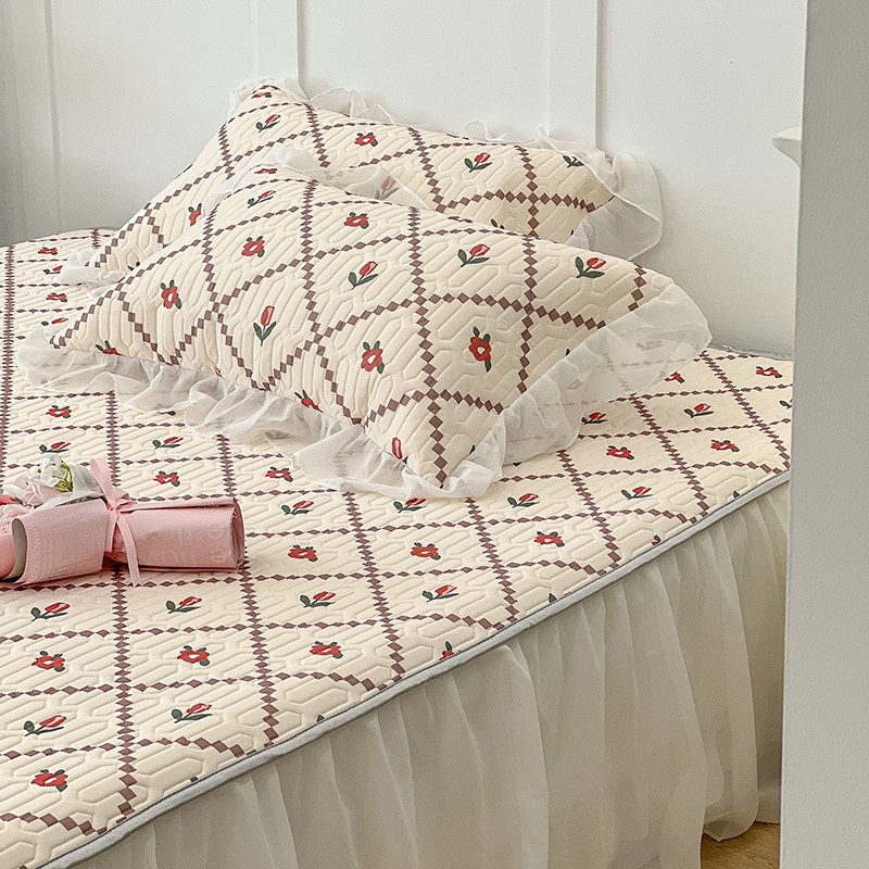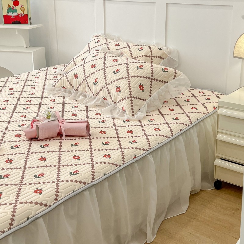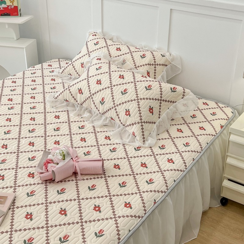 商品名称:昔可 2022新款ins风小清新床裙款乳胶凉席三件套 床裙款-菱形小花红