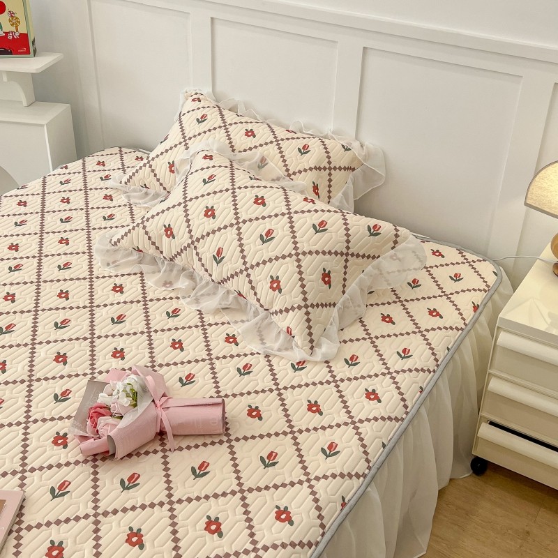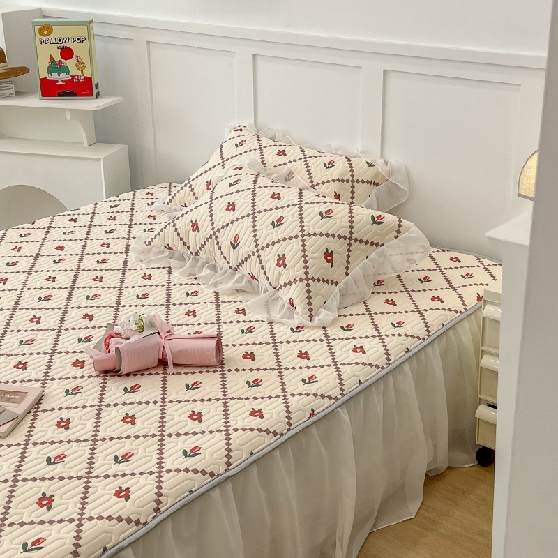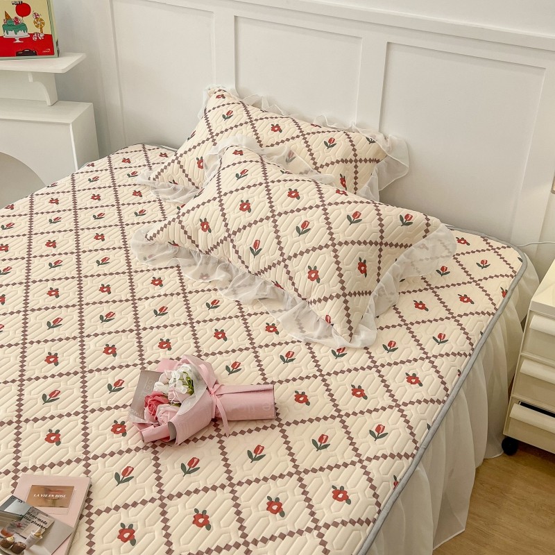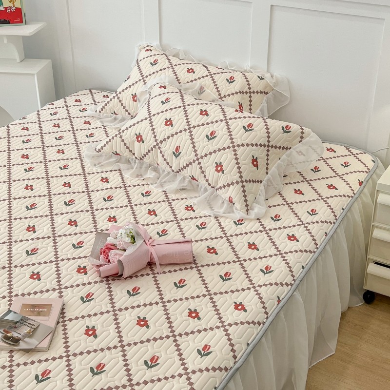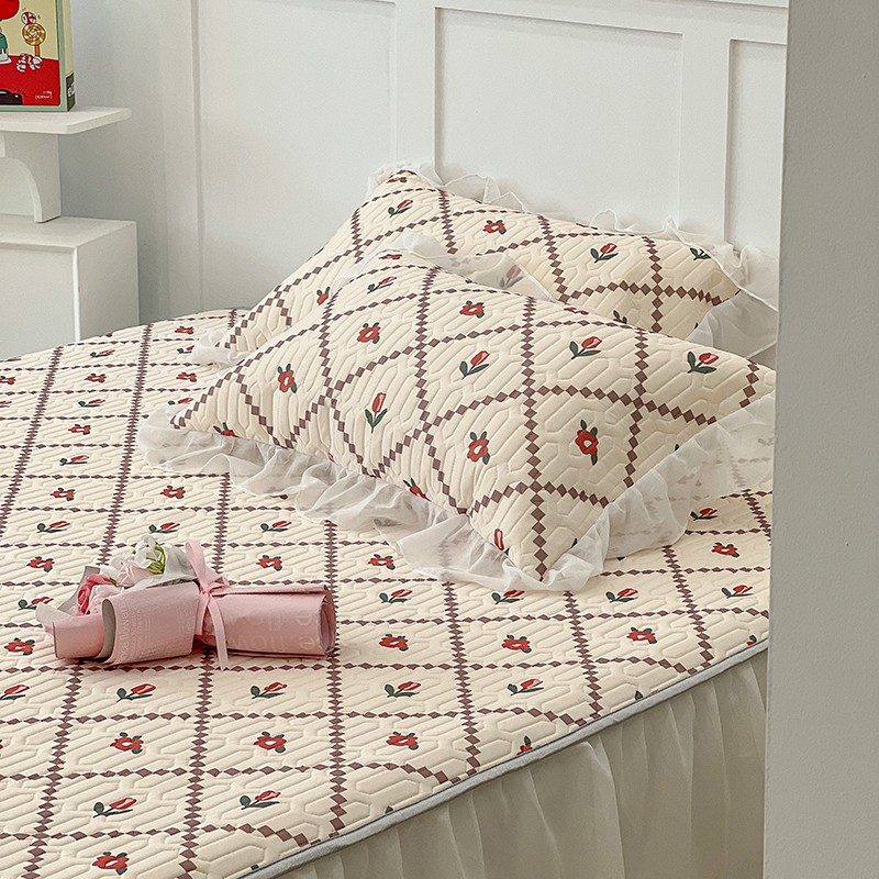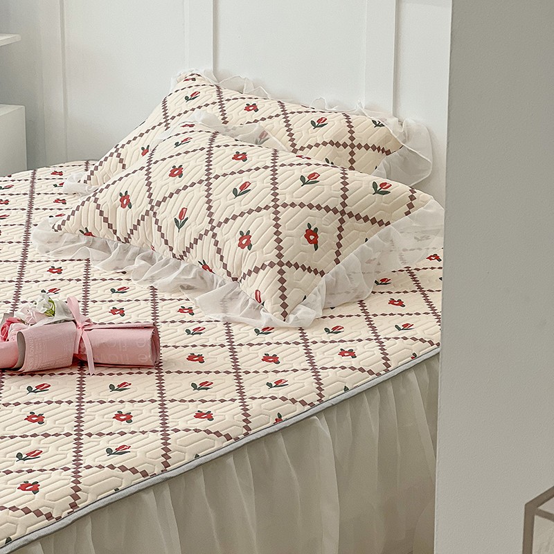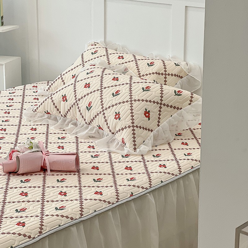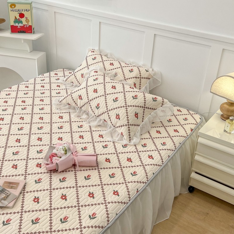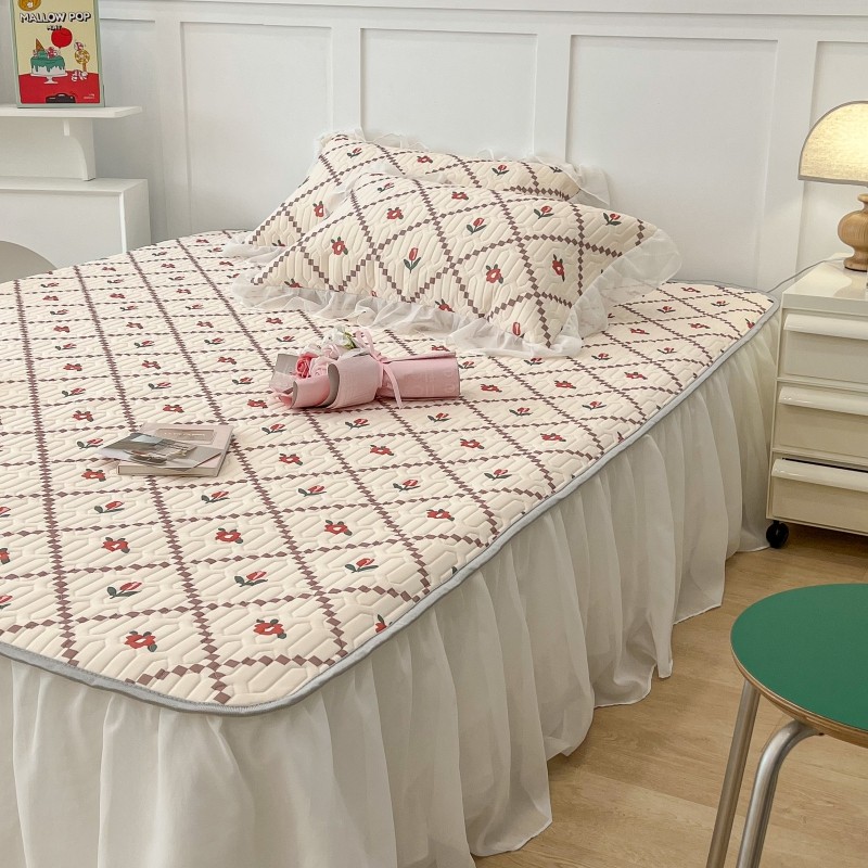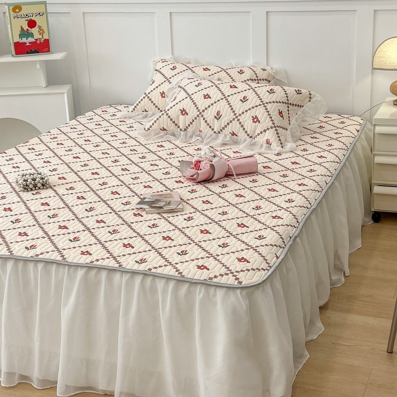 商品名称:昔可 2022新款ins风小清新床裙款乳胶凉席三件套 床裙款-菱形小花红