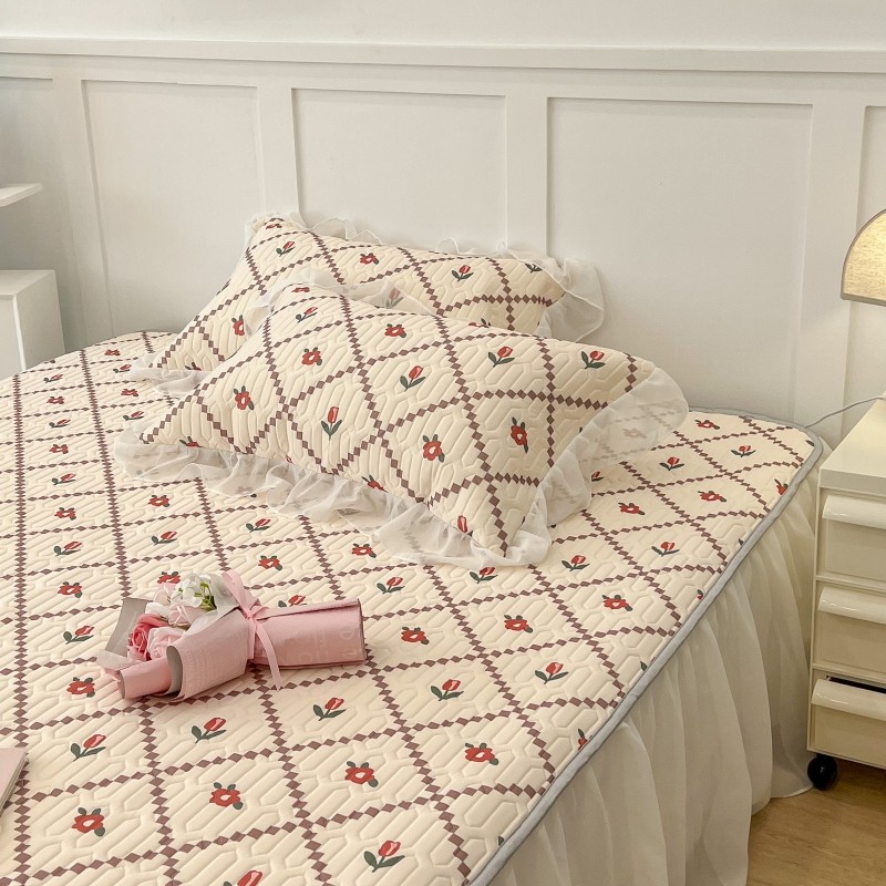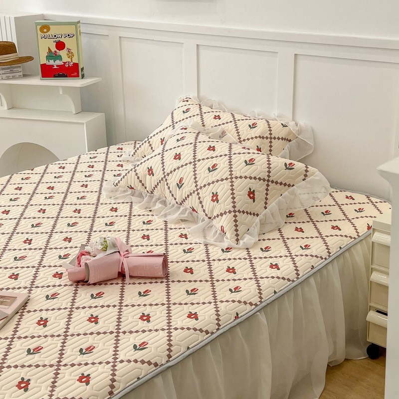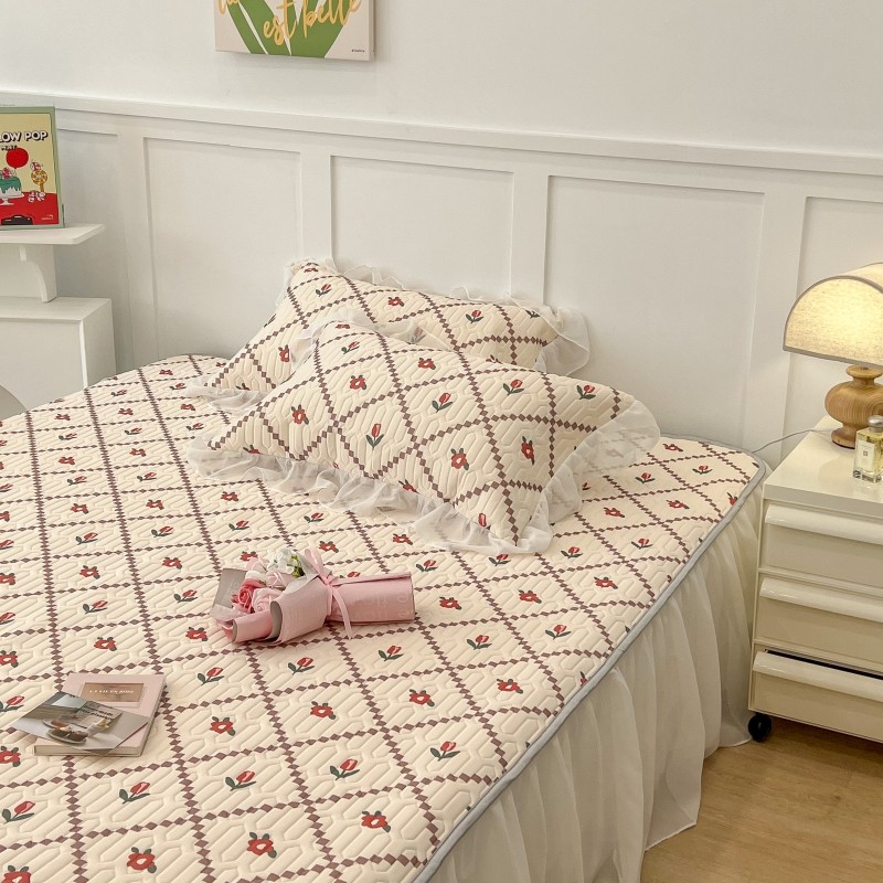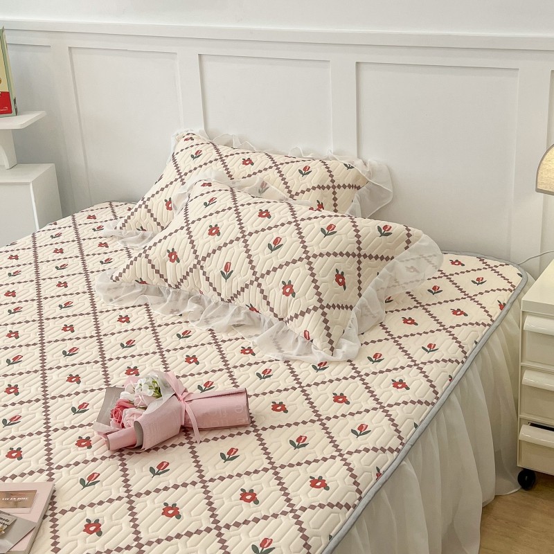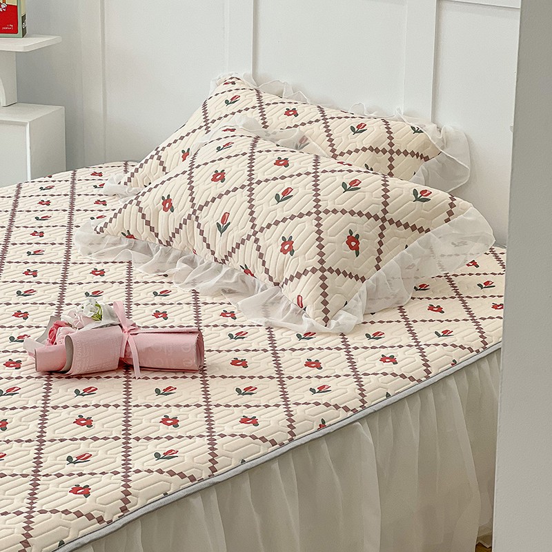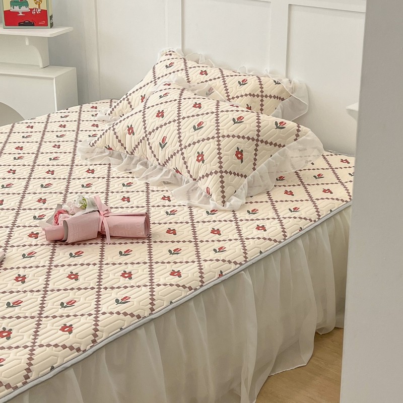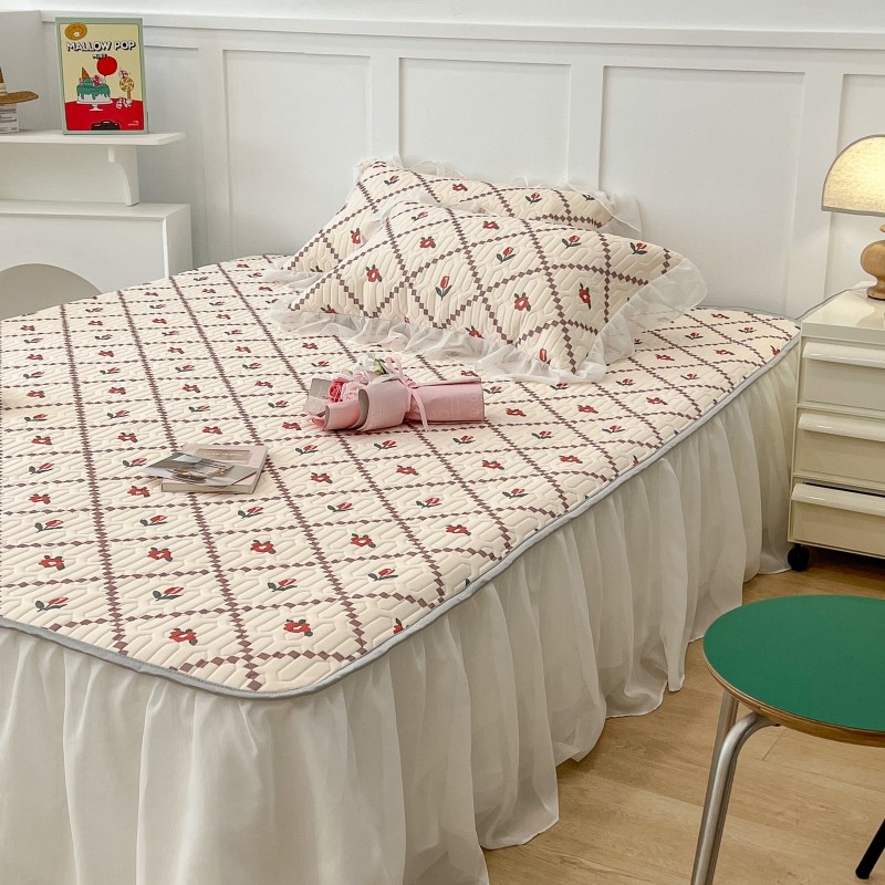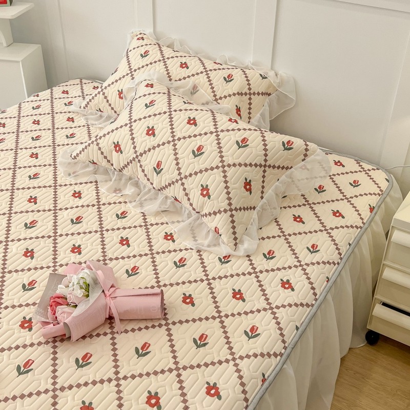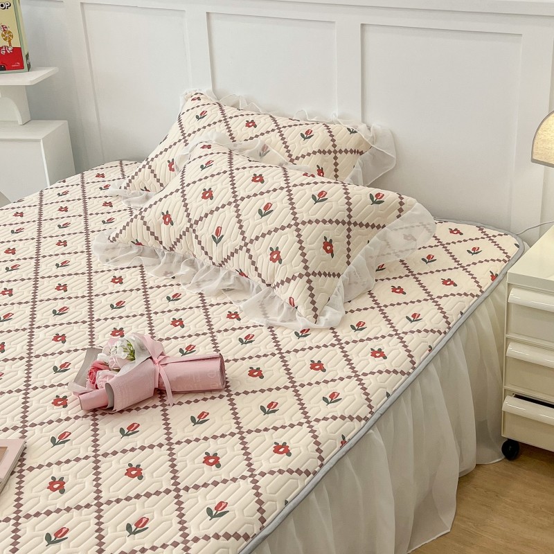 商品名称:昔可 2022新款ins风小清新床裙款乳胶凉席三件套 床裙款-菱形小花红