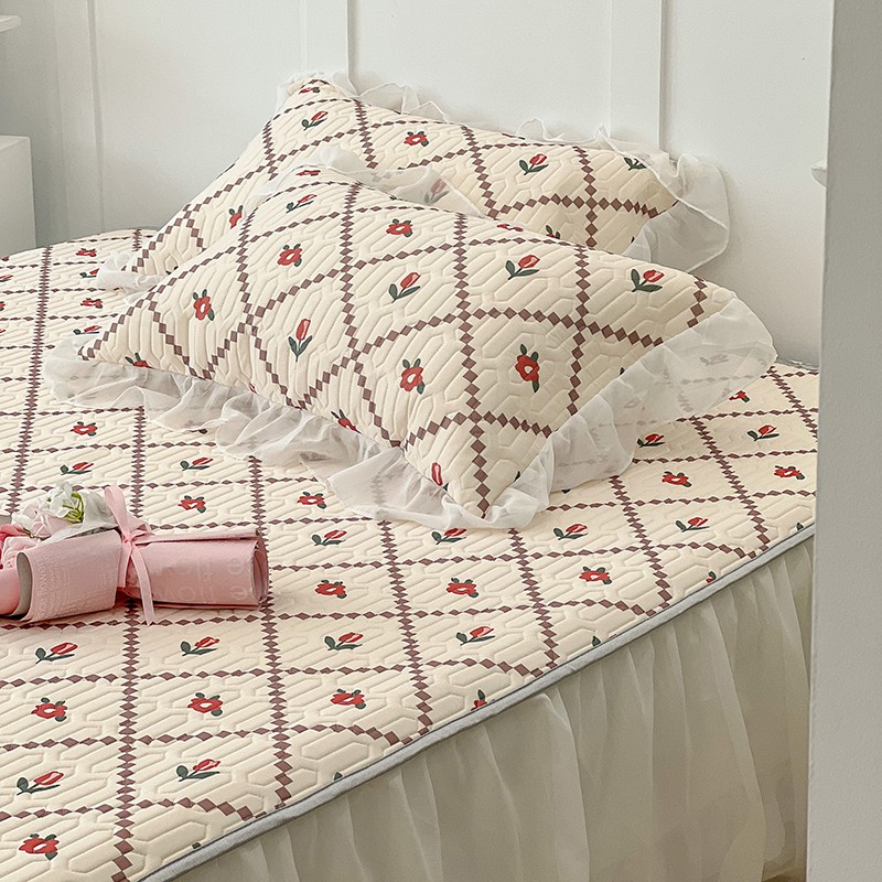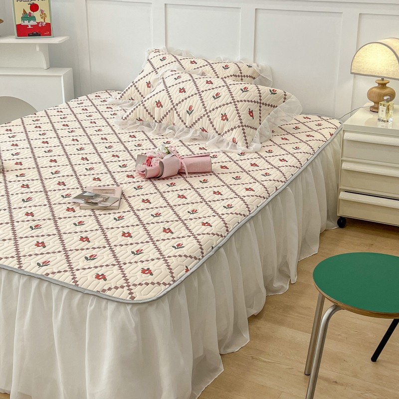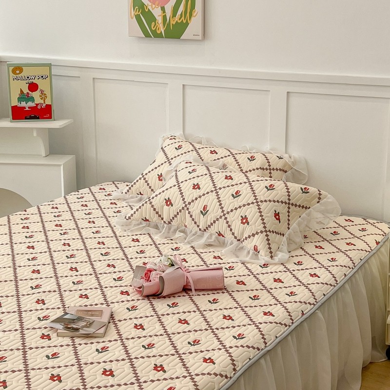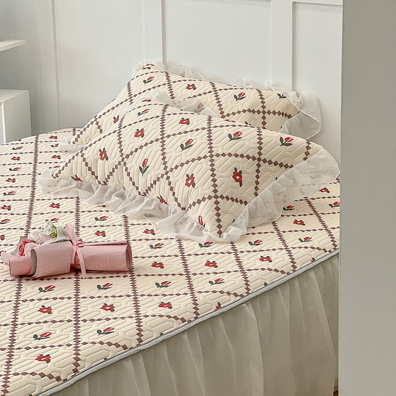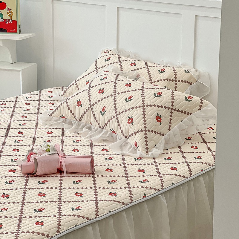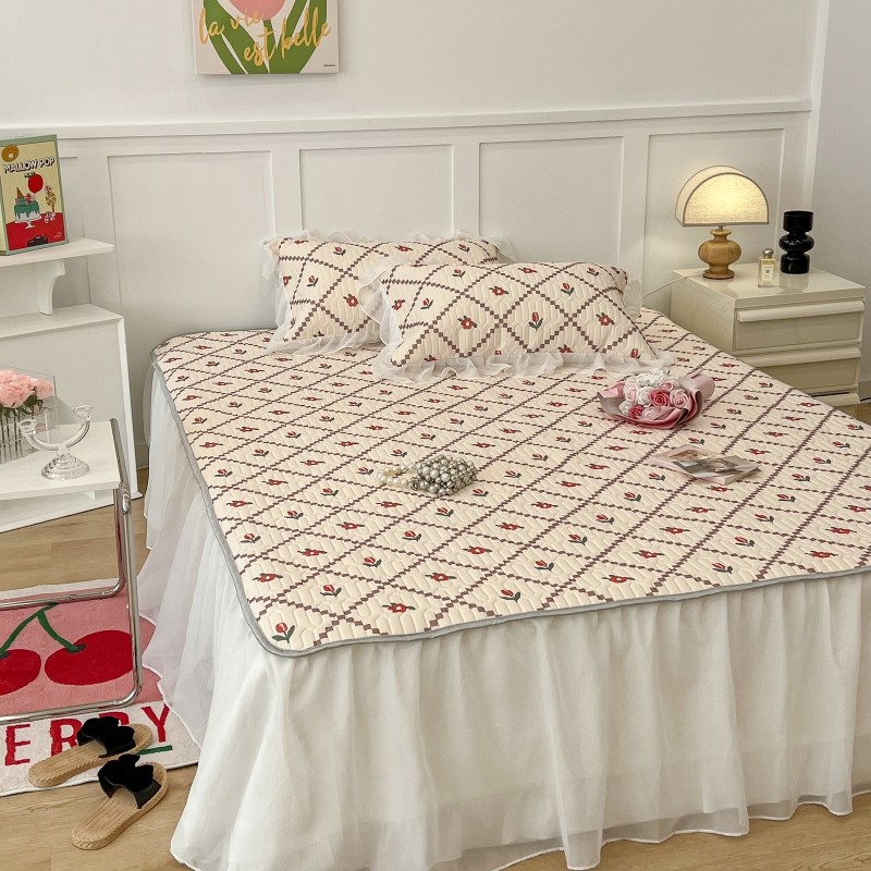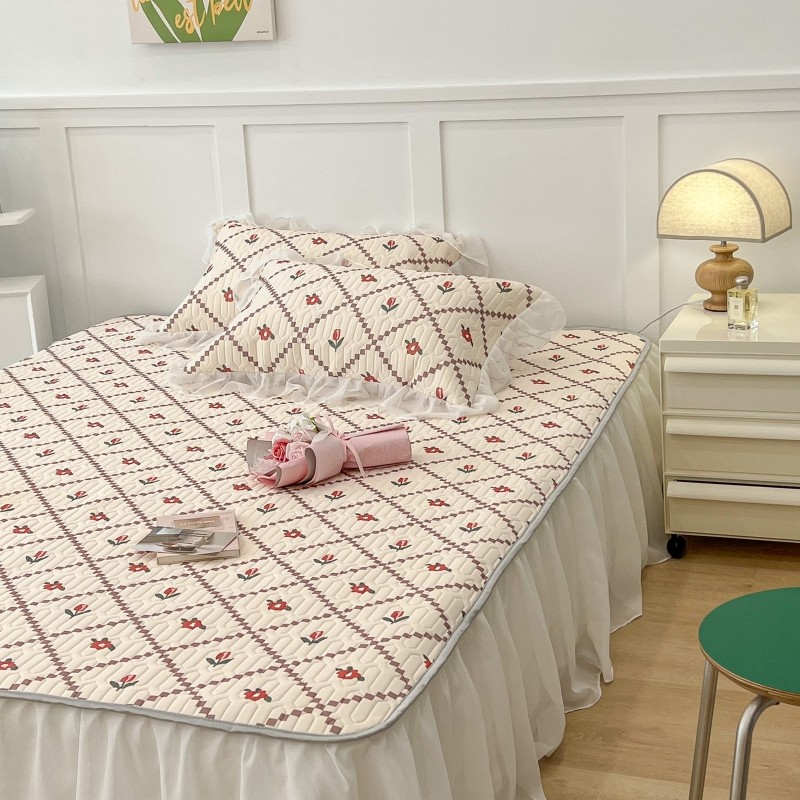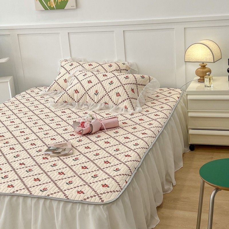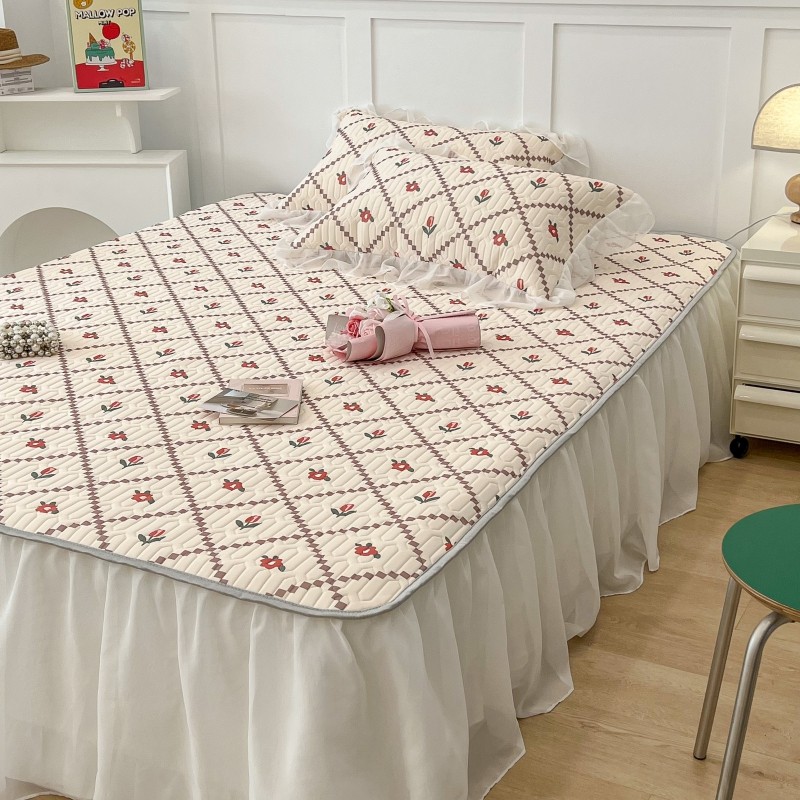 商品名称:昔可 2022新款ins风小清新床裙款乳胶凉席三件套 床裙款-菱形小花红