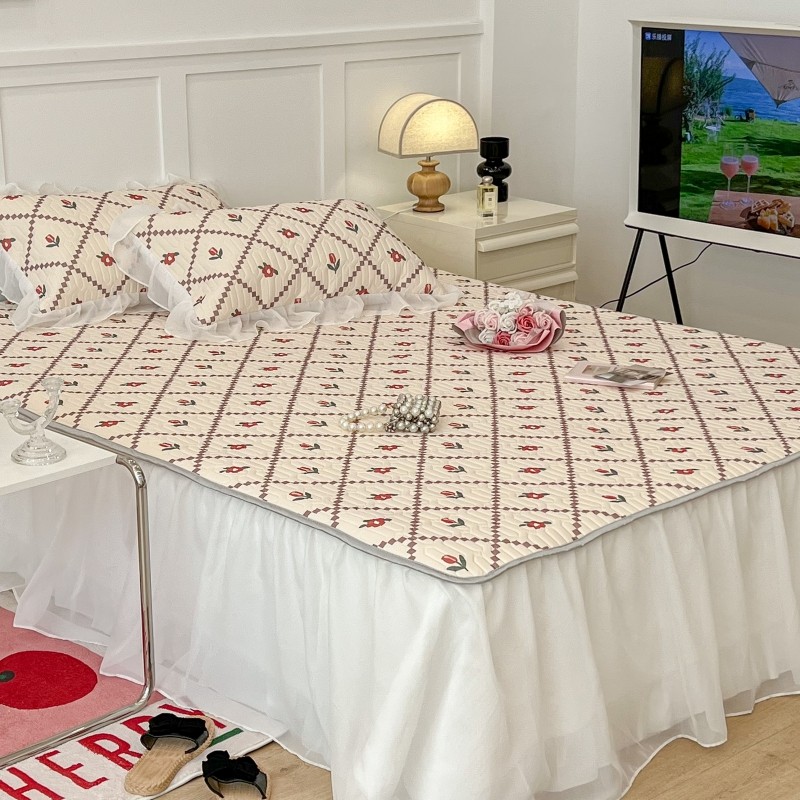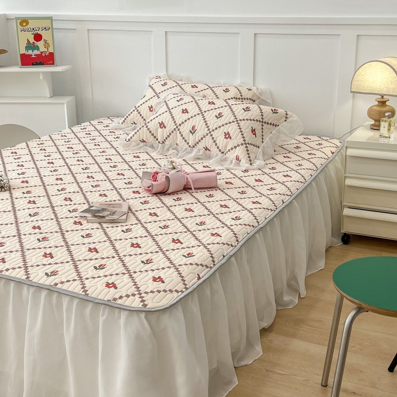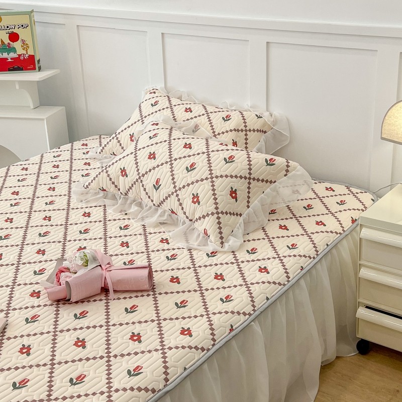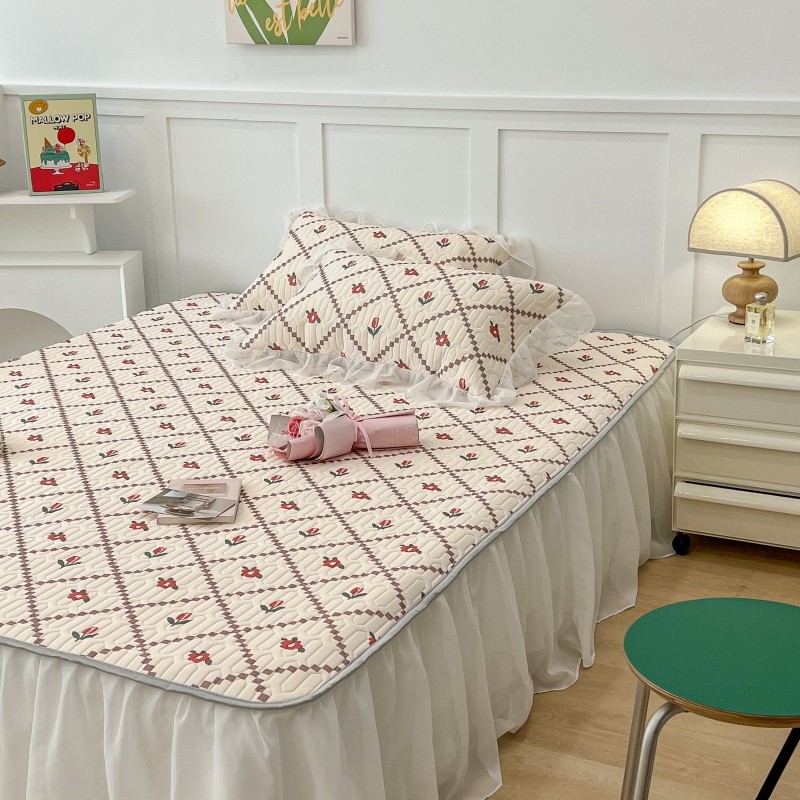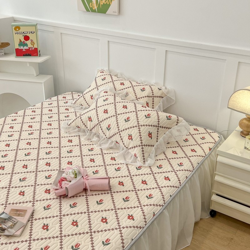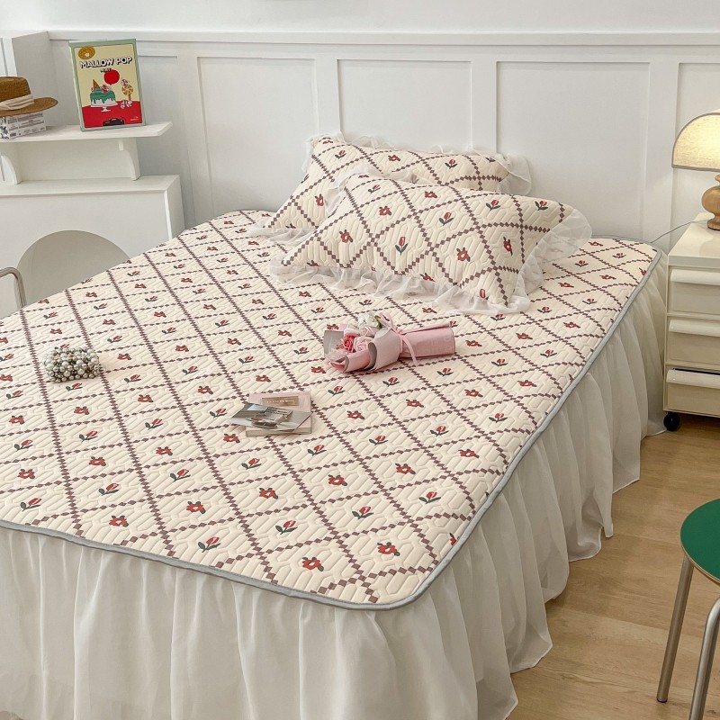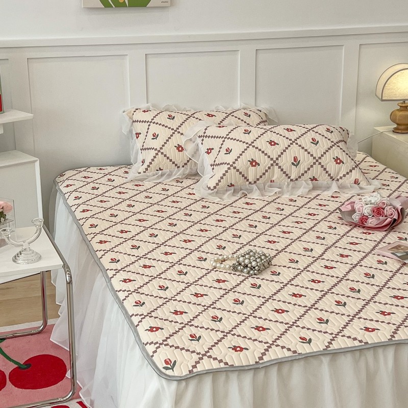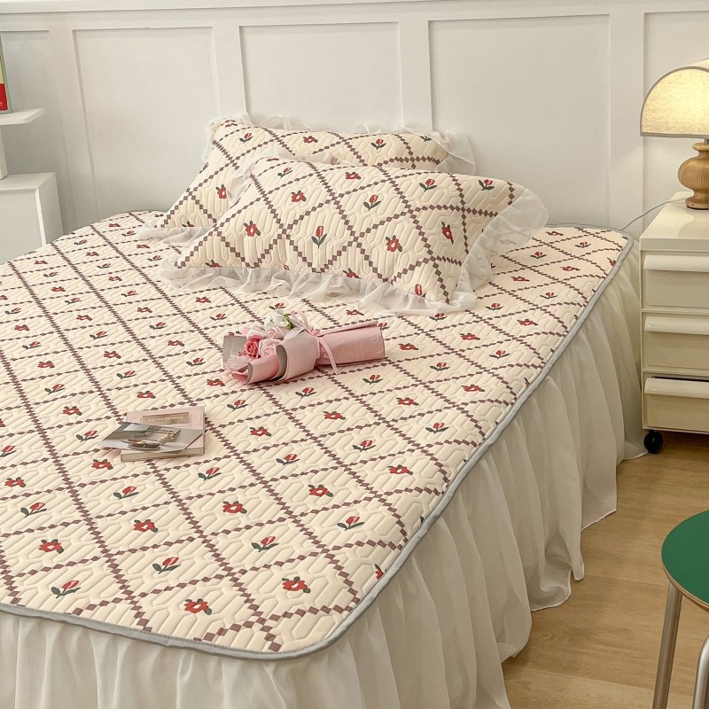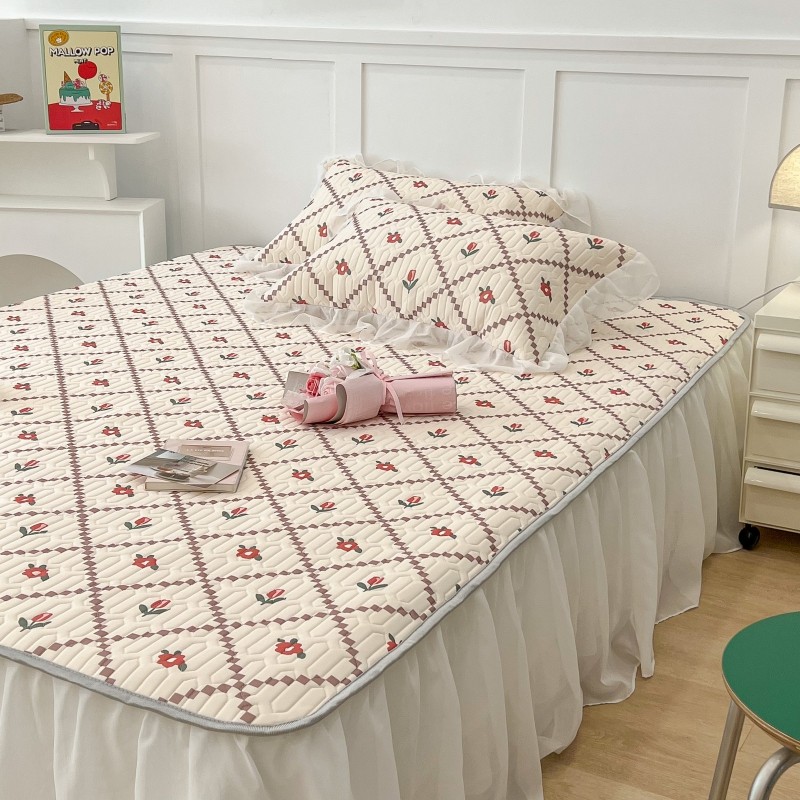 商品名称:昔可 2022新款ins风小清新床裙款乳胶凉席三件套 床裙款-菱形小花红