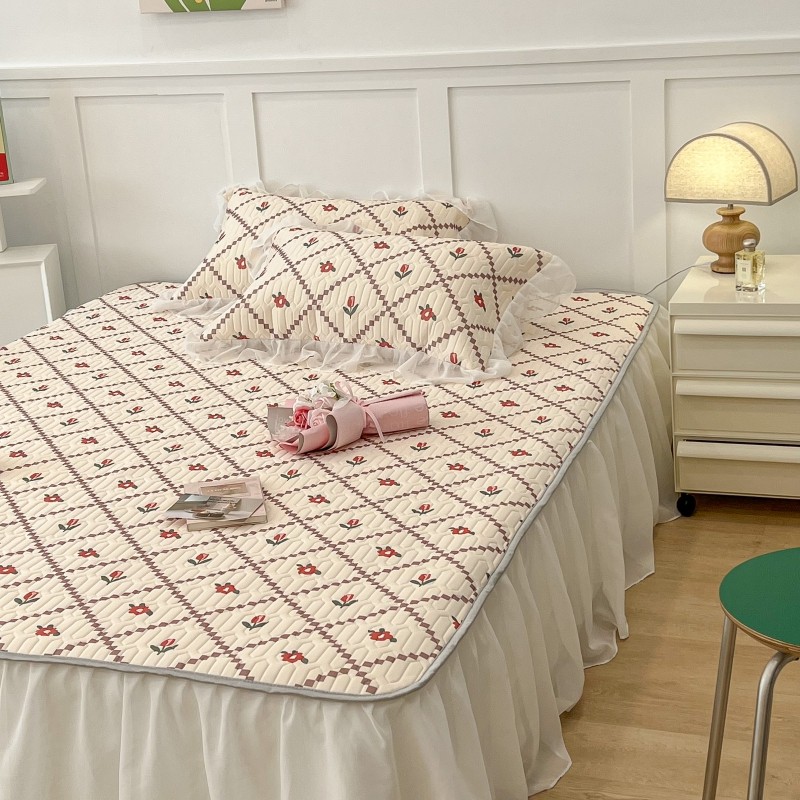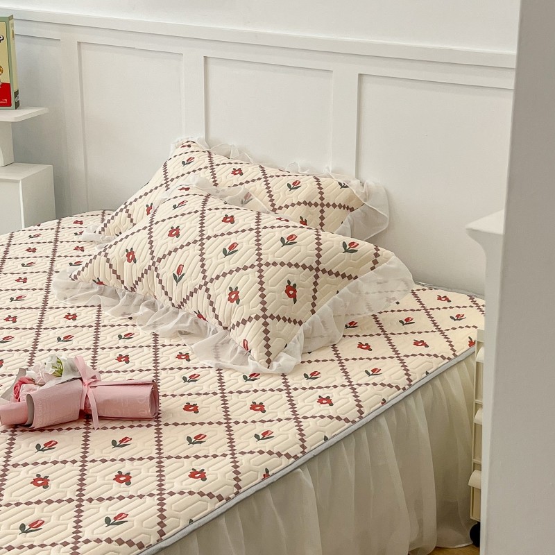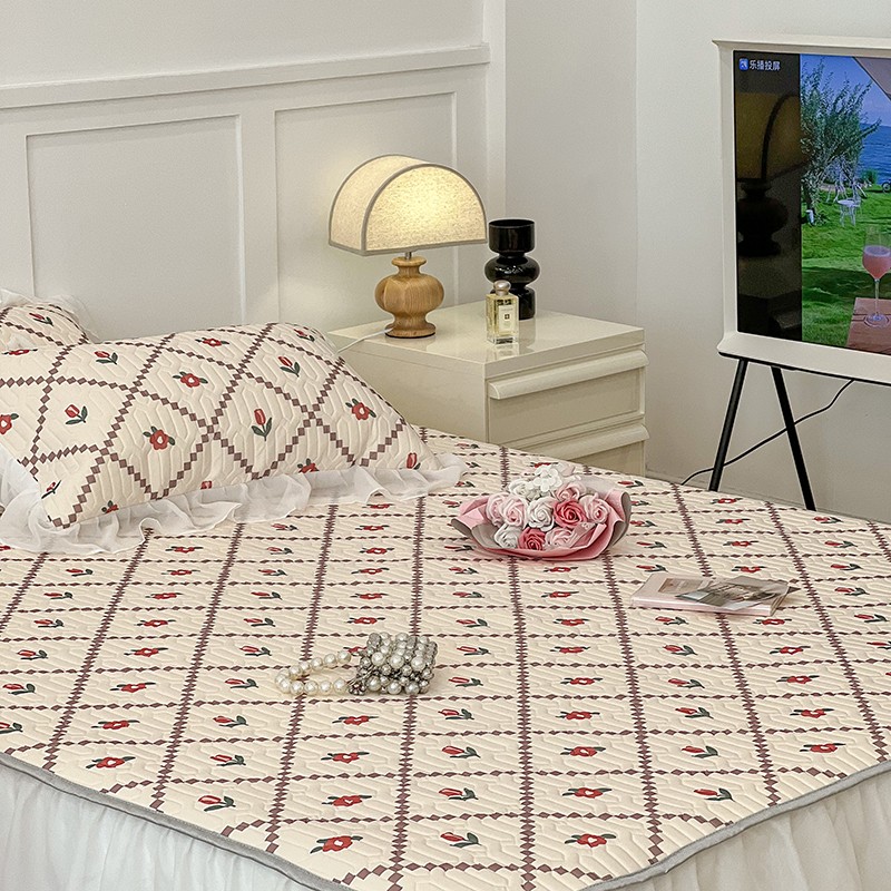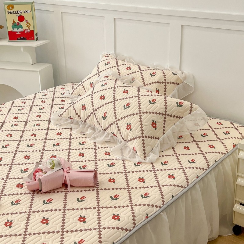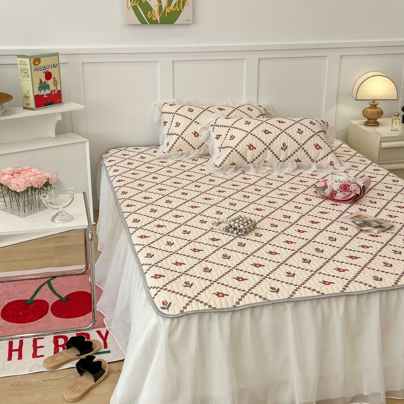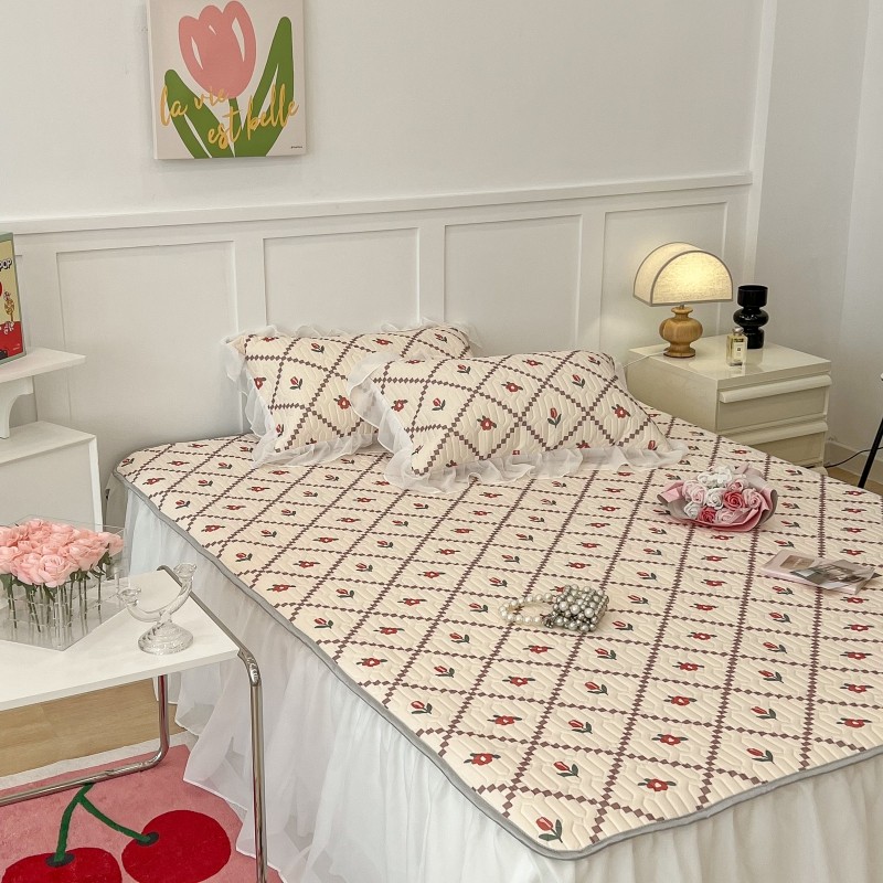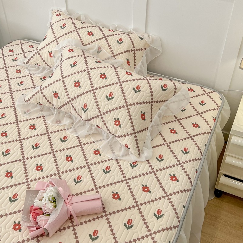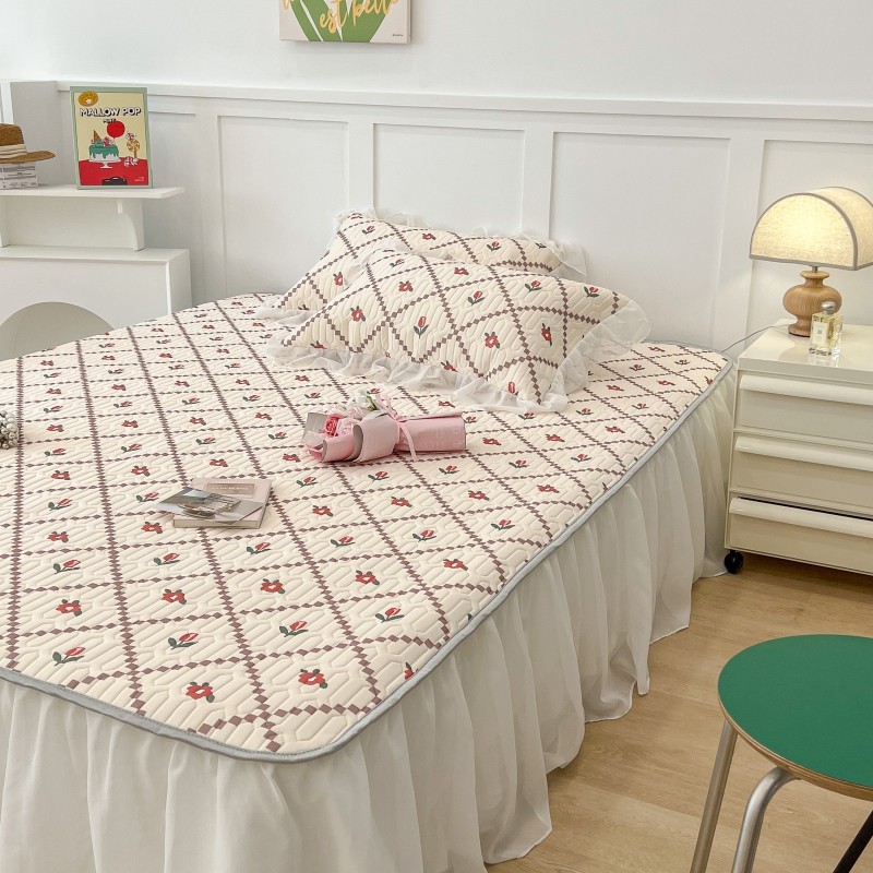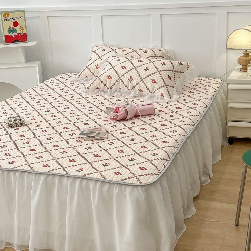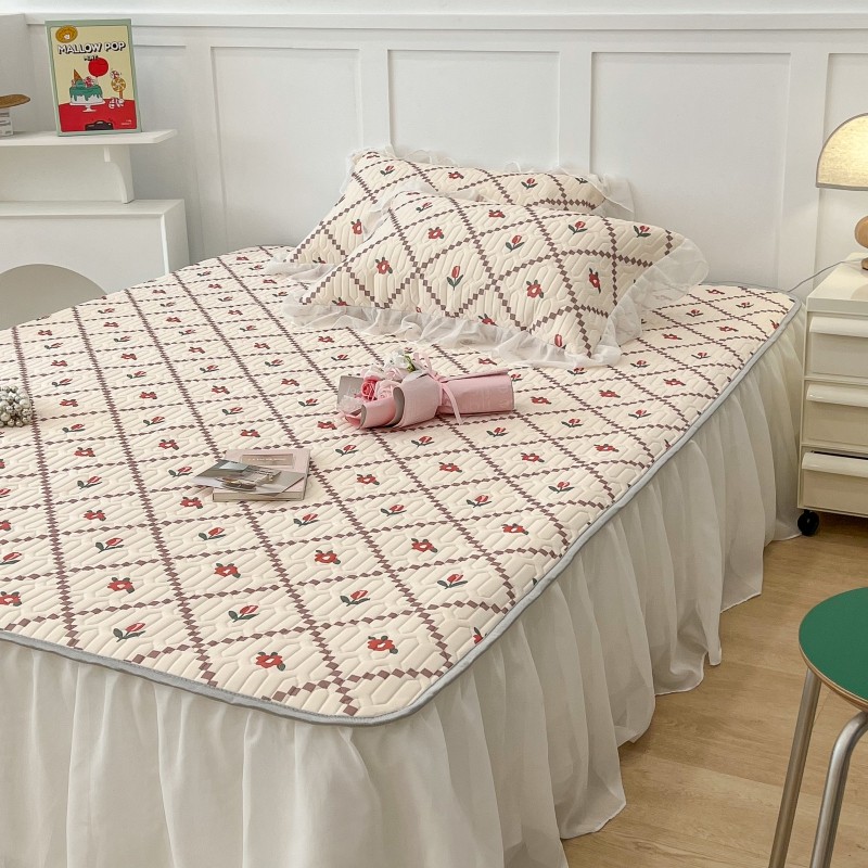 商品名称:昔可 2022新款ins风小清新床裙款乳胶凉席三件套 床裙款-菱形小花红
