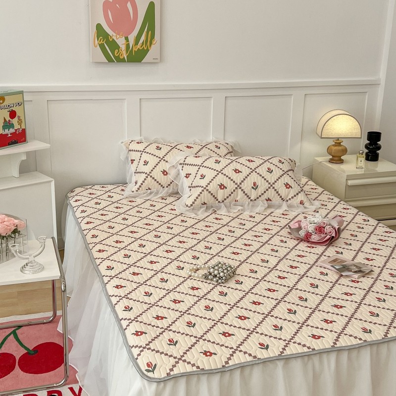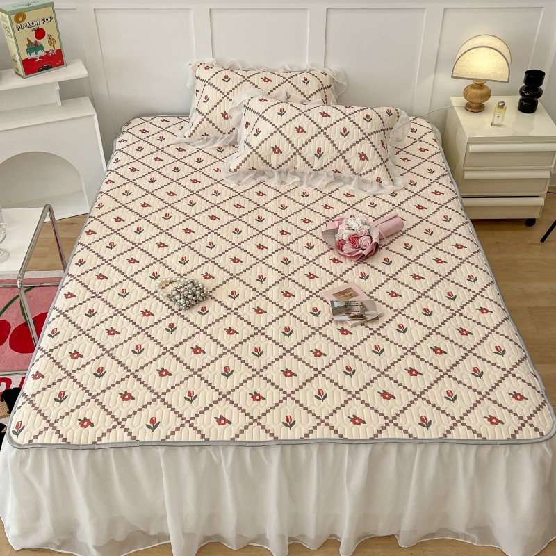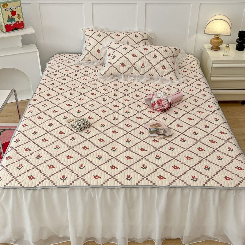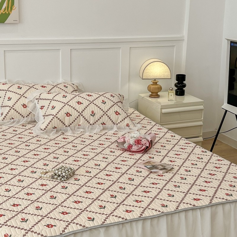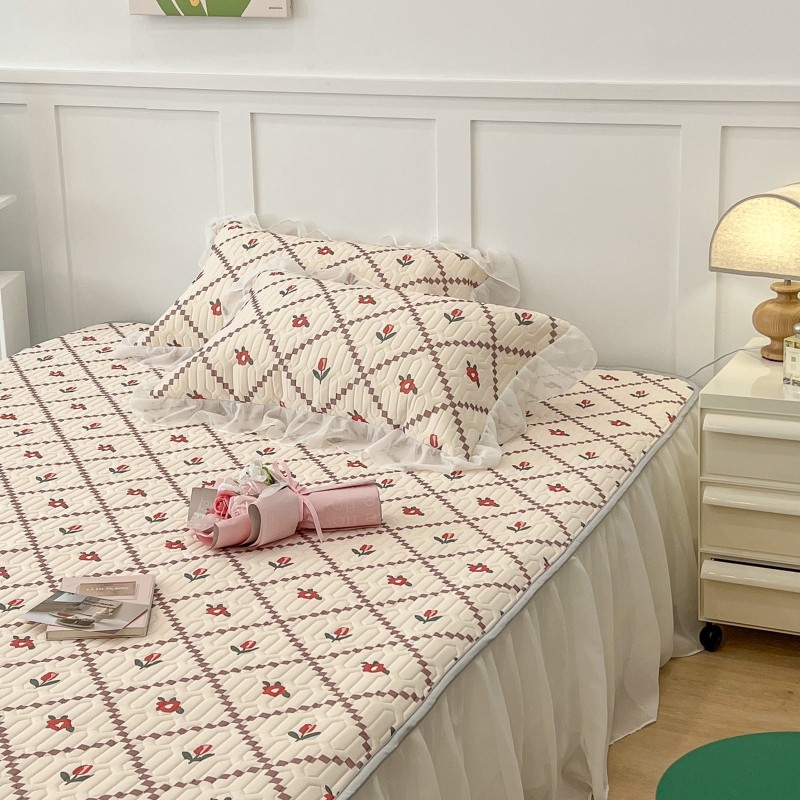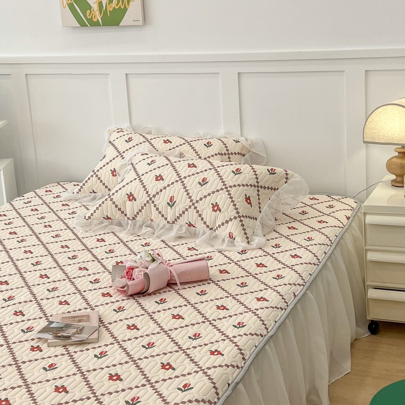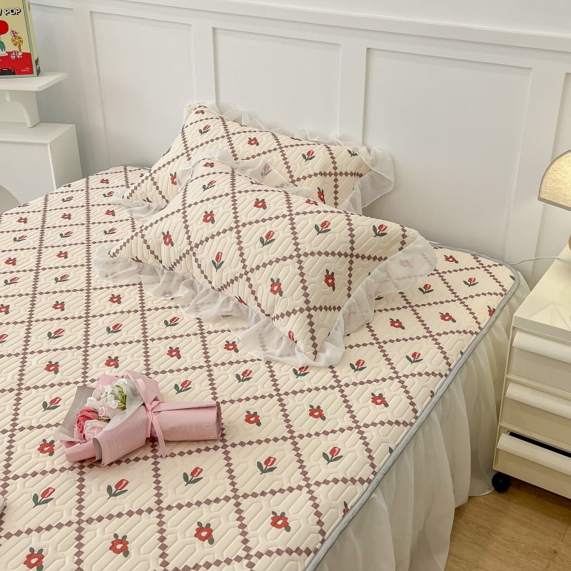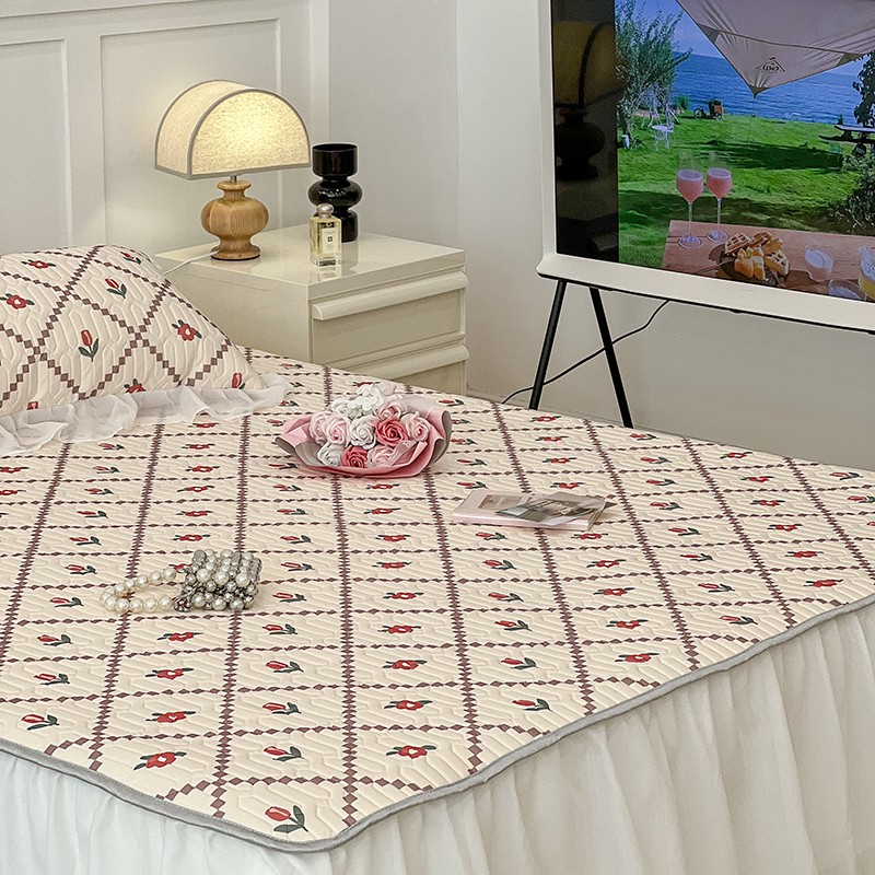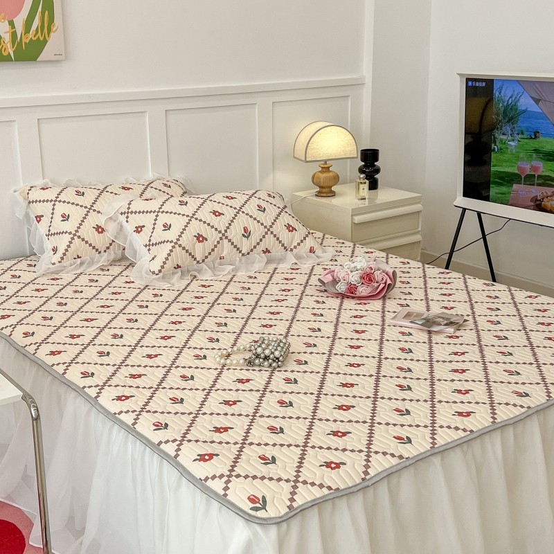 商品名称:昔可 2022新款ins风小清新床裙款乳胶凉席三件套 床裙款-菱形小花红