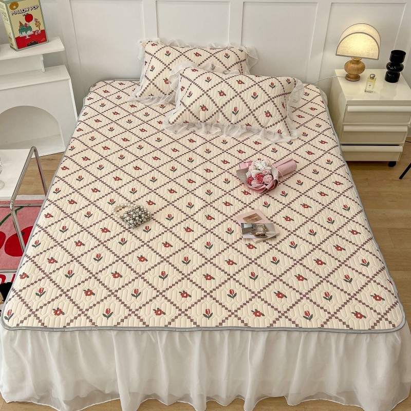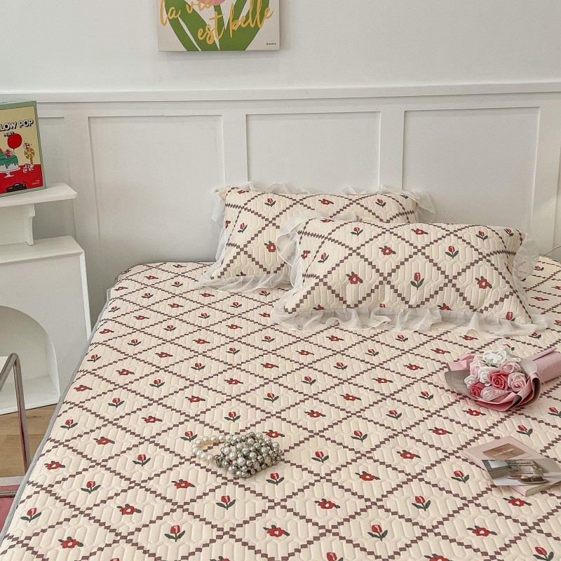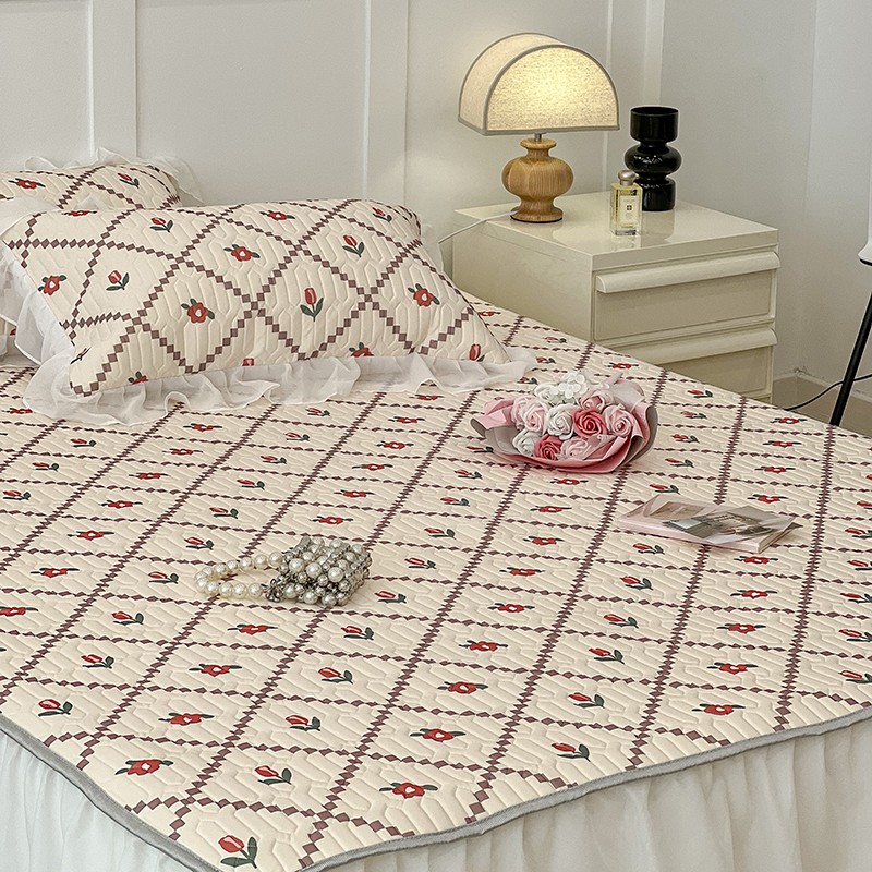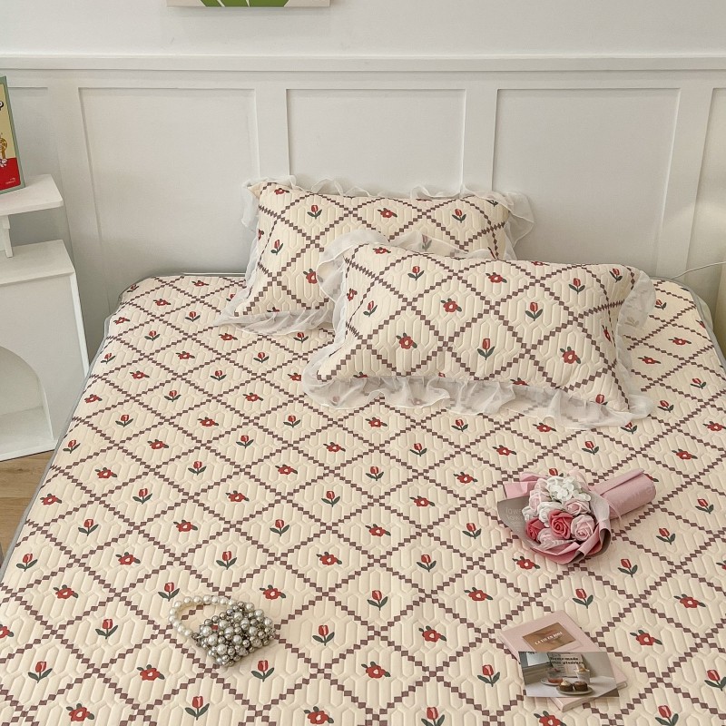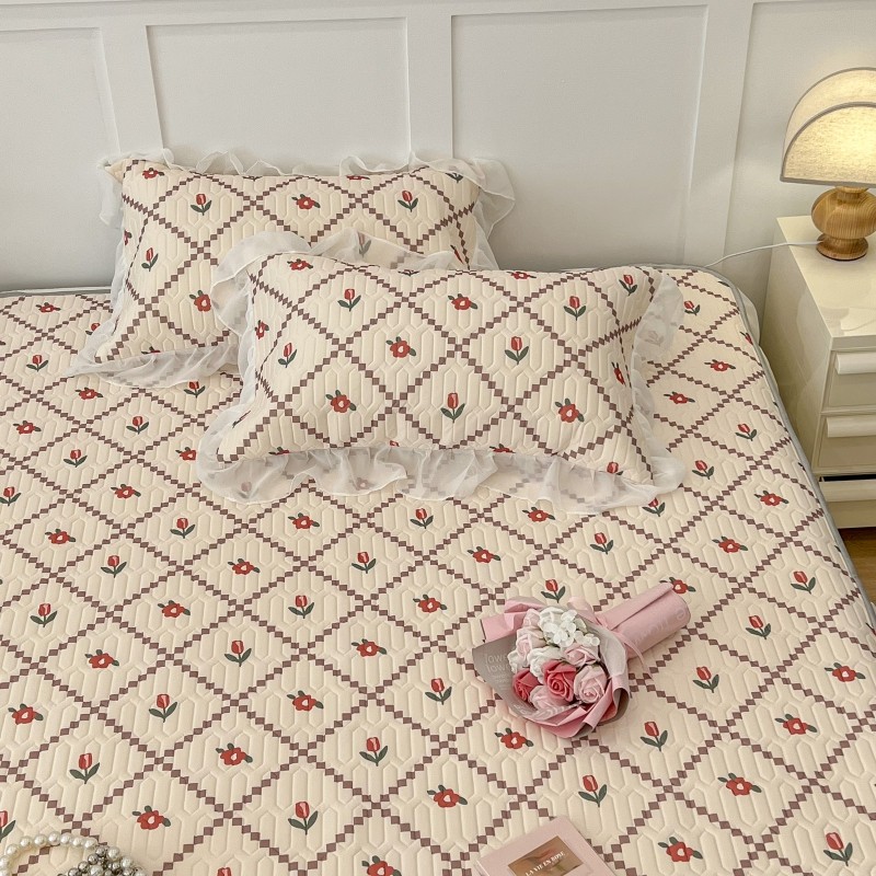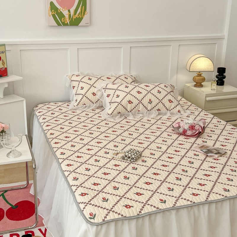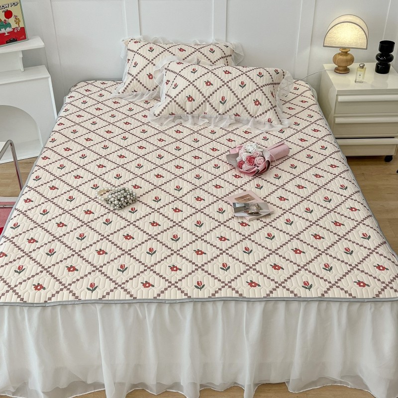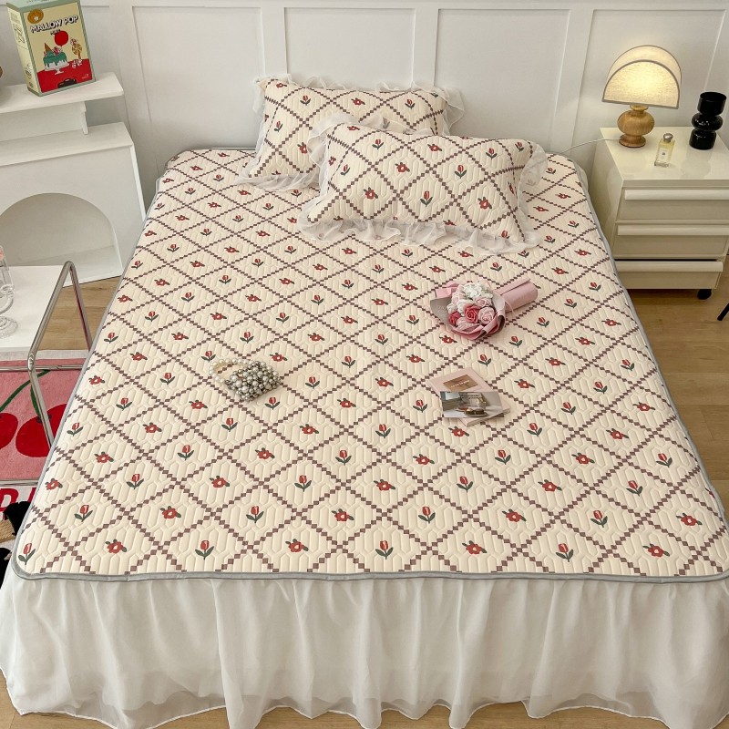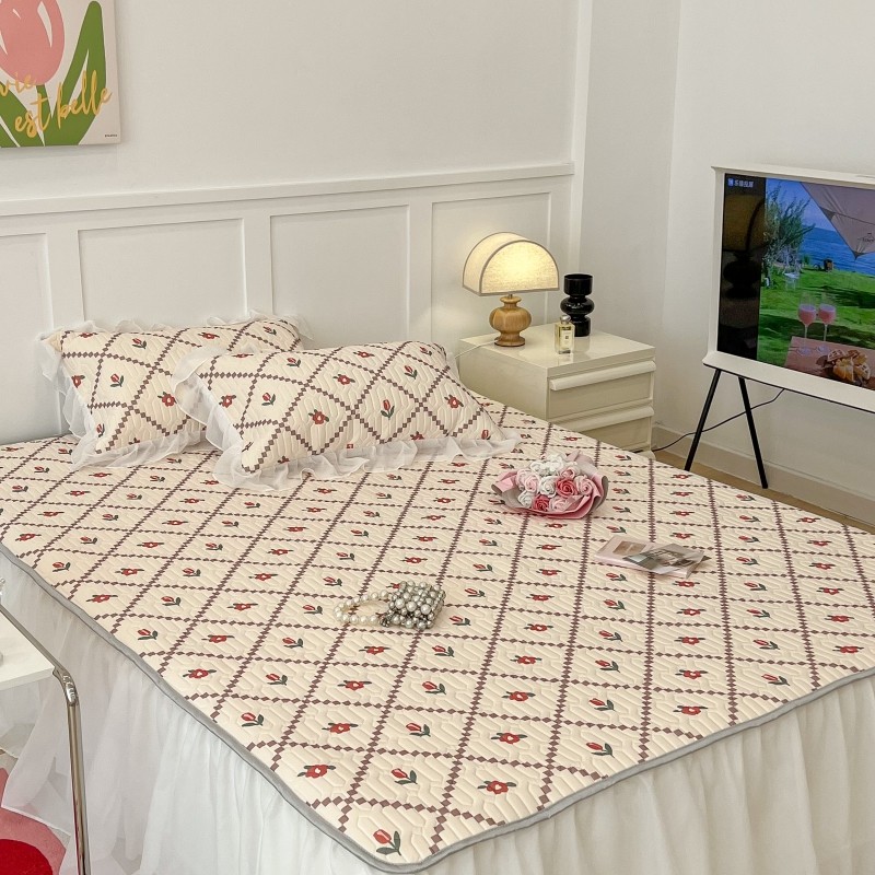 商品名称:昔可 2022新款ins风小清新床裙款乳胶凉席三件套 床裙款-菱形小花红