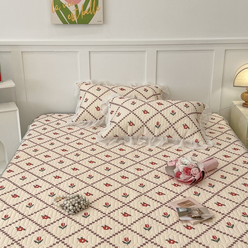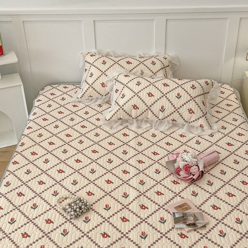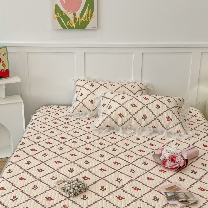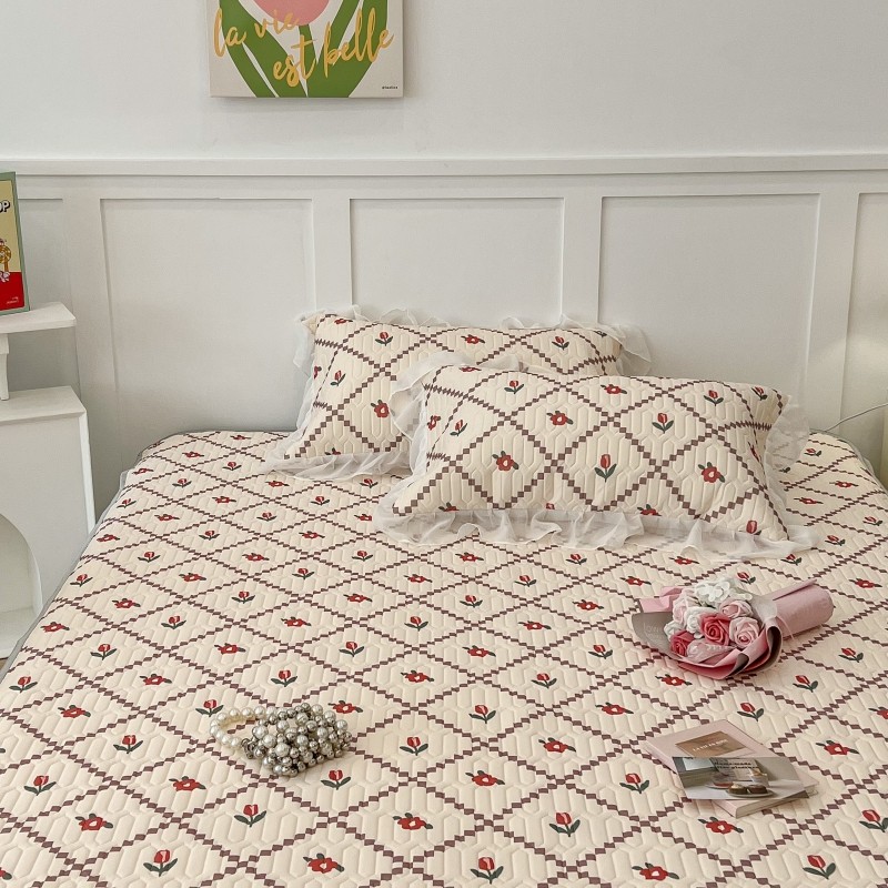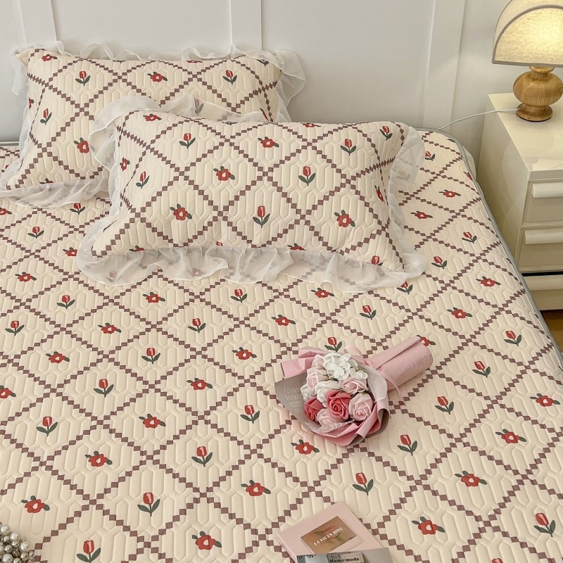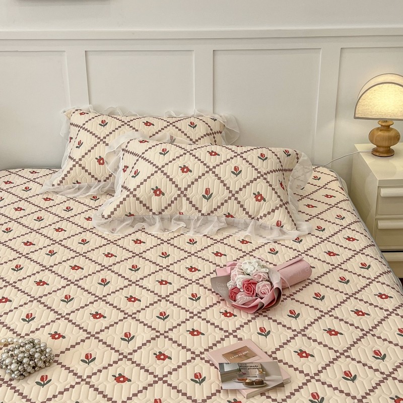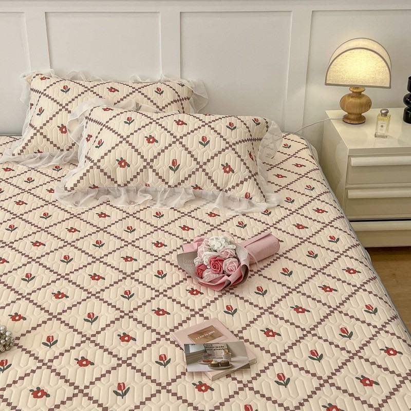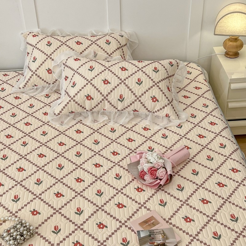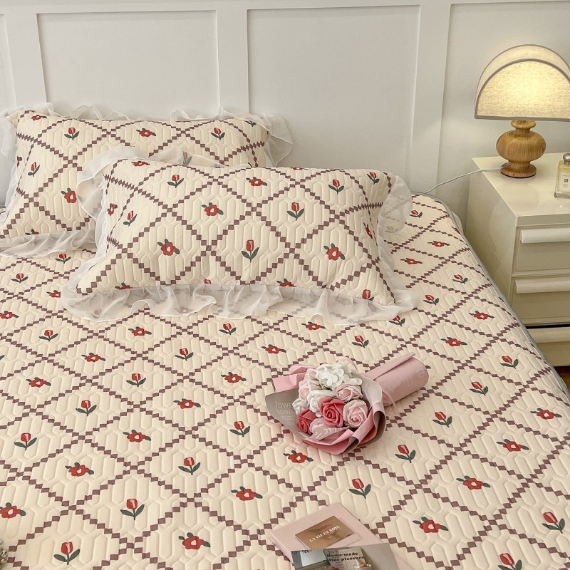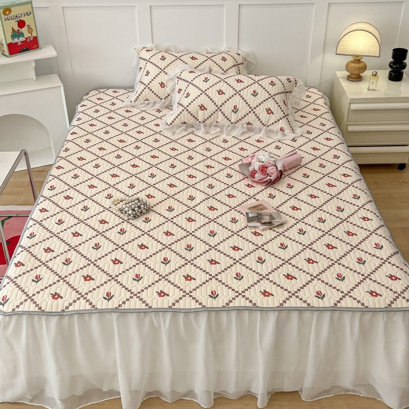 商品名称:昔可 2022新款ins风小清新床裙款乳胶凉席三件套 床裙款-菱形小花红