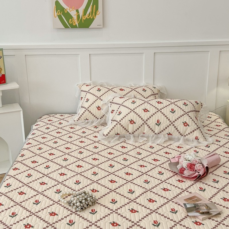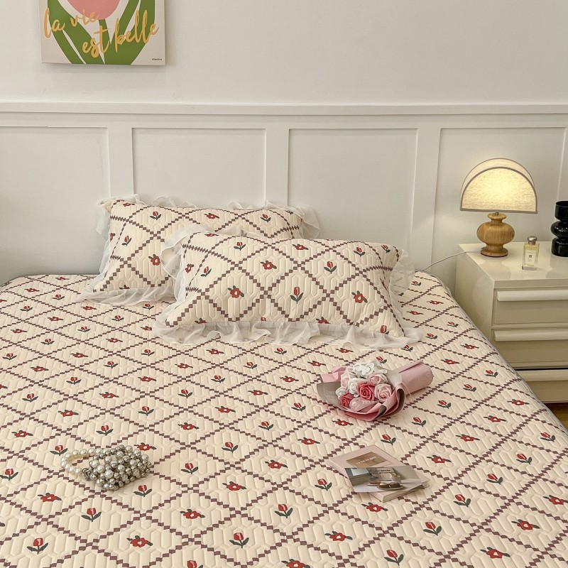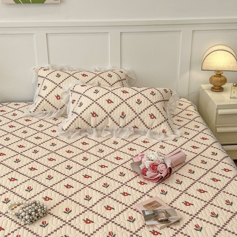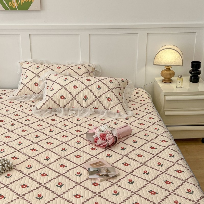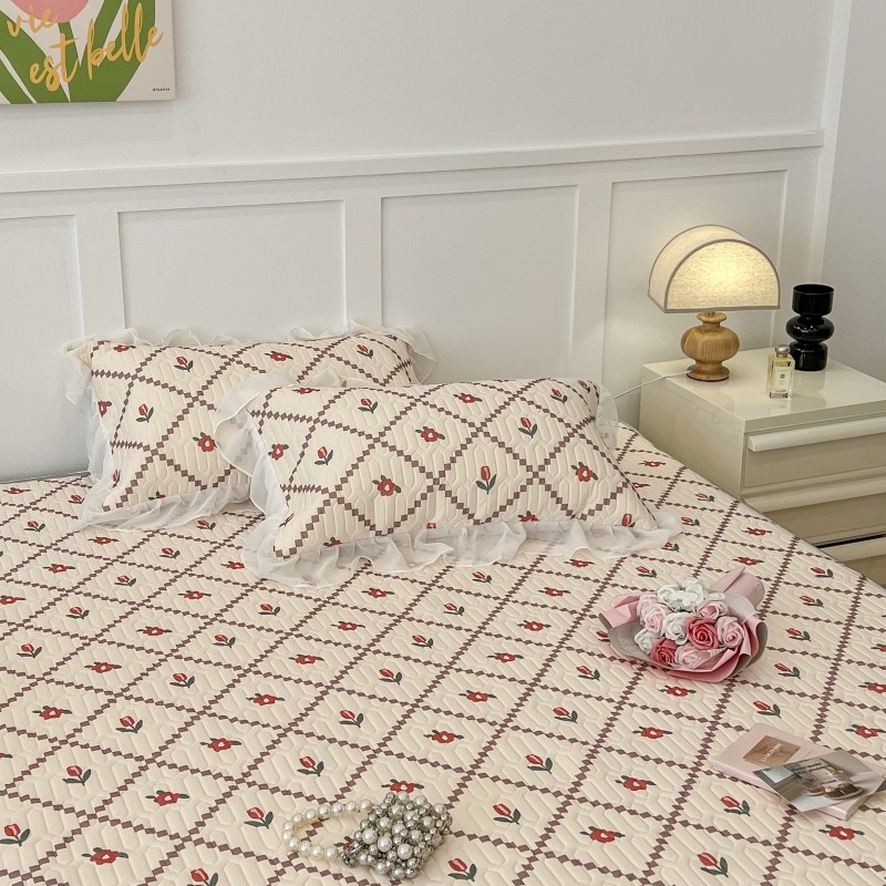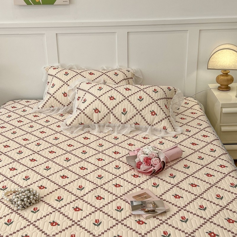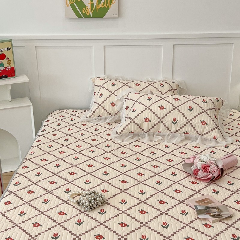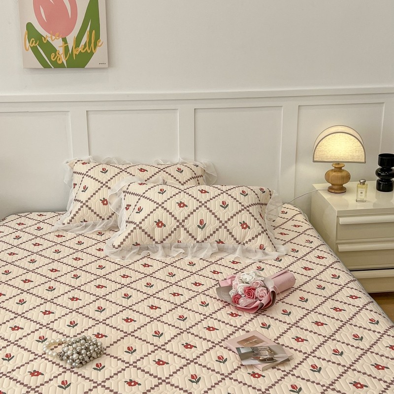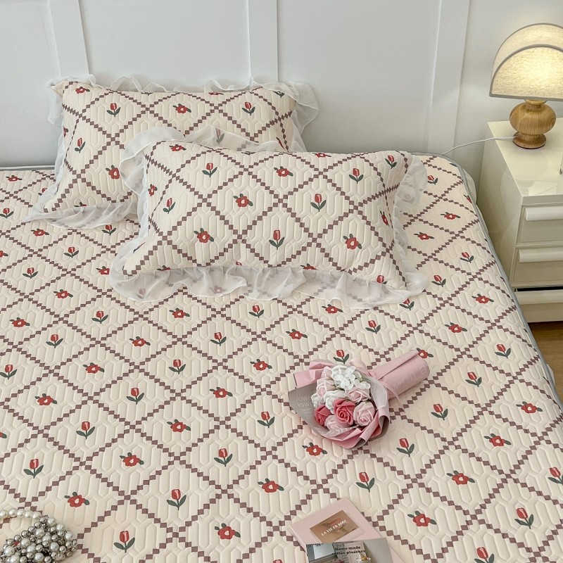 商品名称:昔可 2022新款ins风小清新床裙款乳胶凉席三件套 床裙款-菱形小花红