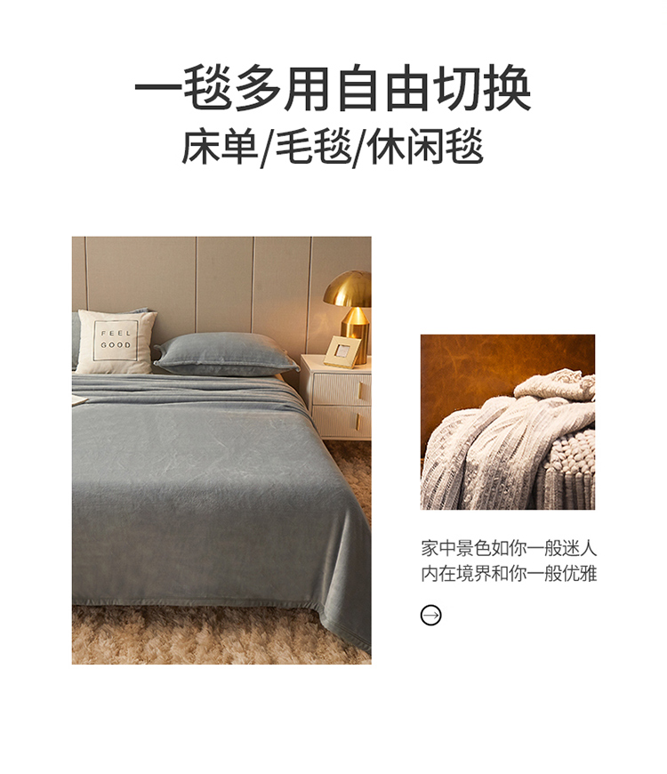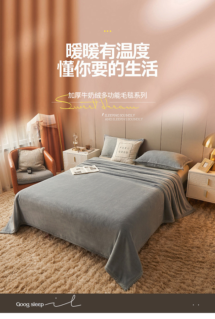 商品名称:雅萱 2022新款牛奶绒多功能毛毯 浅灰