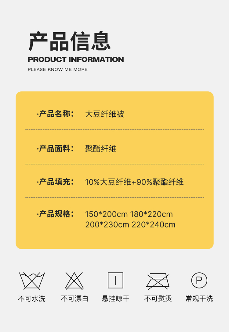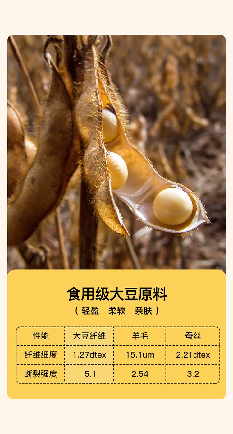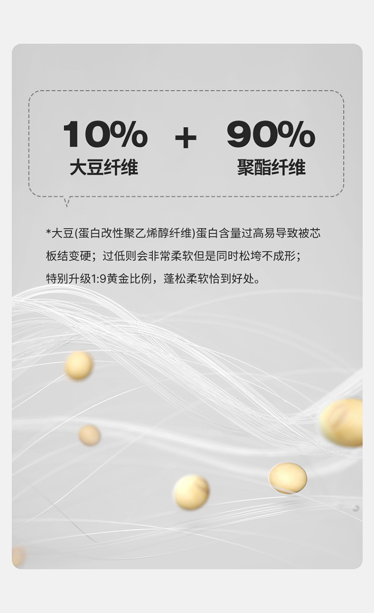 • 填充纤维种类: 大豆蛋白改性聚酯纤维