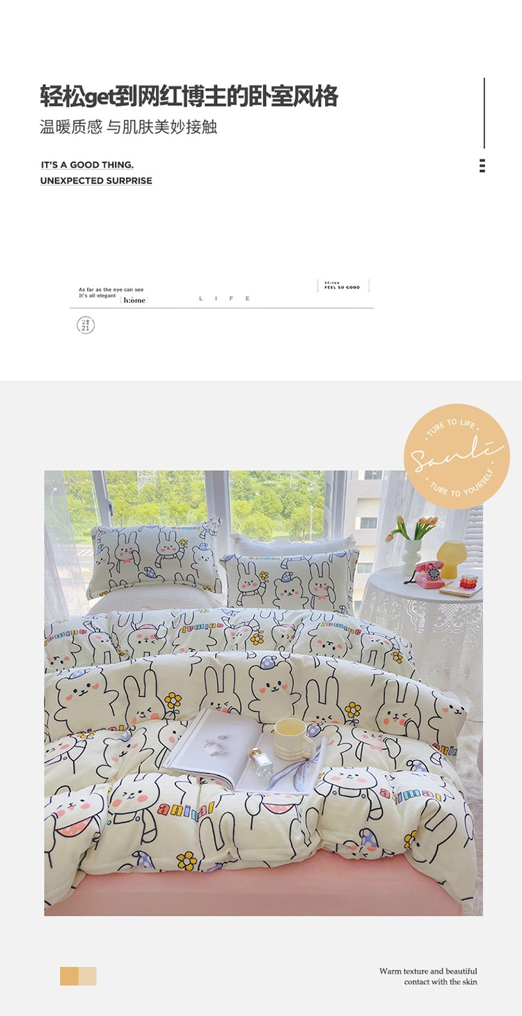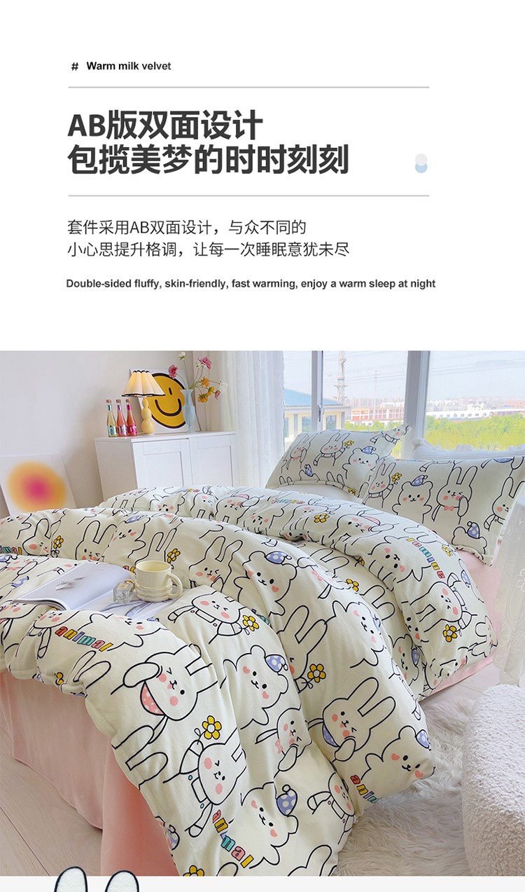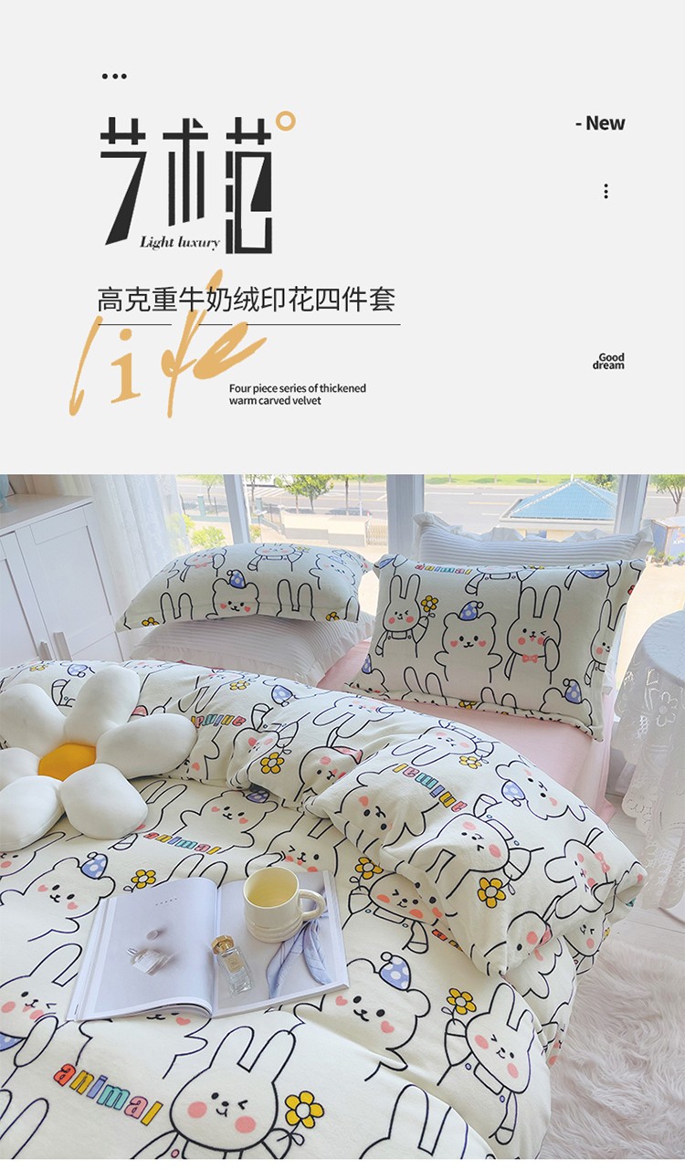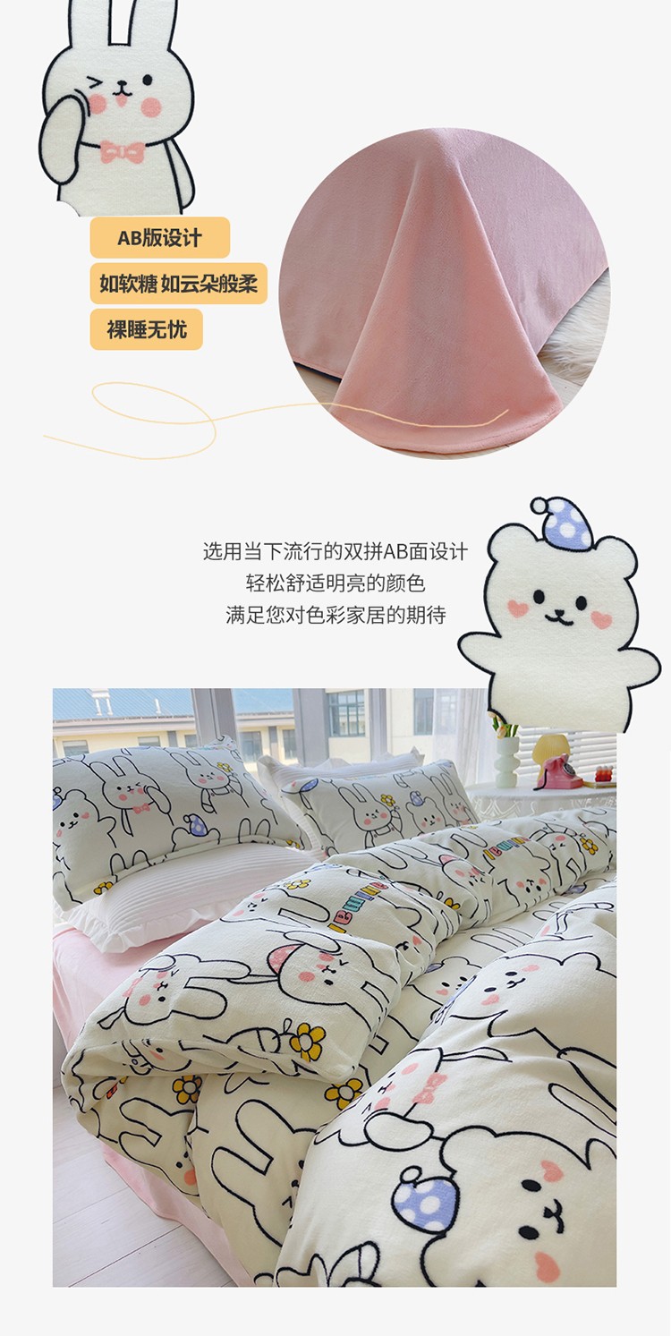 商品名称:珺柔2022新款牛奶绒印花四件套 兔兔乐园