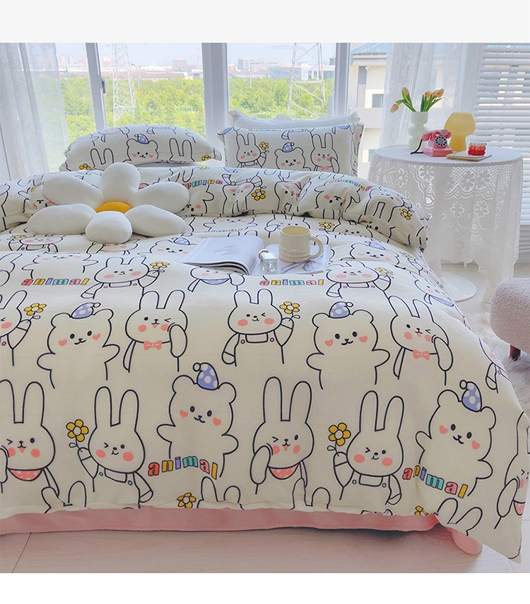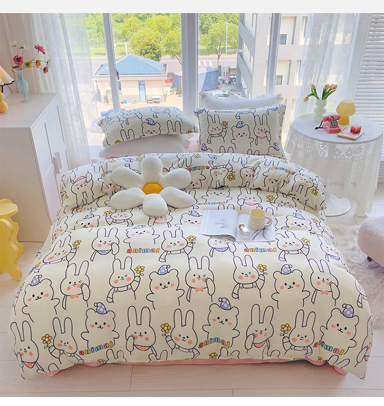 珺柔2022新款牛奶绒印花四件套 兔兔乐园