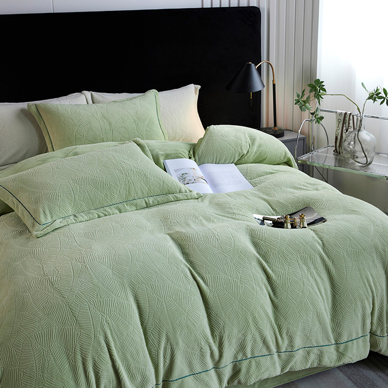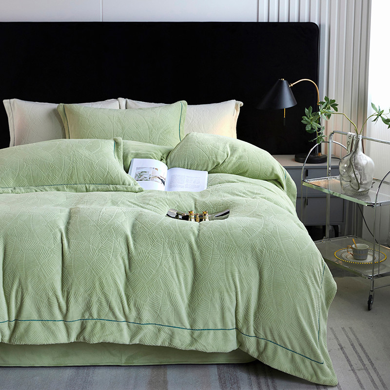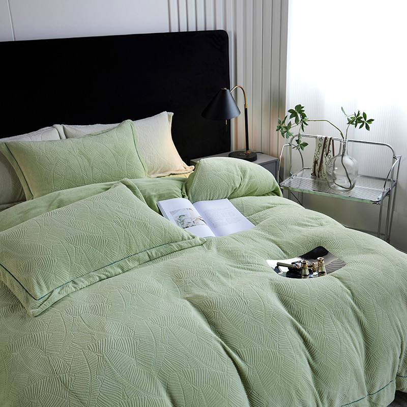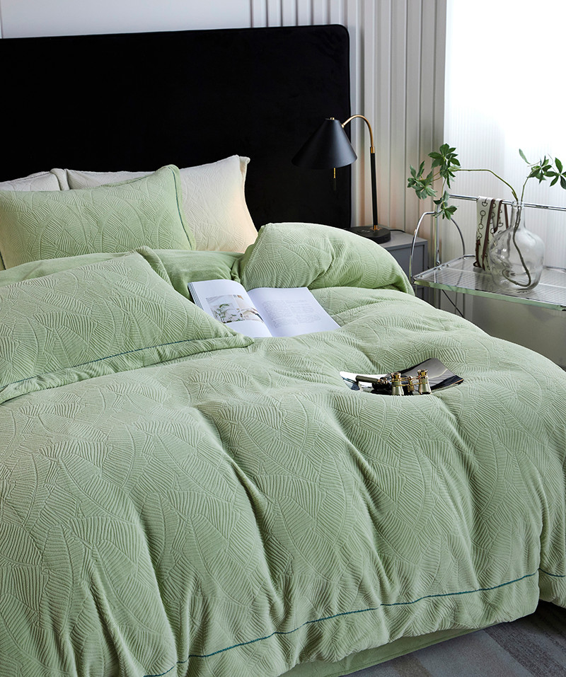 凡客家居 2022新款牛奶绒雕花系列四件套 维娜-莫奈绿