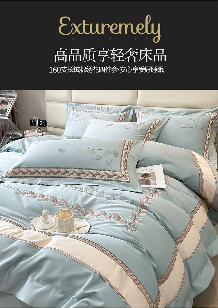 (总)高大尚 2022新款全棉贡缎绣花四件套 维纳丝