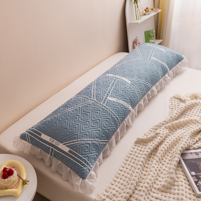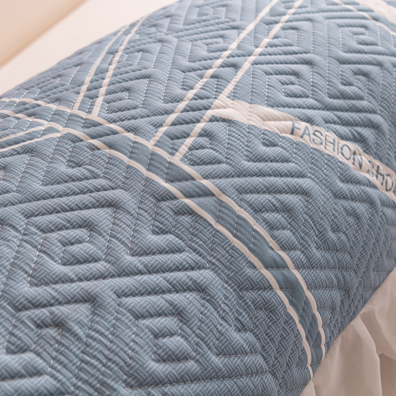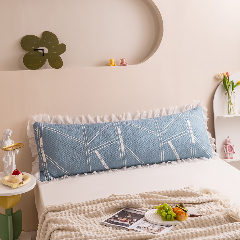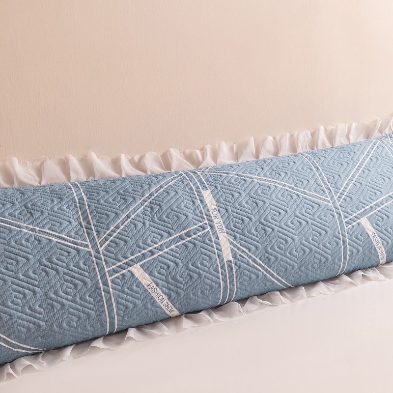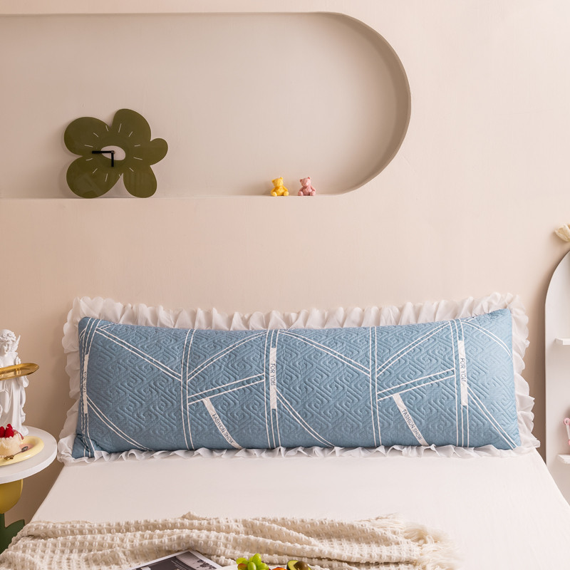 新款磨毛夹棉花边双人长枕套 格韵蓝