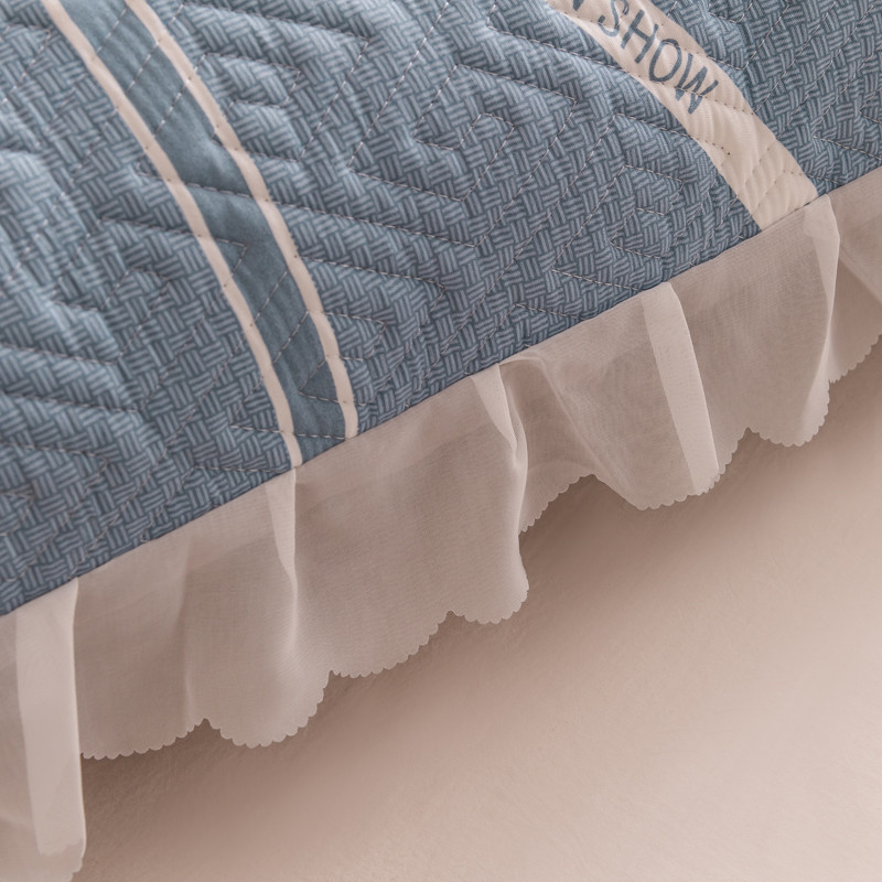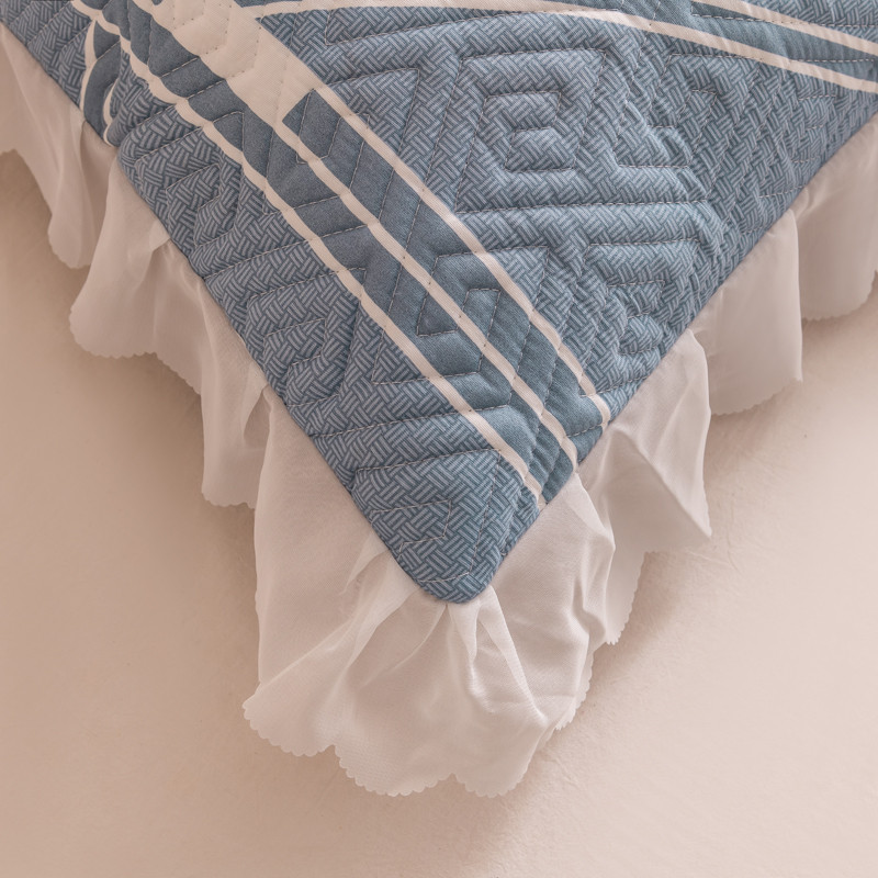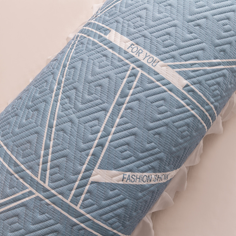 商品名称:新款磨毛夹棉花边双人长枕套 格韵蓝