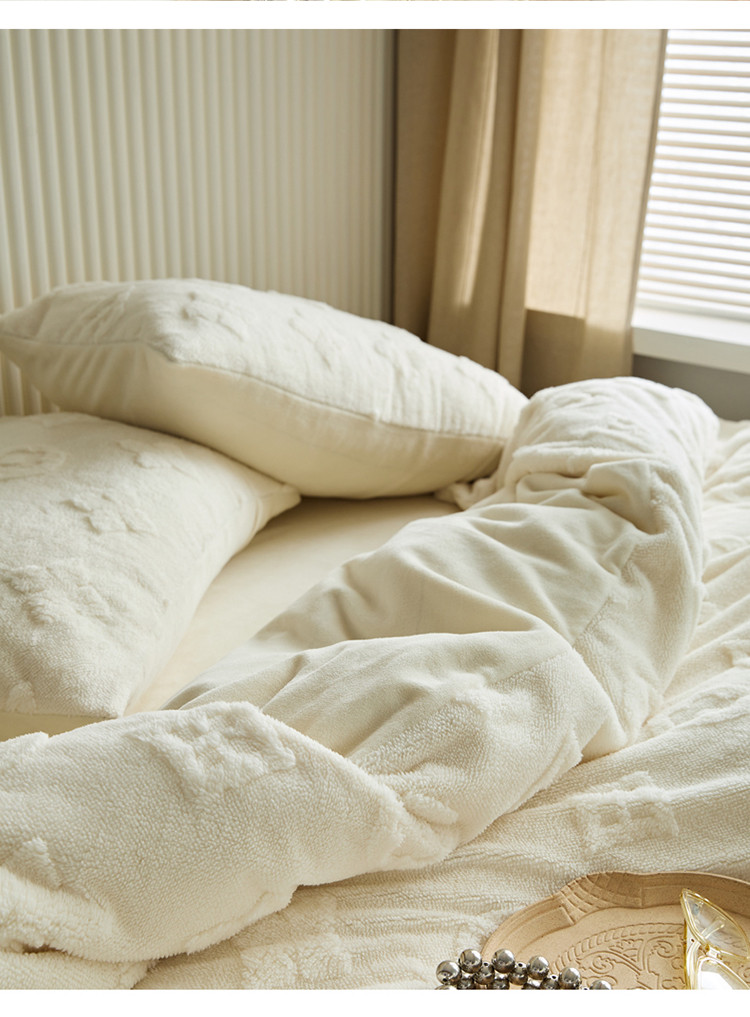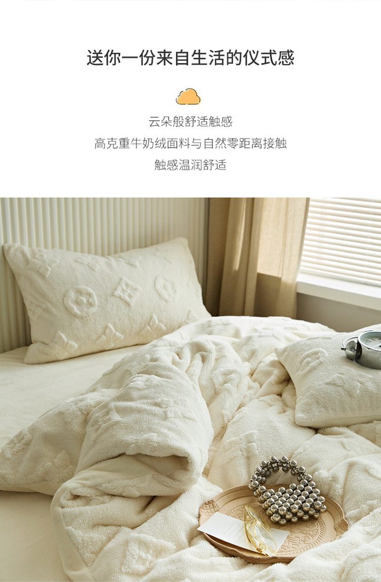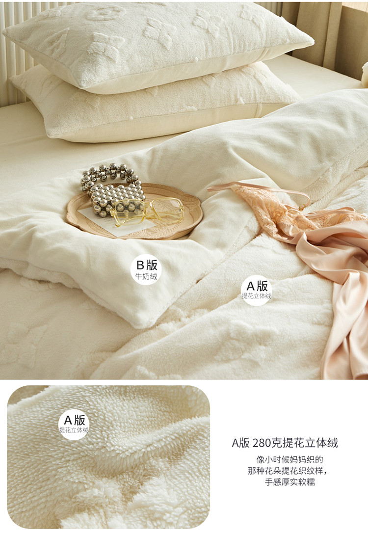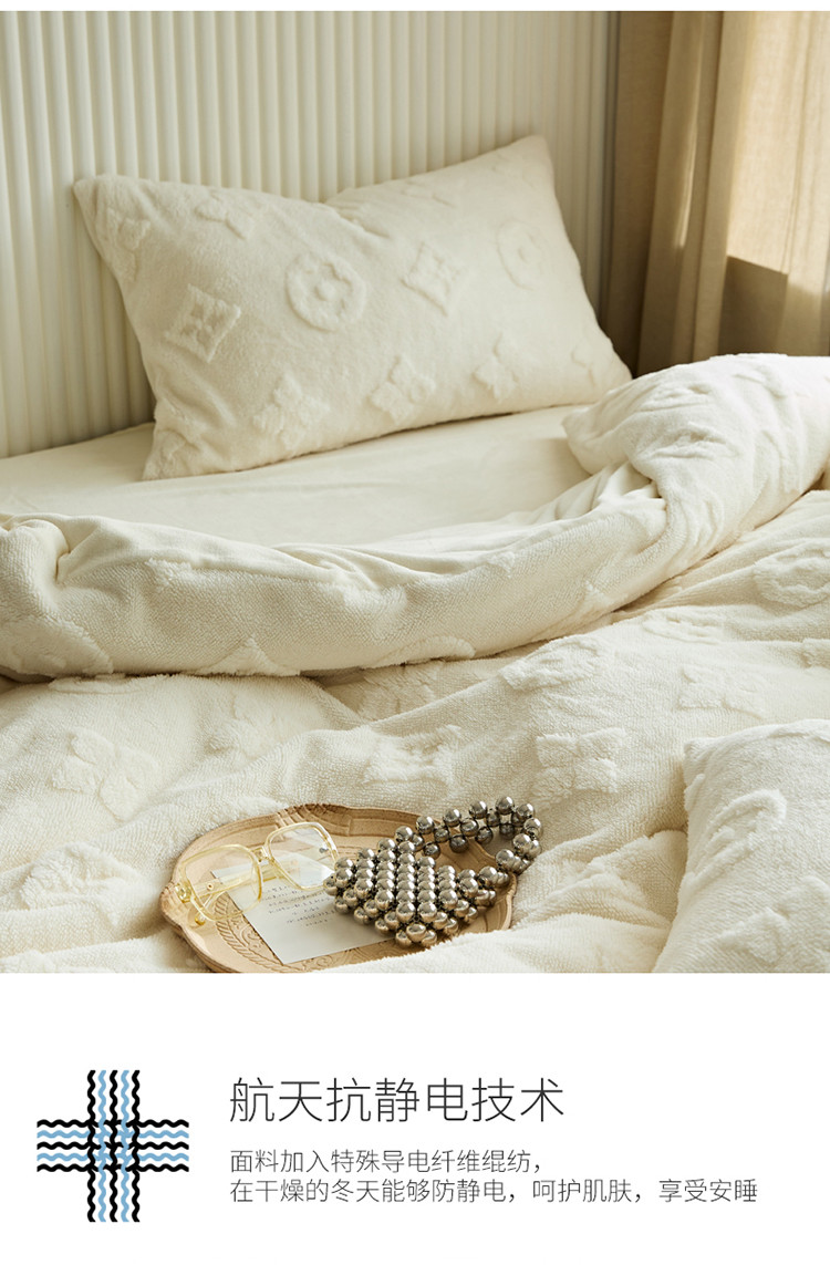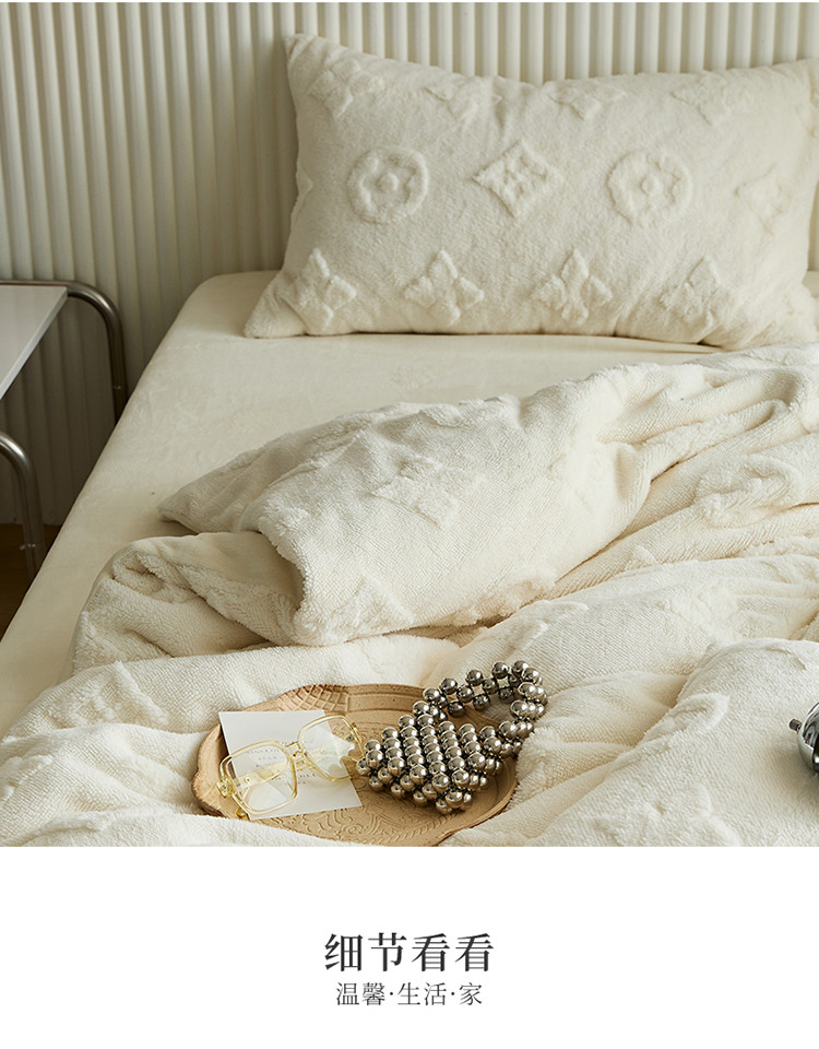 商品名称:花沐 2023新款轻奢提花牛奶绒四件套 提花米白色