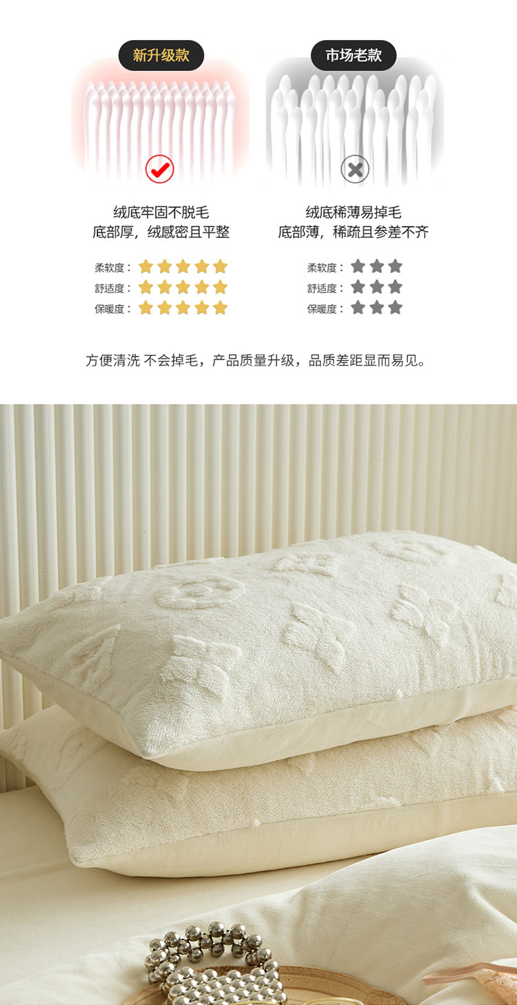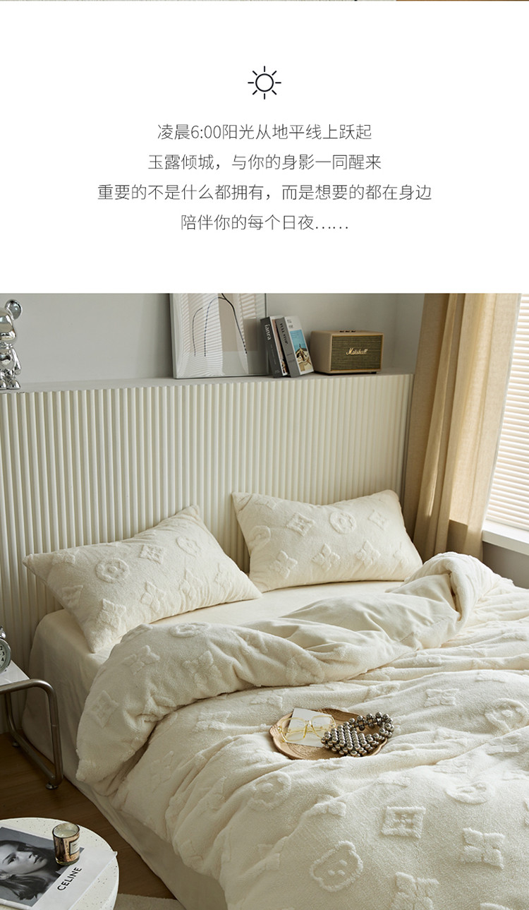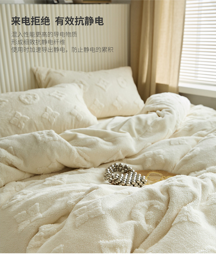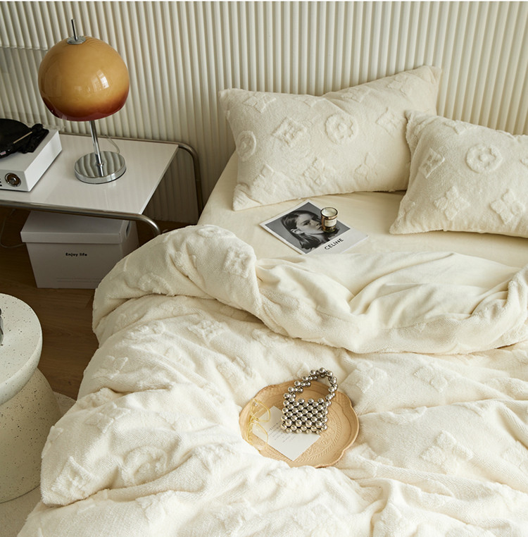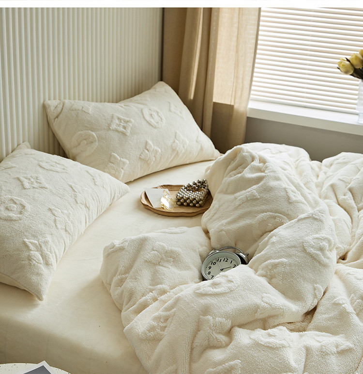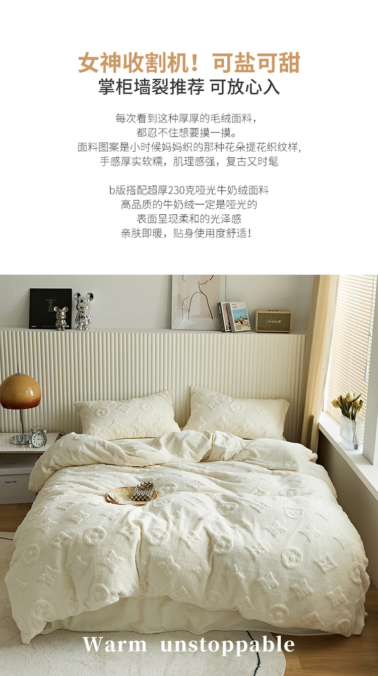 商品名称:花沐 2023新款轻奢提花牛奶绒四件套 提花米白色