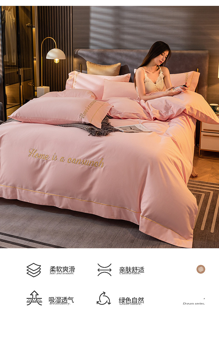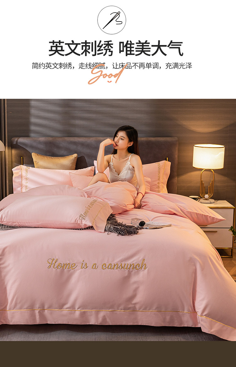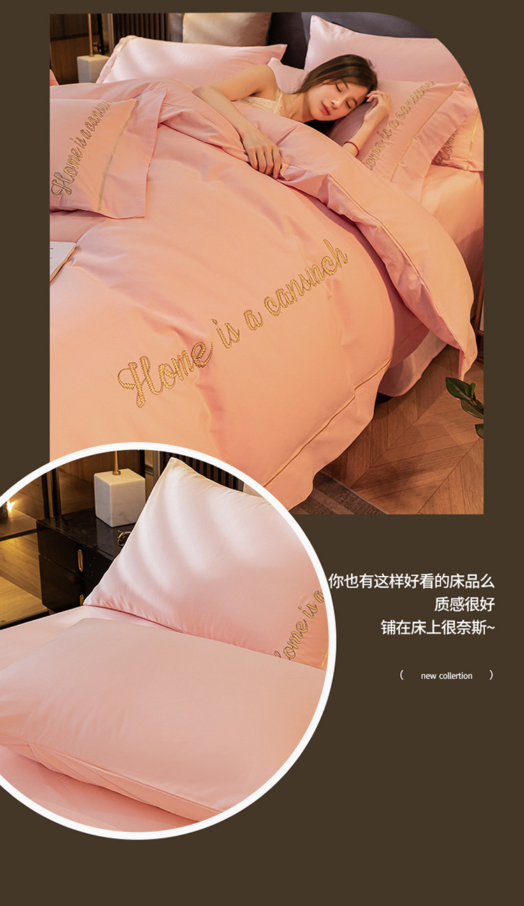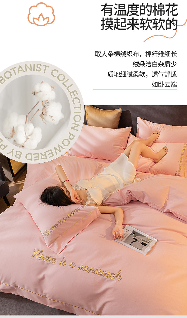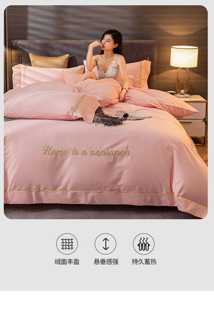 商品名称:蓝米卡夫 2024新款全棉加厚磨毛刺绣套件系列 时代粉