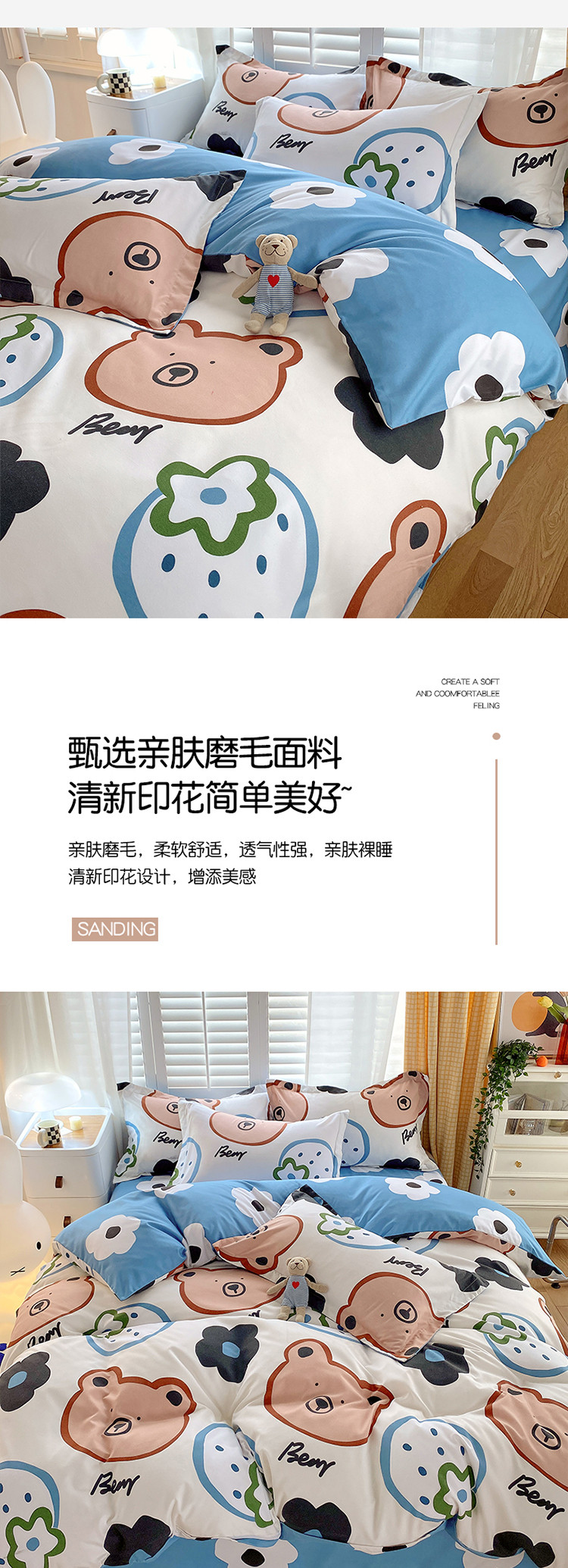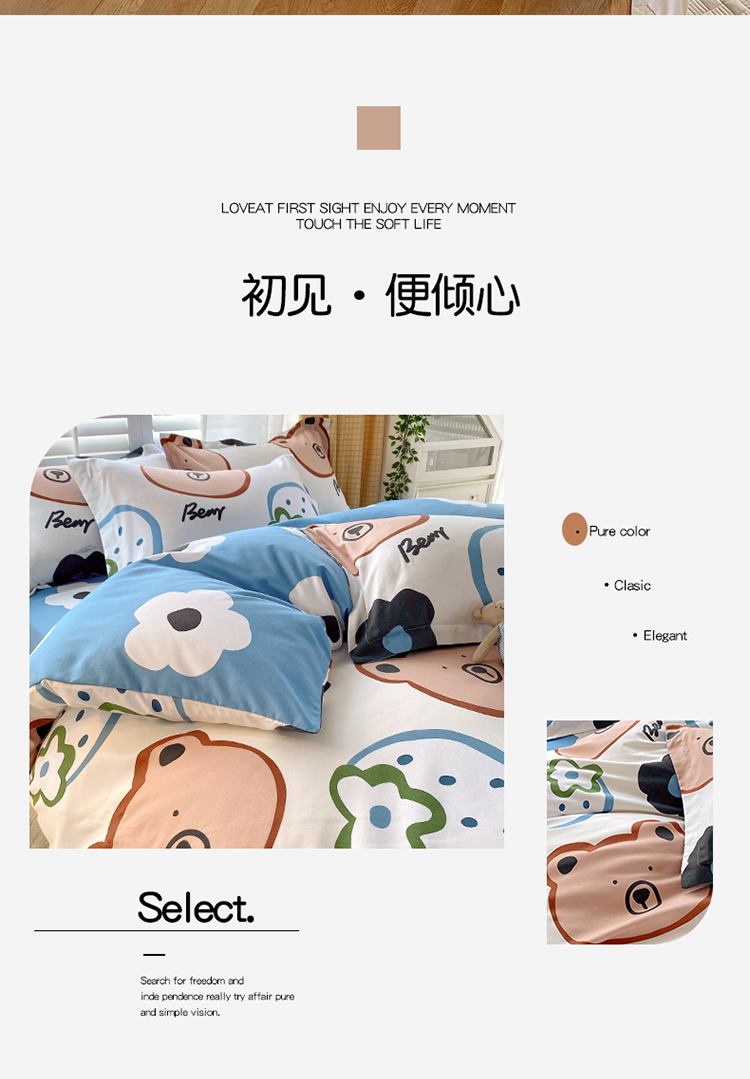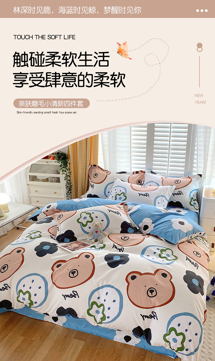 当前位置: 91家纺网 > 商品网购 > 床品套件 > 四件套 > 化纤普通四件套 > 艾橙 秋冬新款140g植物羊绒磨毛四件套系列 呆萌熊