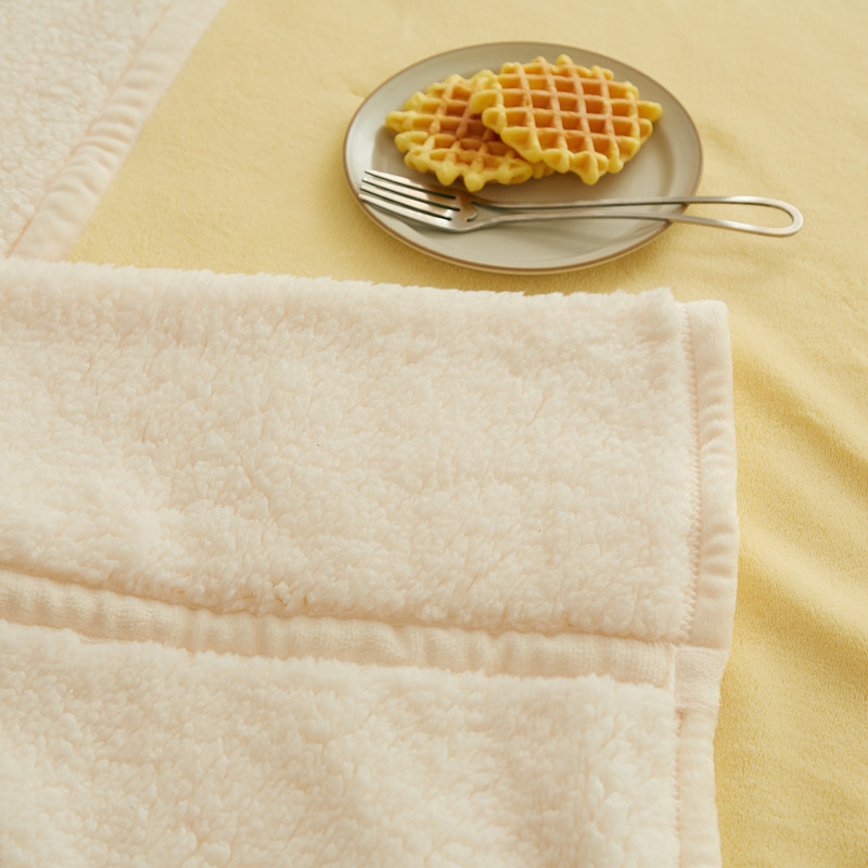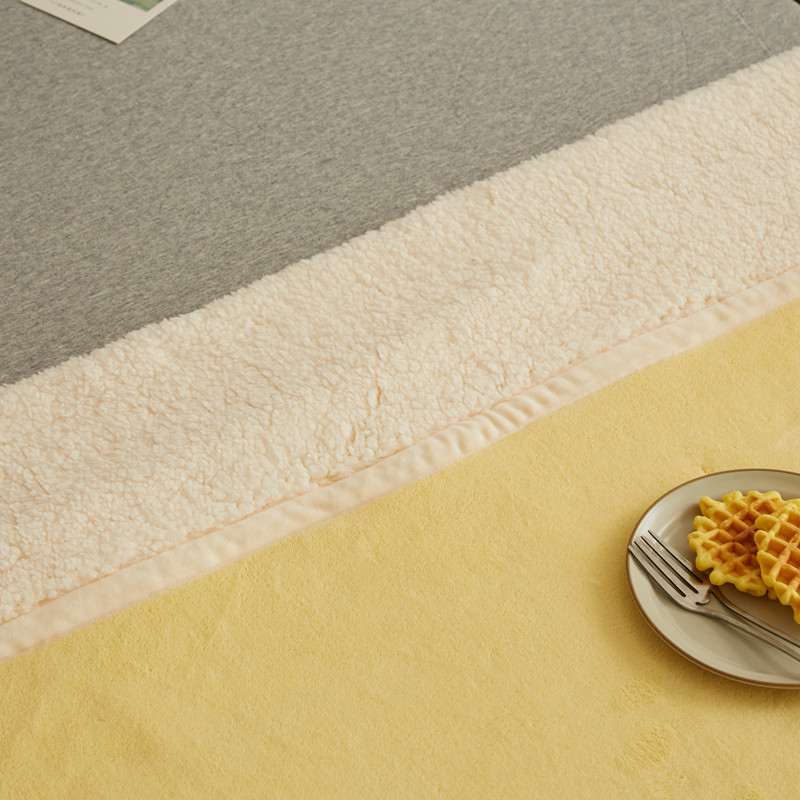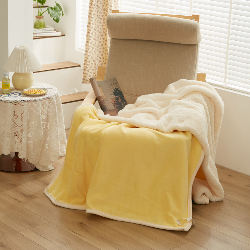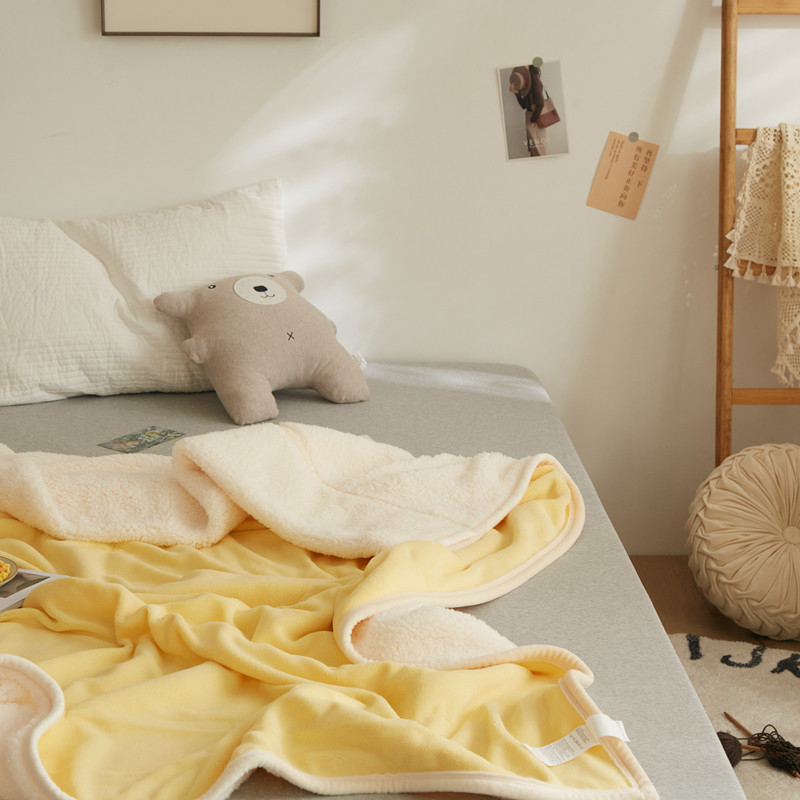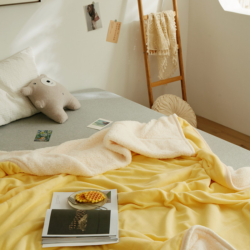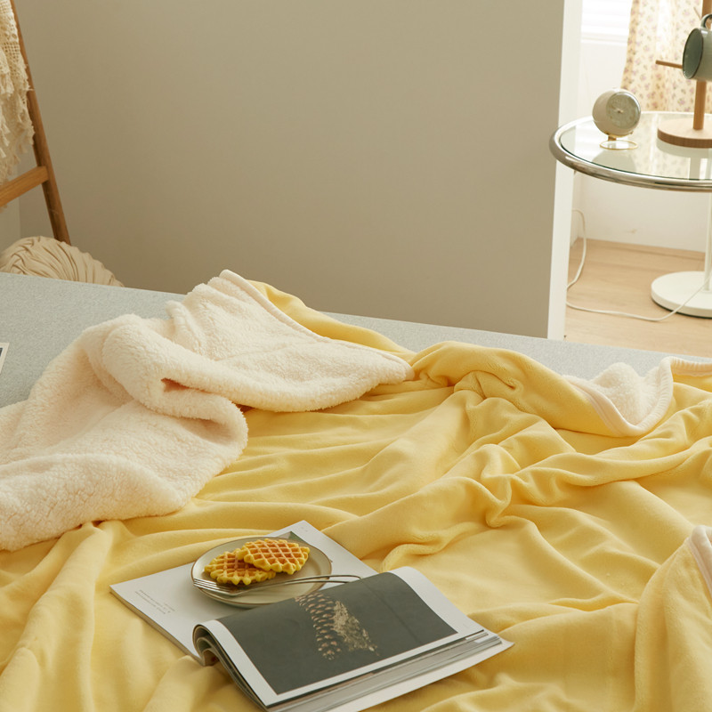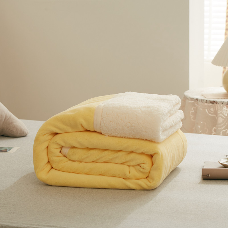 安莱生活 秋冬新品高克重新品牛奶绒拼羊羔绒毛毯 图一 麦芽黄