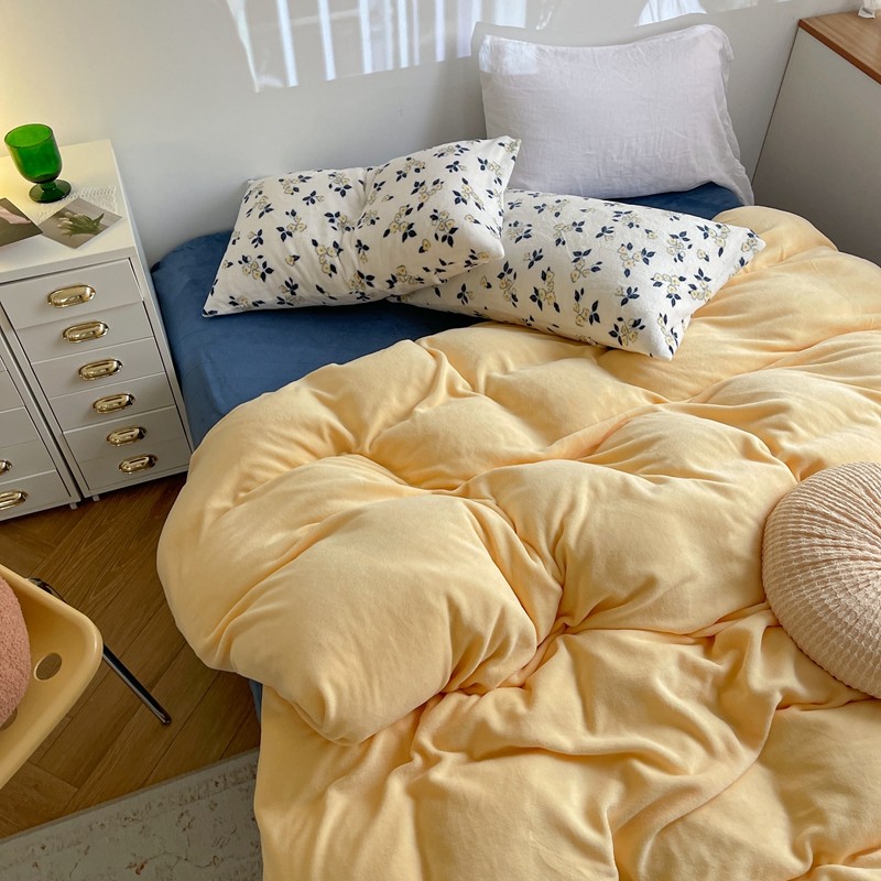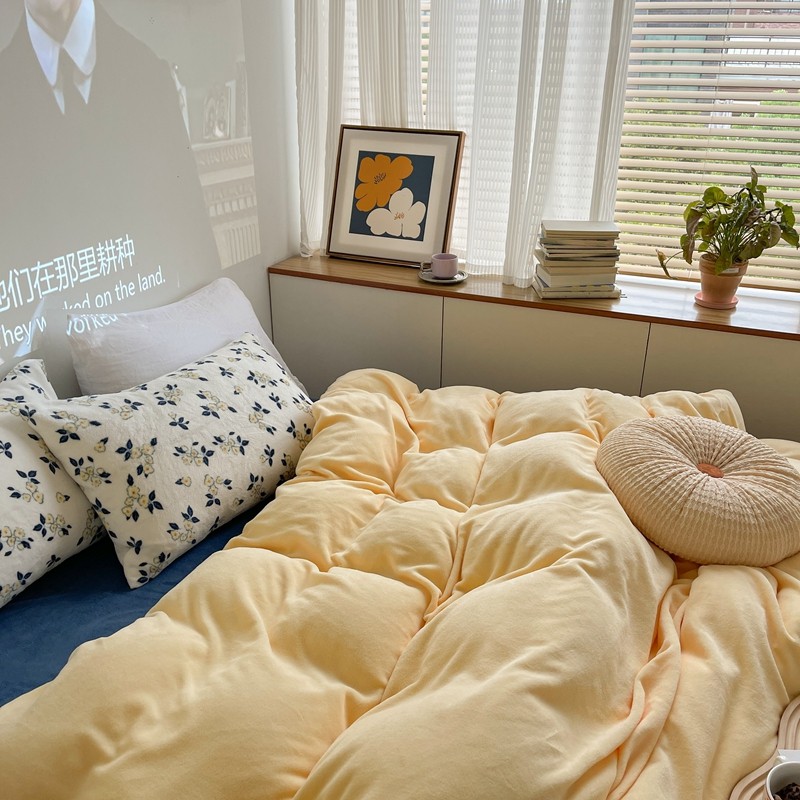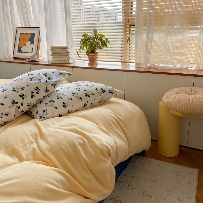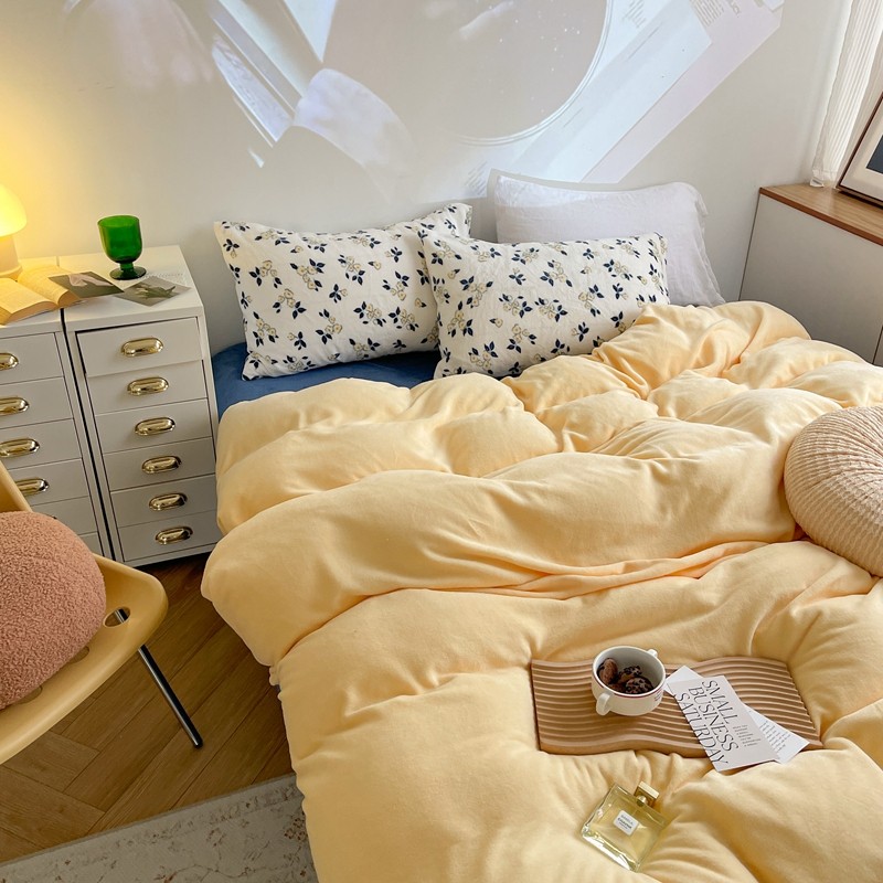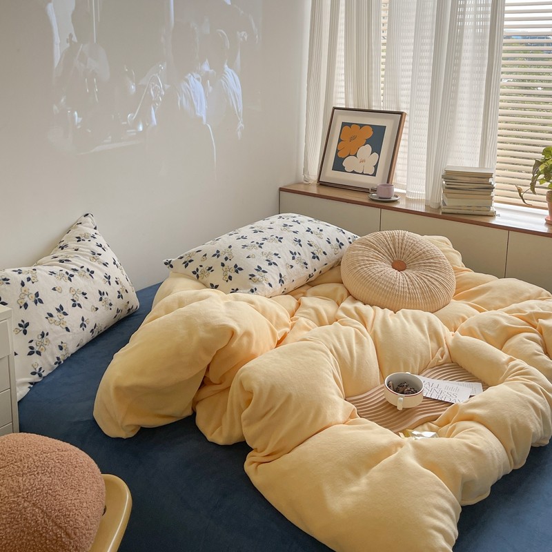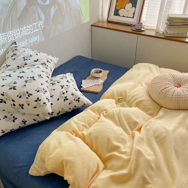 柚子2022新款ins混搭风牛奶绒小碎花套件 蜜柑